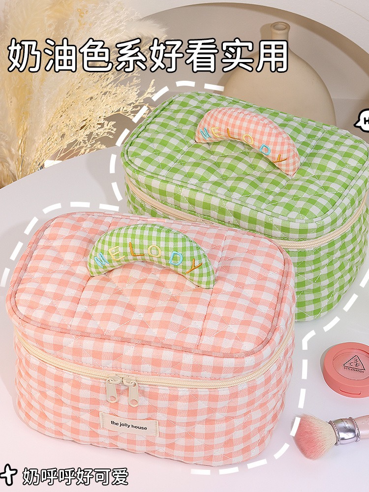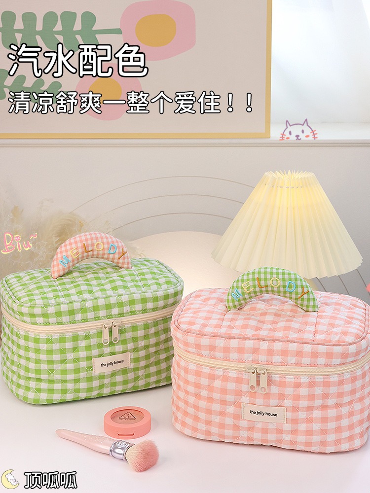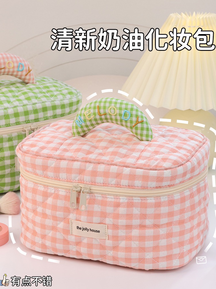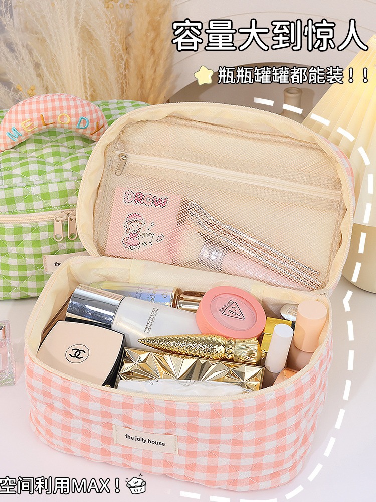 格子化妆包大容量高颜值韩版ins可爱便携式化妆品旅行洗漱收纳包