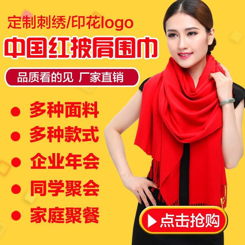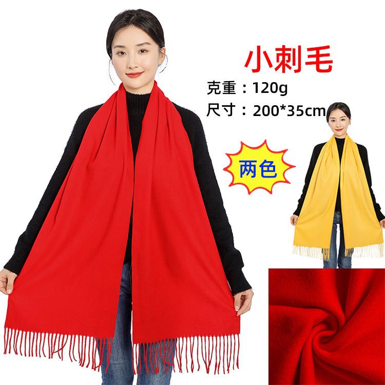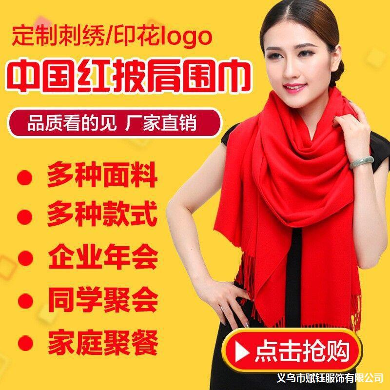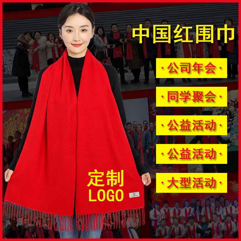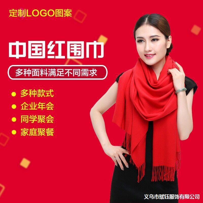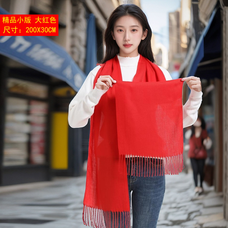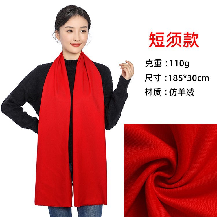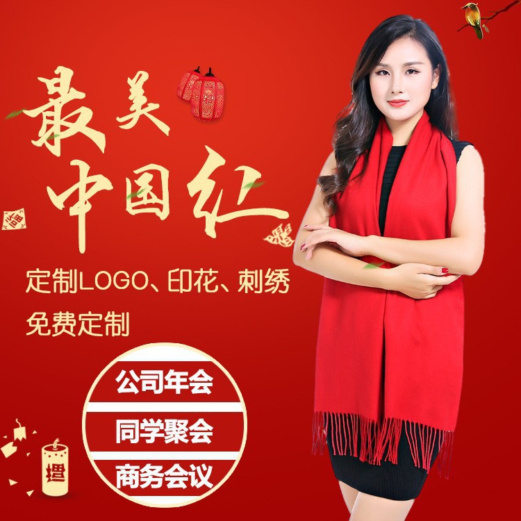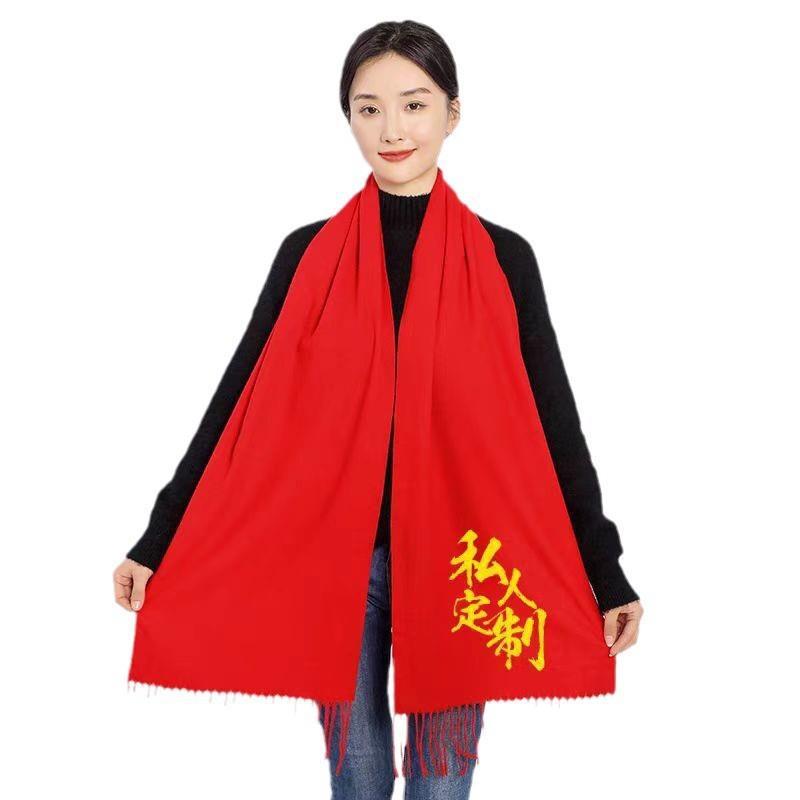 仿羊绒纯色围巾开业庆典聚会活动年会礼品中国红围巾logo