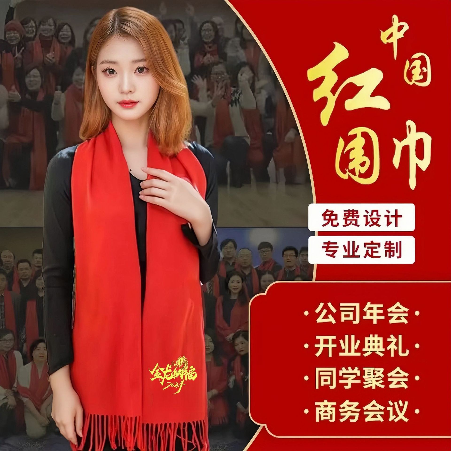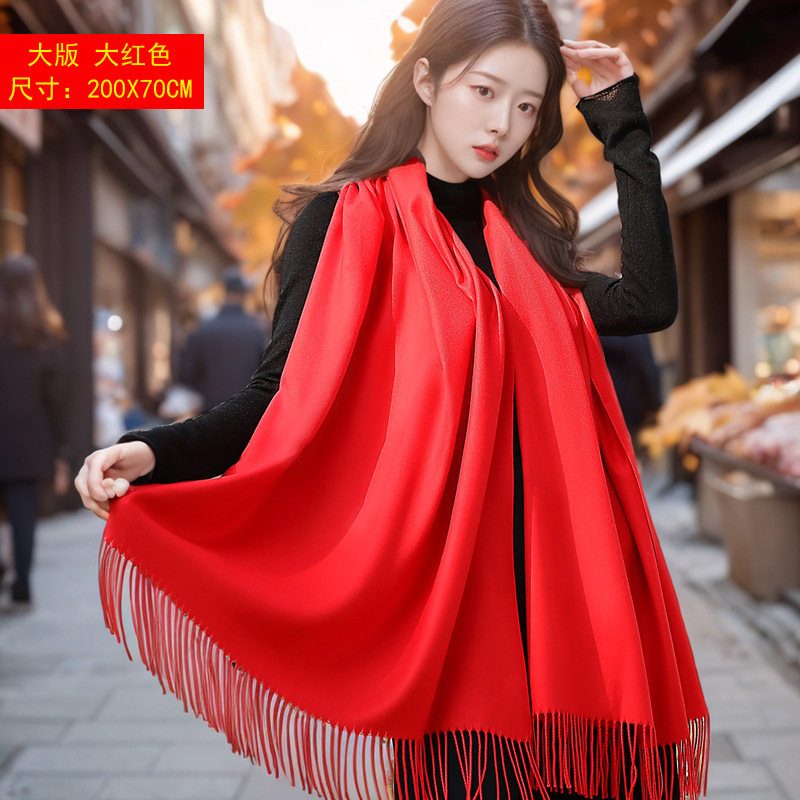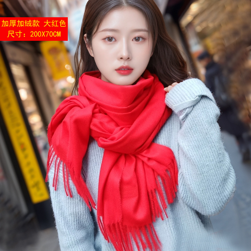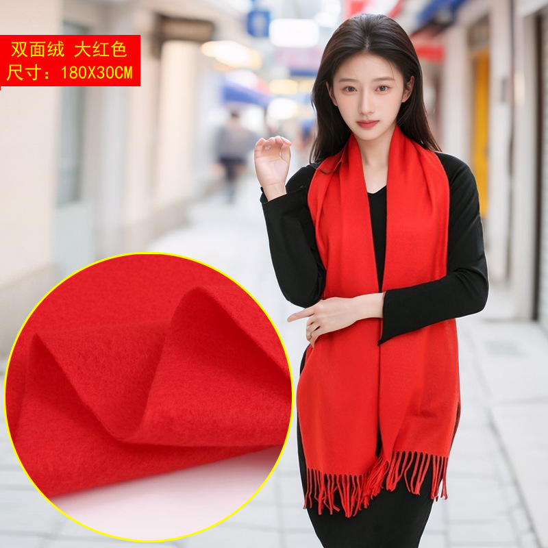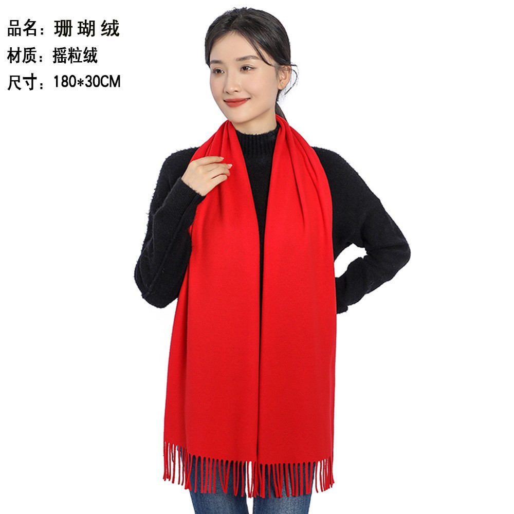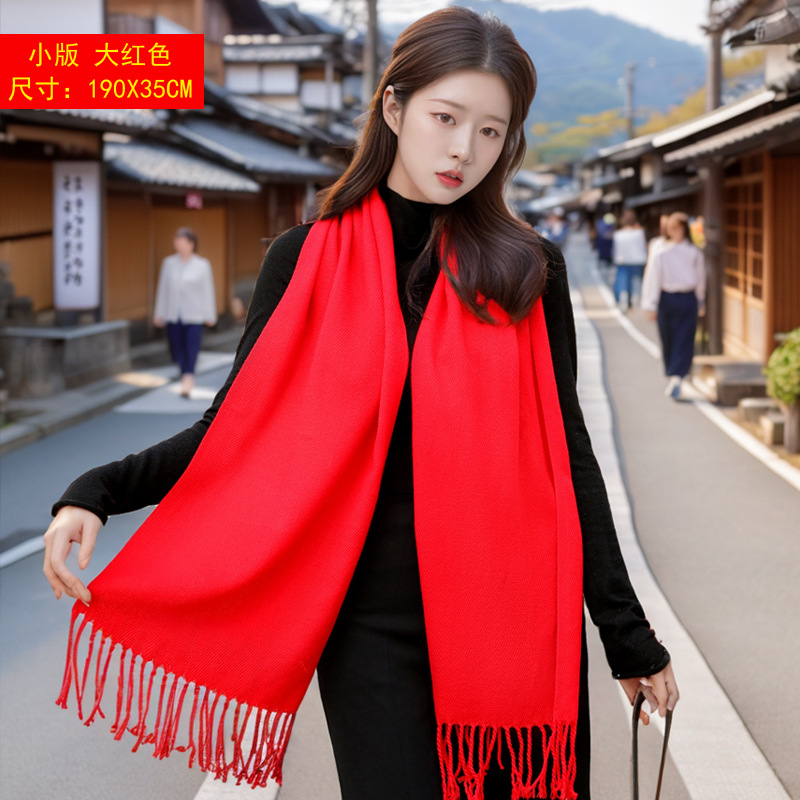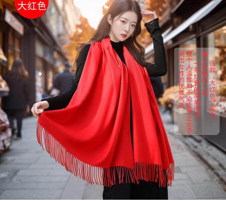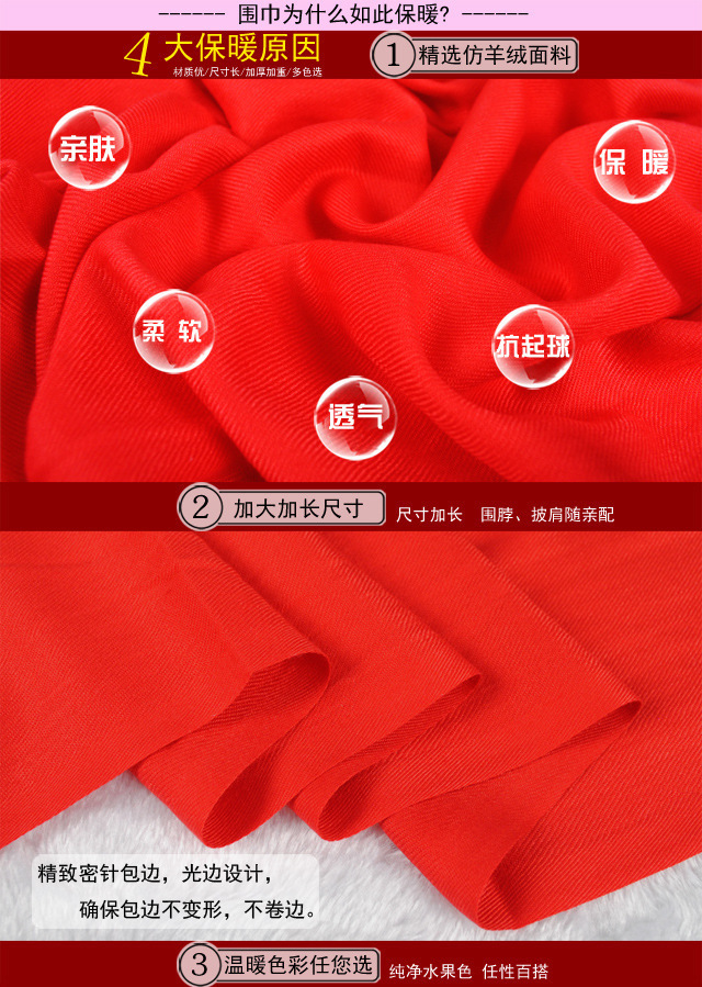 仿羊绒纯色围巾开业庆典聚会活动年会礼品中国红围巾logo