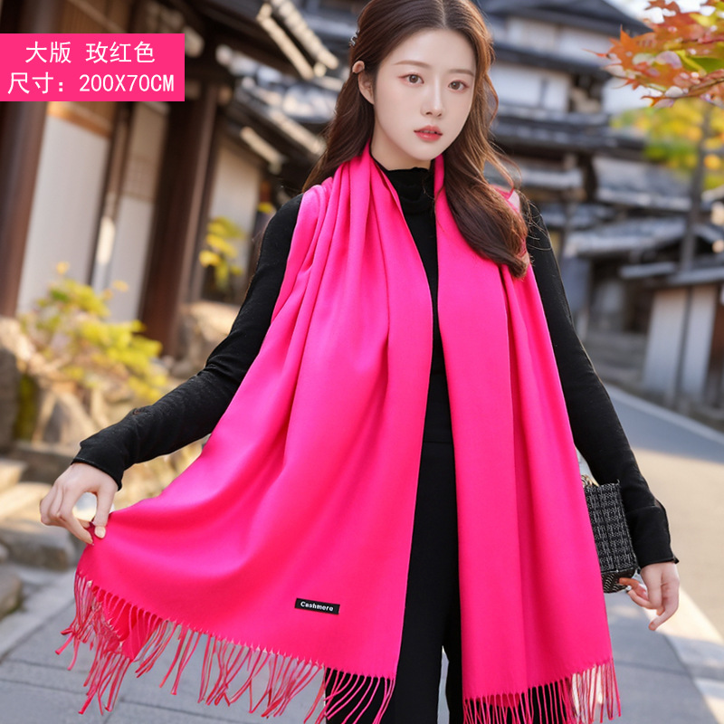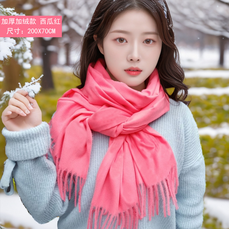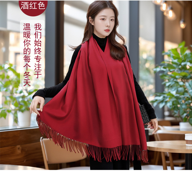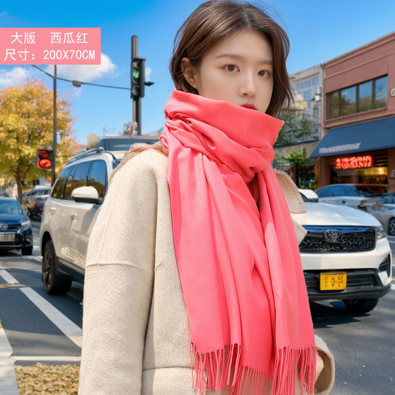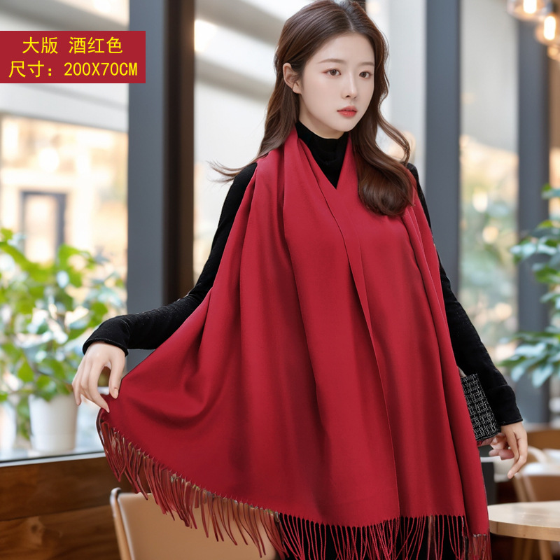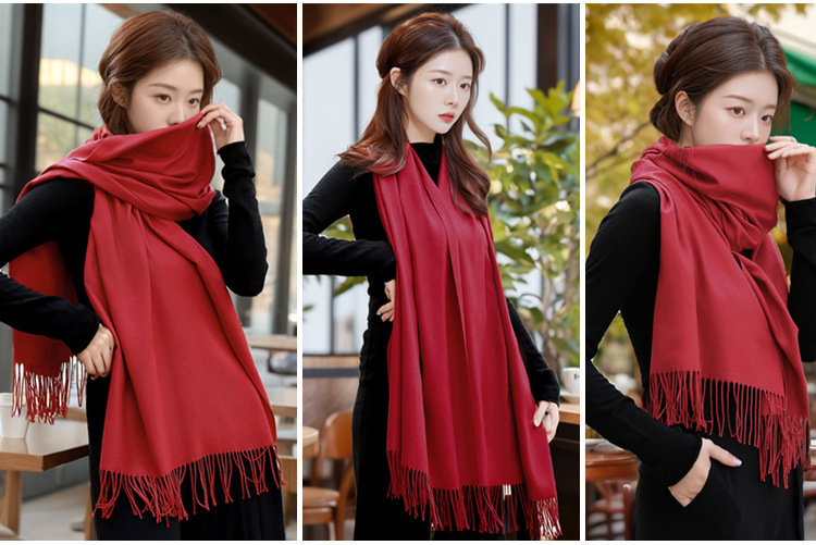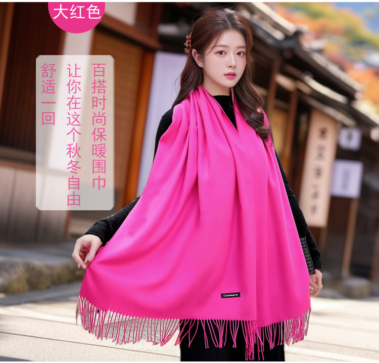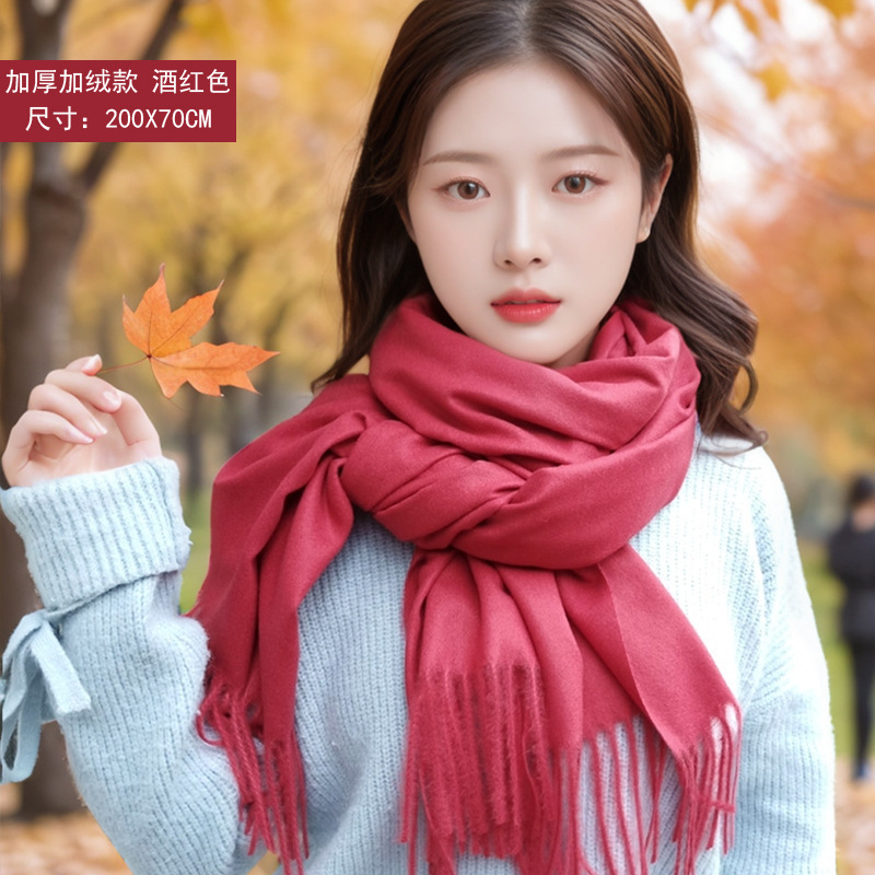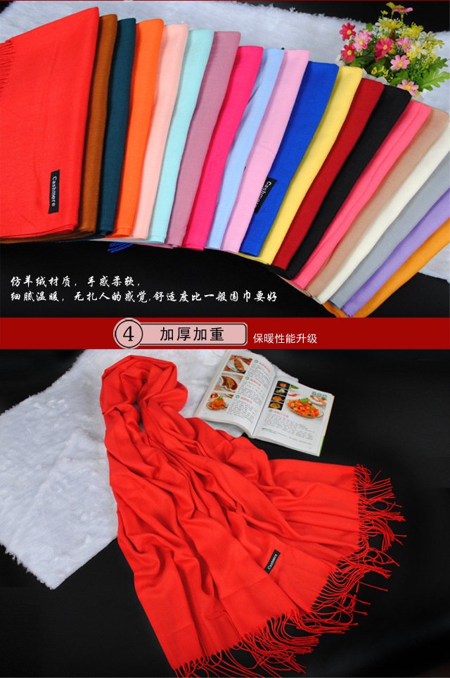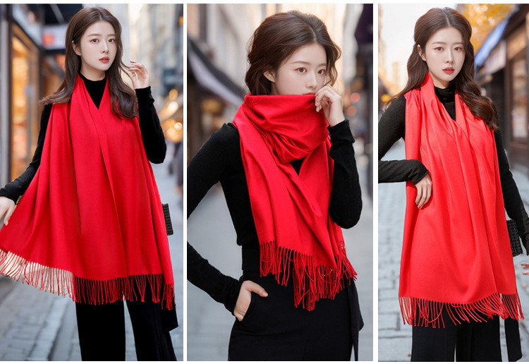 仿羊绒纯色围巾开业庆典聚会活动年会礼品中国红围巾logo