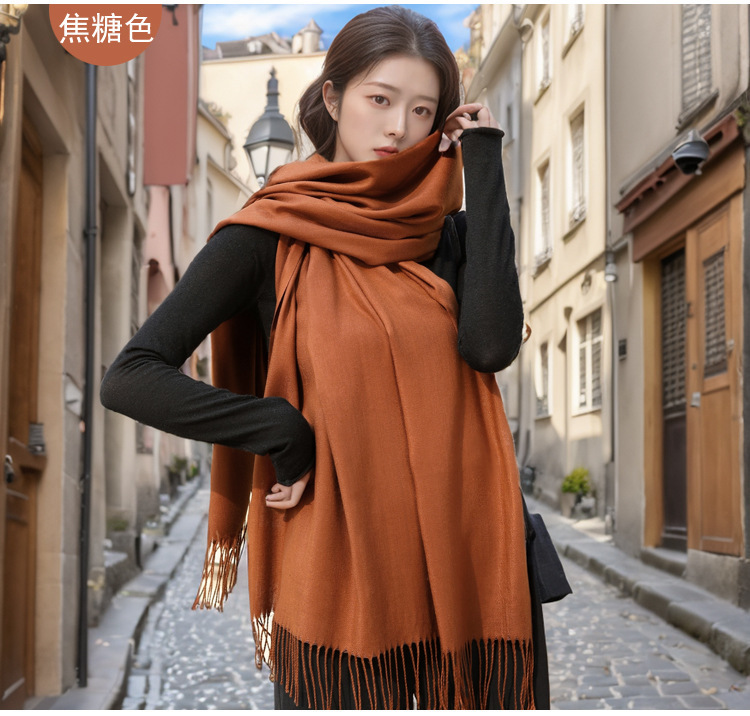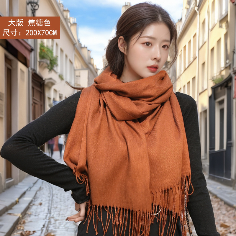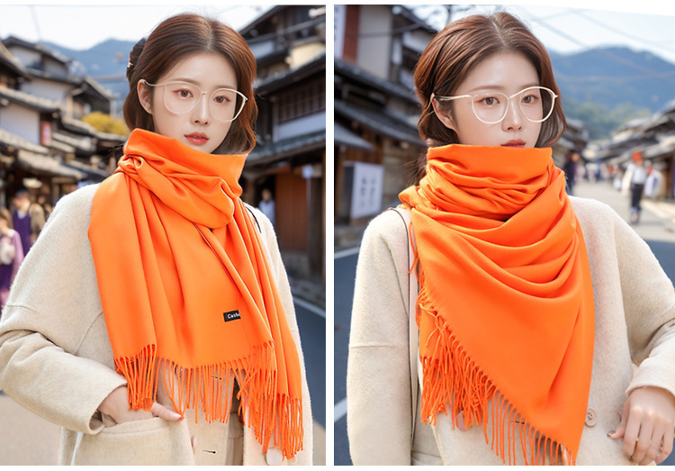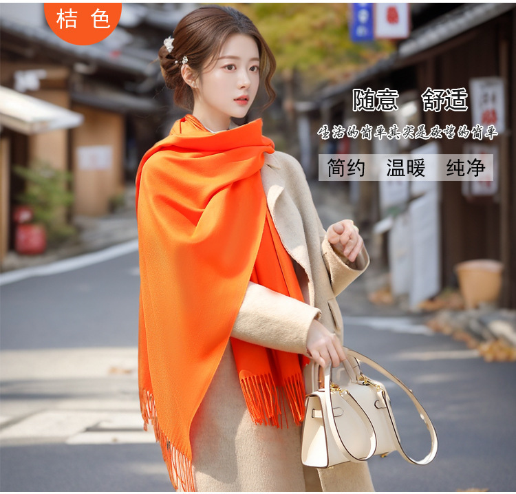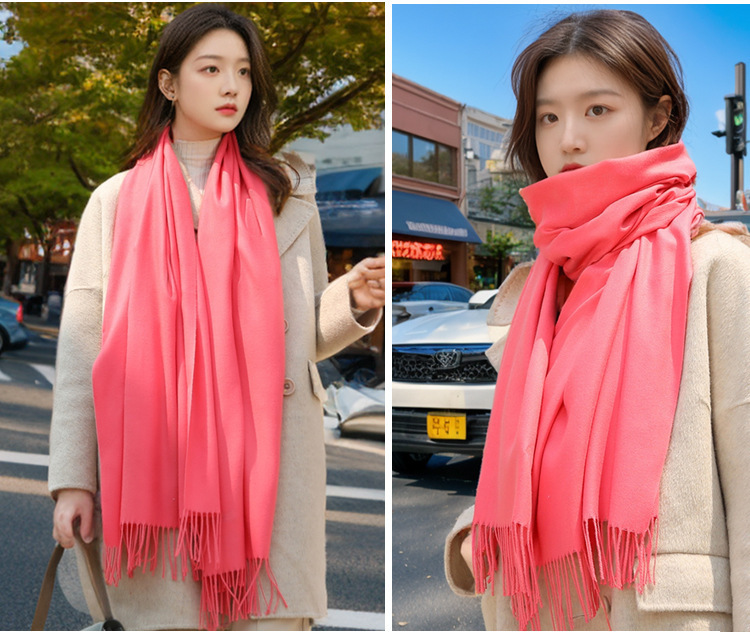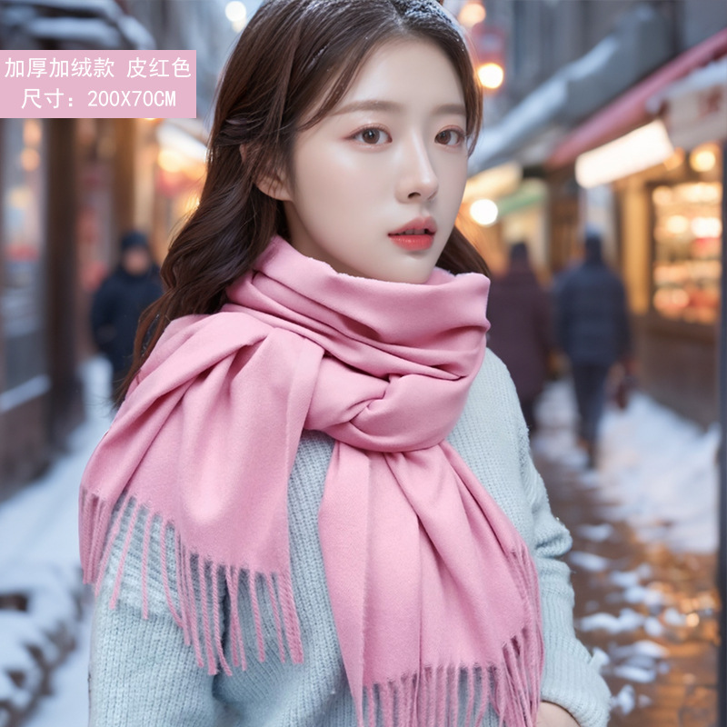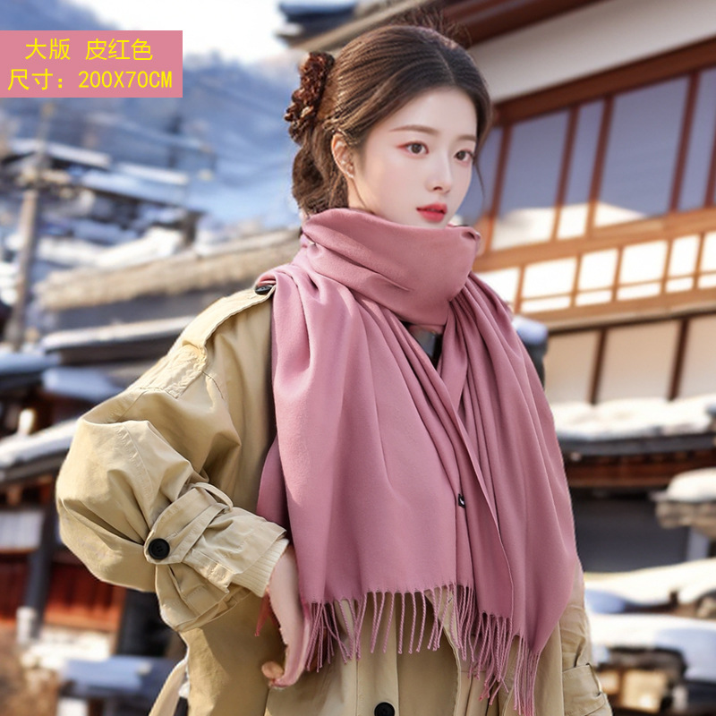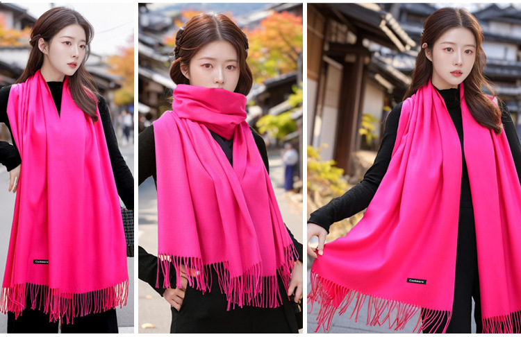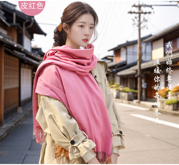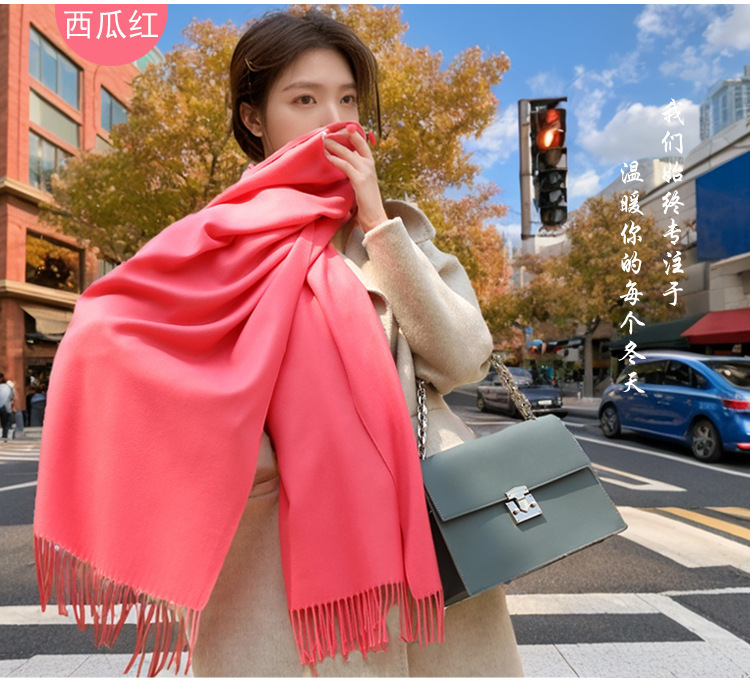 仿羊绒纯色围巾开业庆典聚会活动年会礼品中国红围巾logo