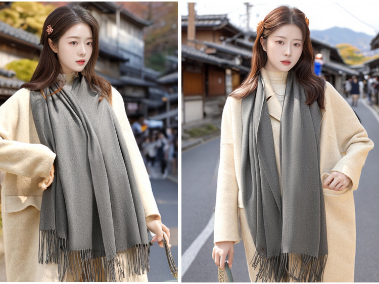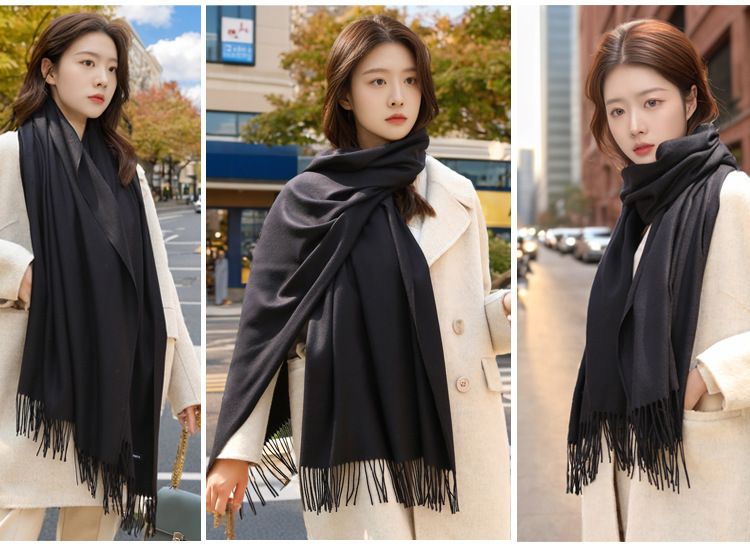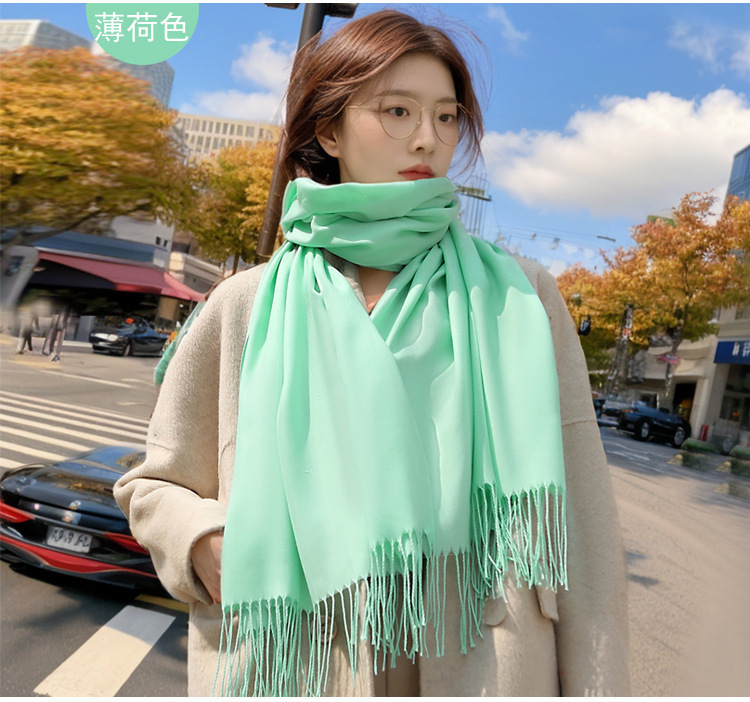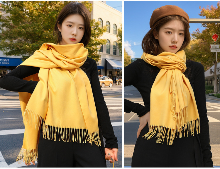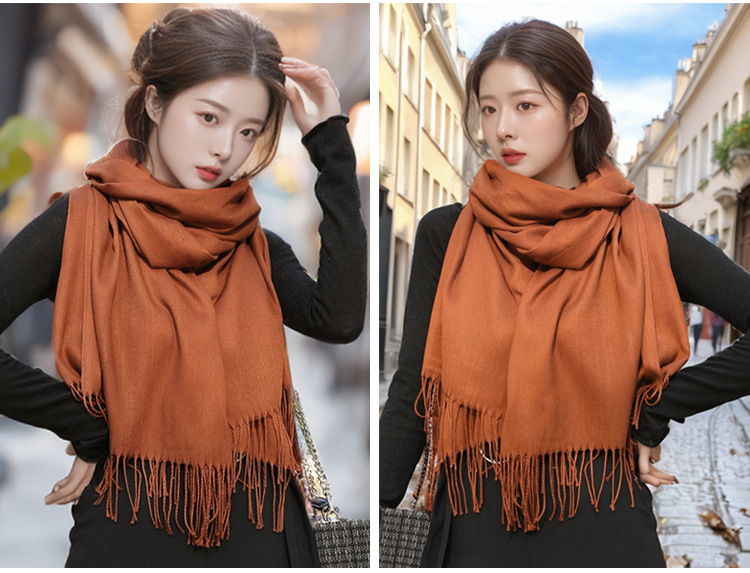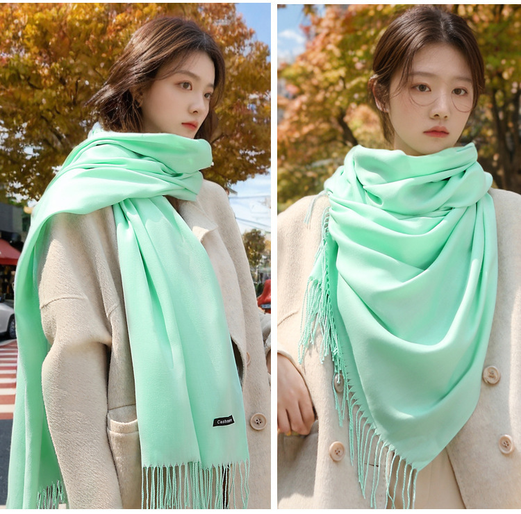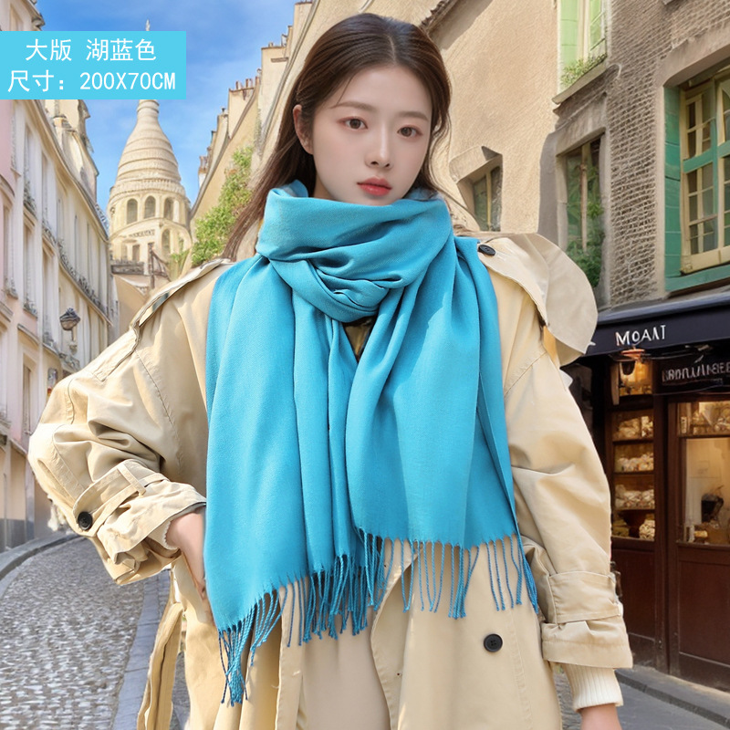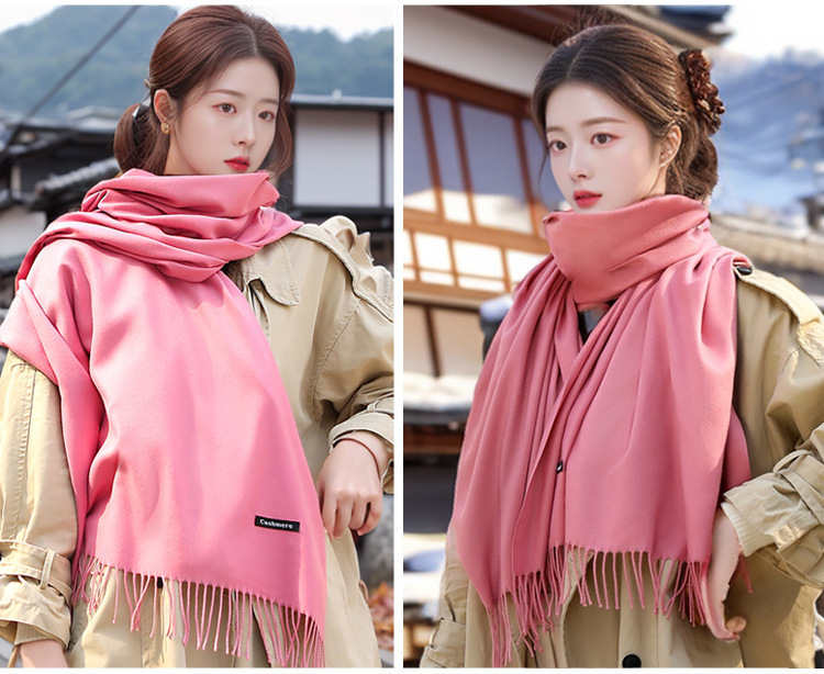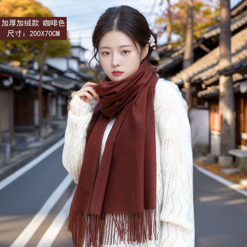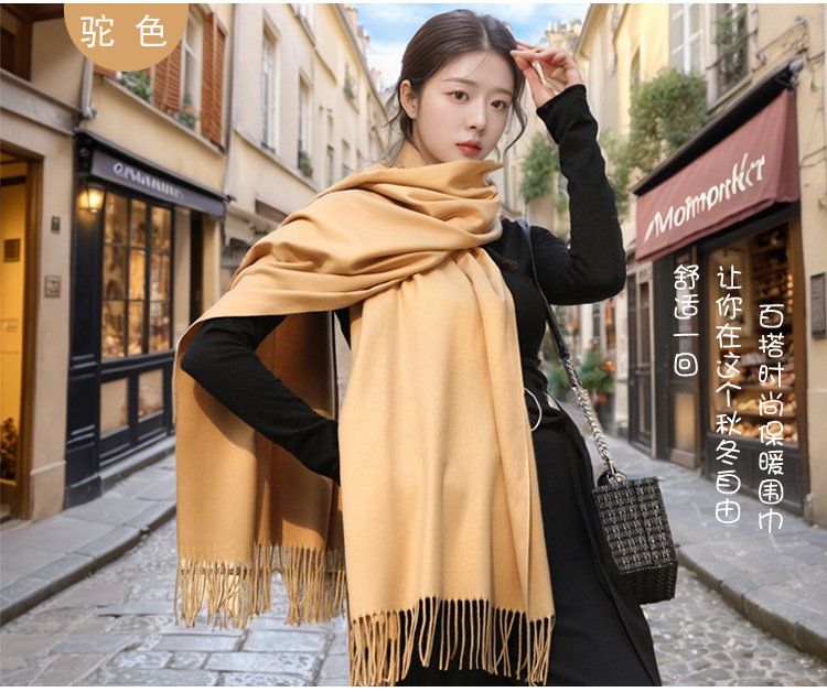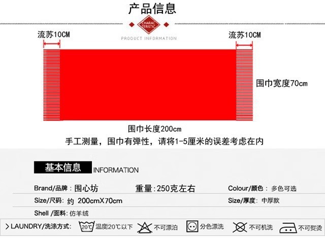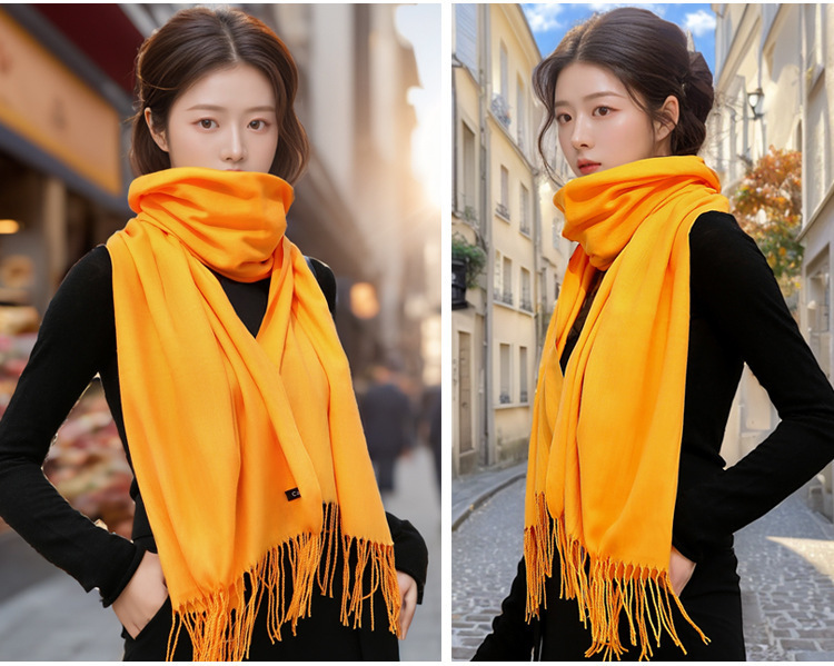 仿羊绒纯色围巾开业庆典聚会活动年会礼品中国红围巾logo