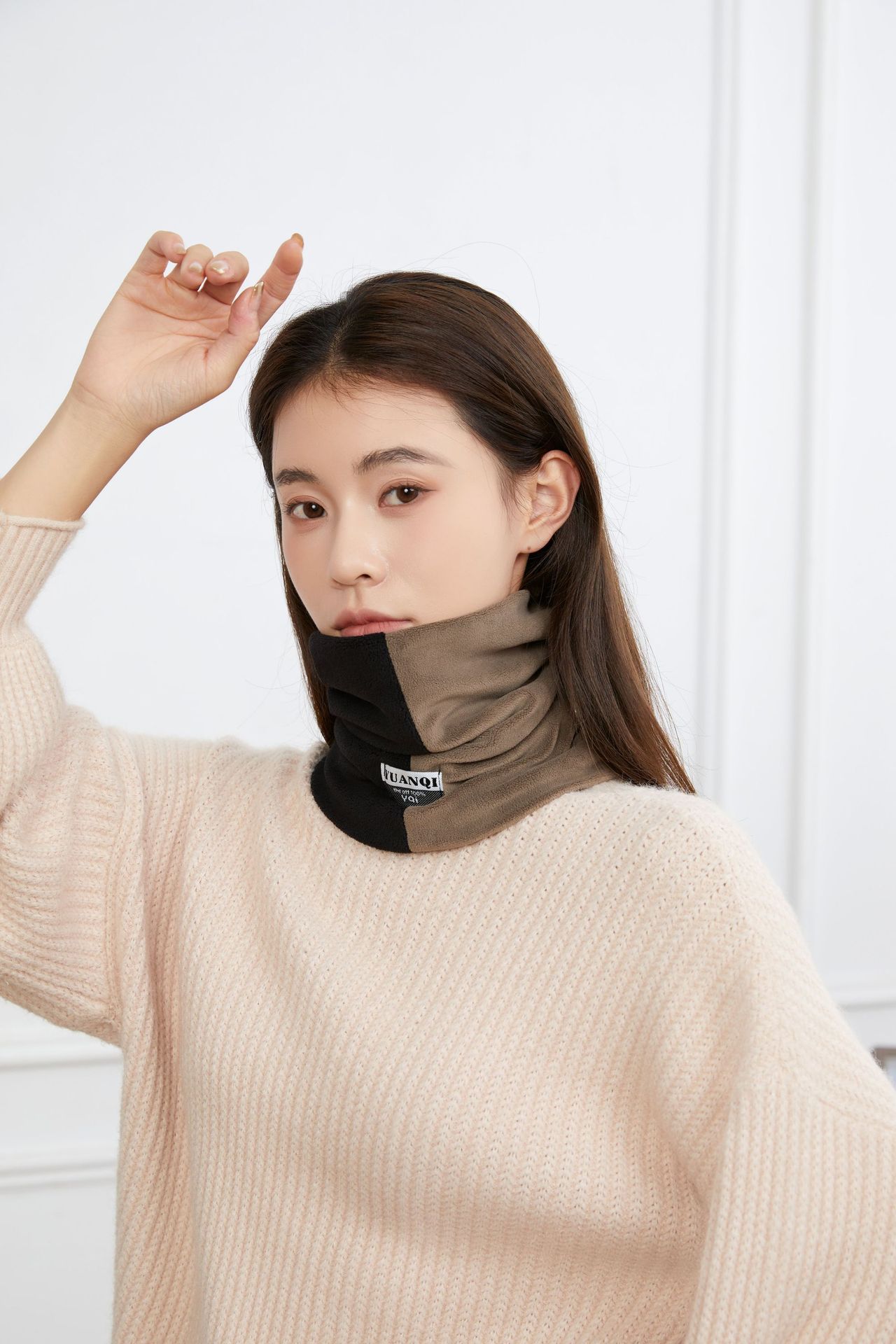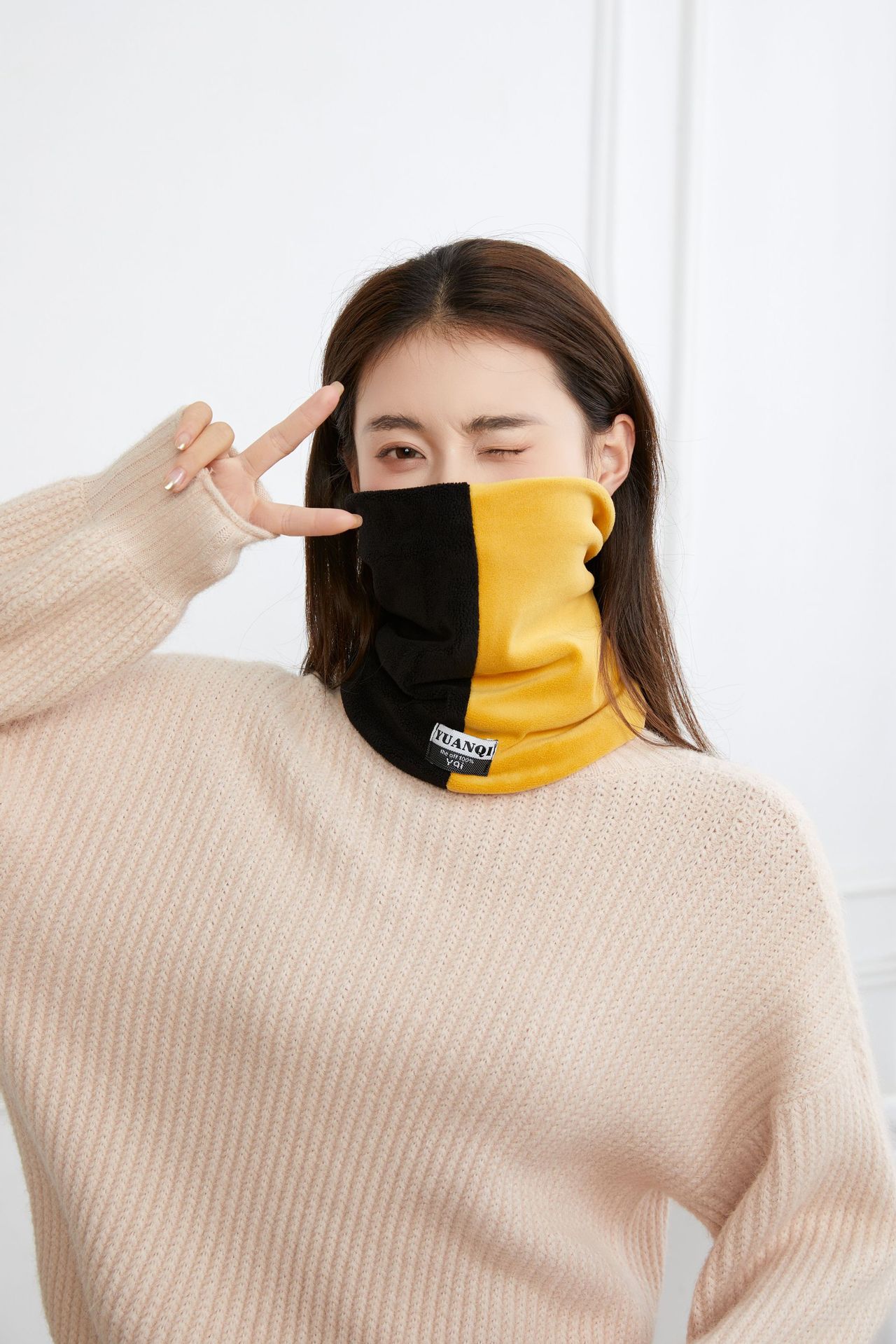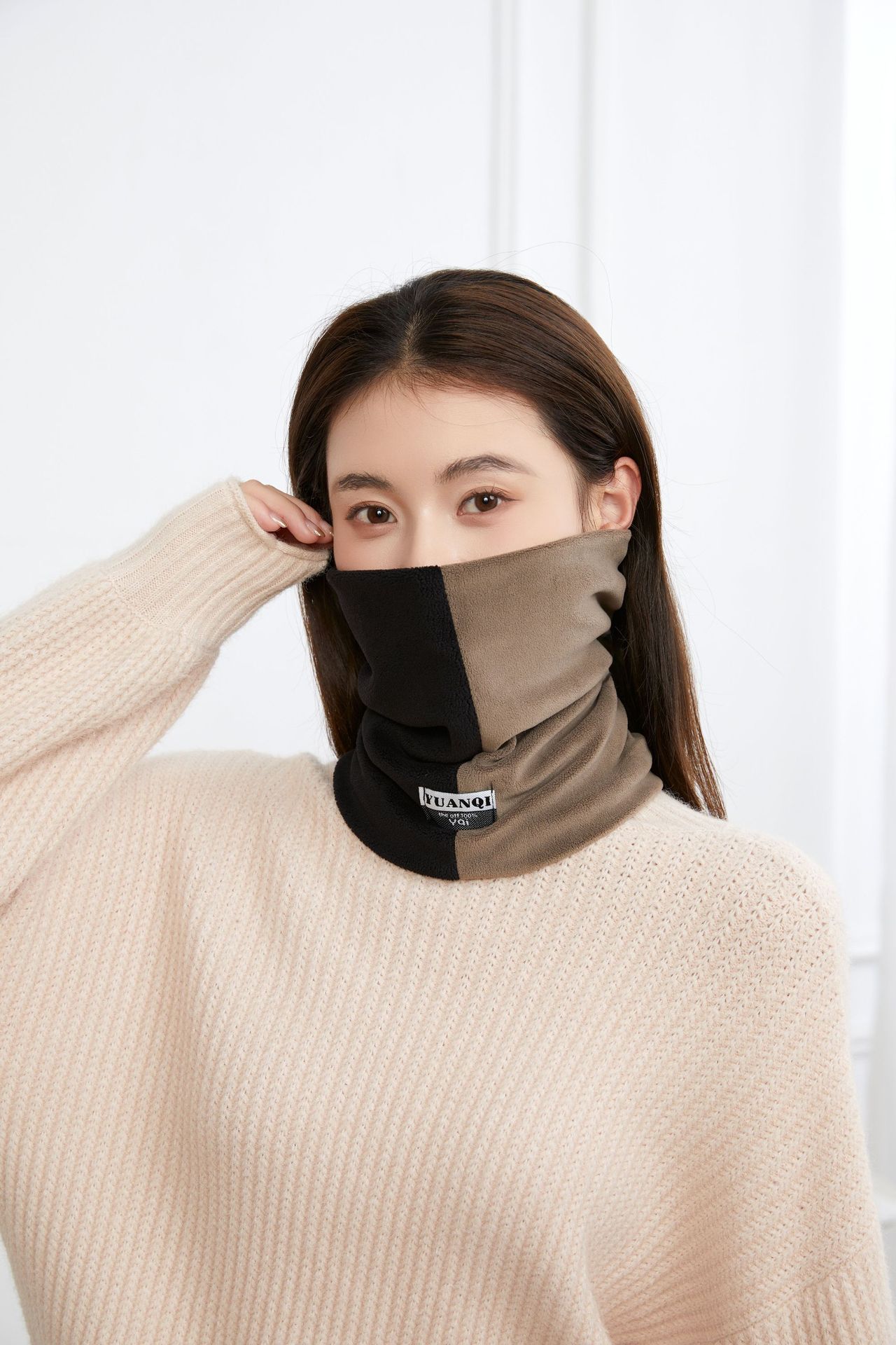 秋冬围脖保暖加厚男女护颈撞色双层脖套户外骑行大版百搭面罩围巾