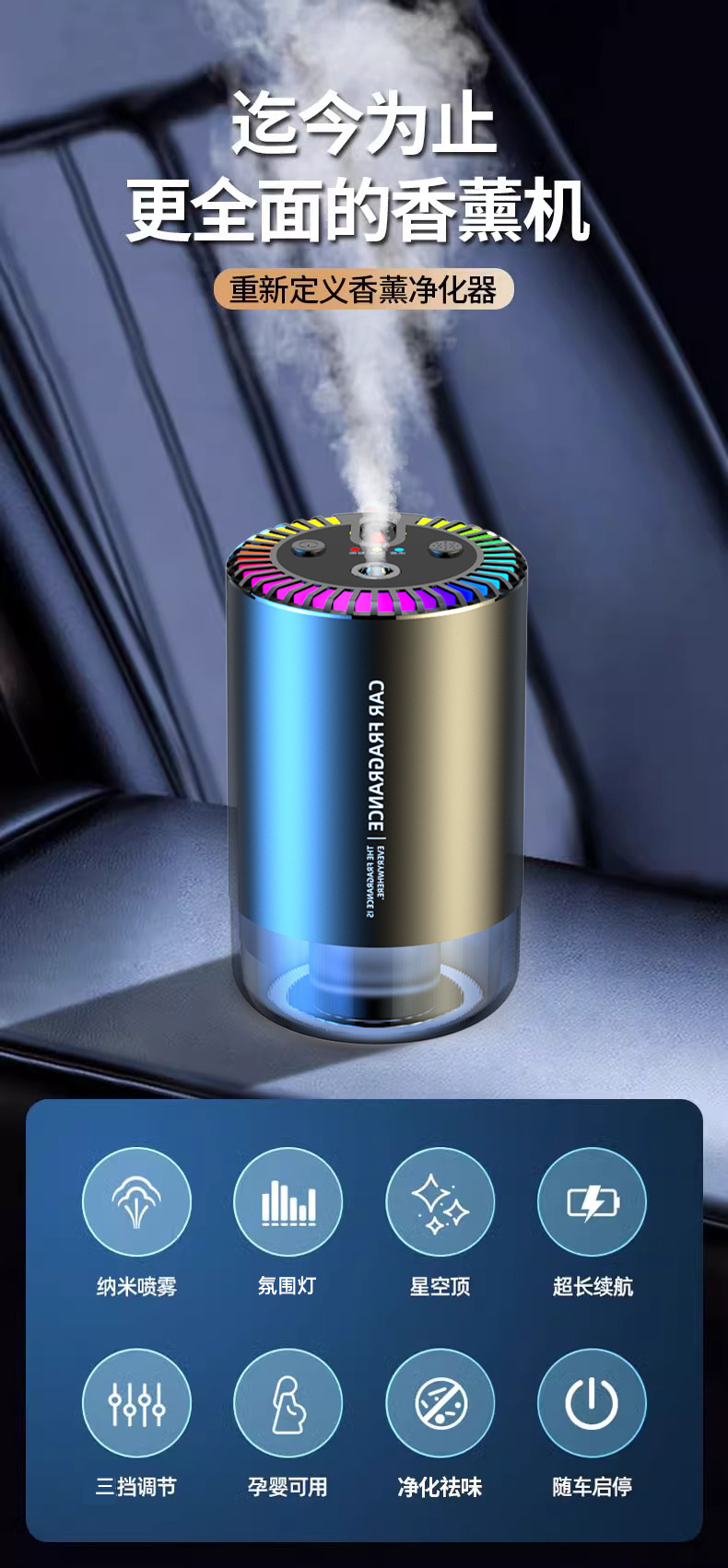 星空顶车载香薰汽车香水车内用品车用自动喷雾高级档摆件2024新款