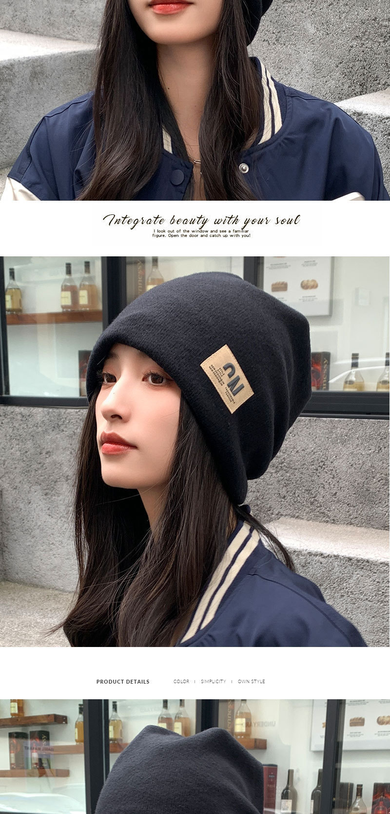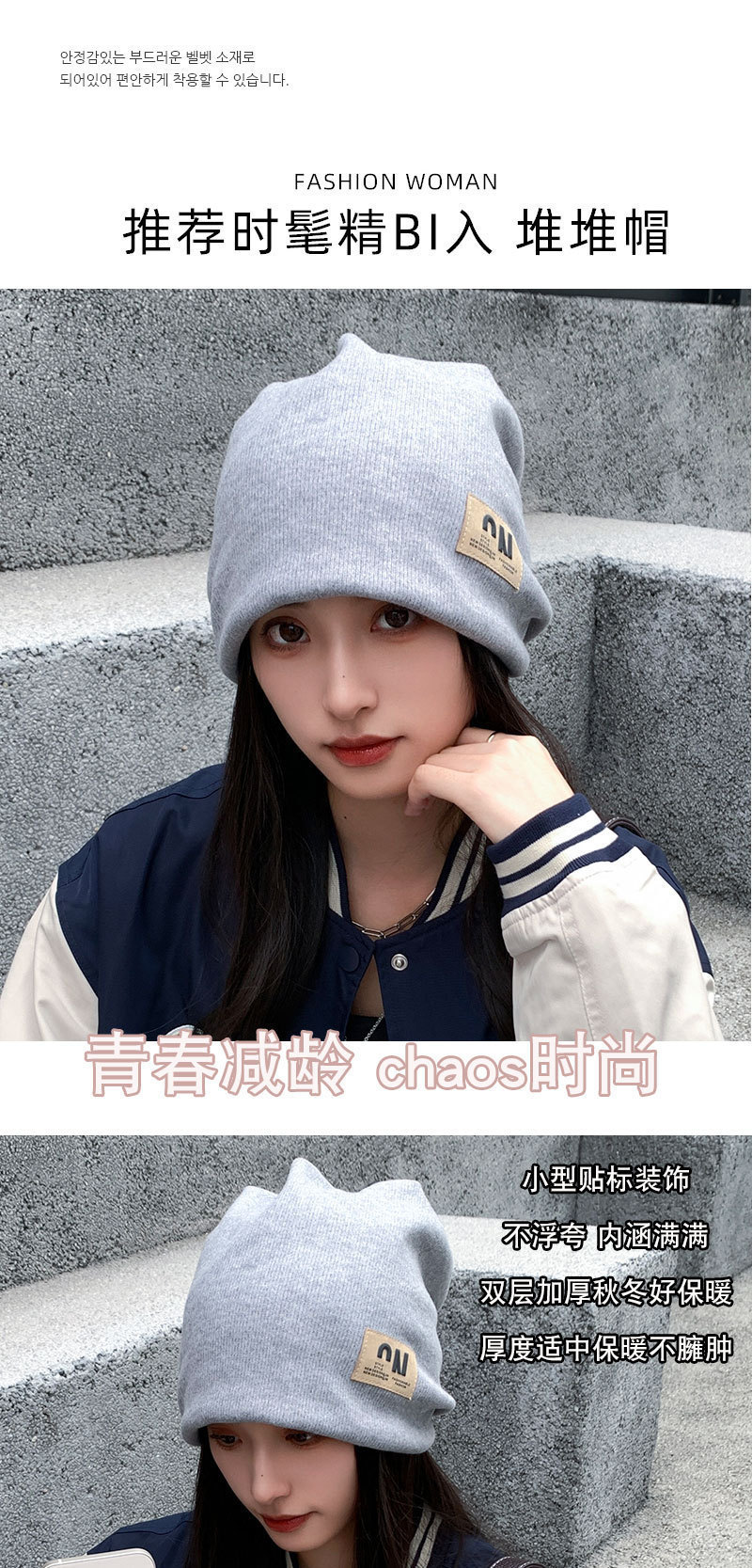 堆堆帽潮流女秋冬季产后月子帽百搭显脸小针织毛线包头帽子防风