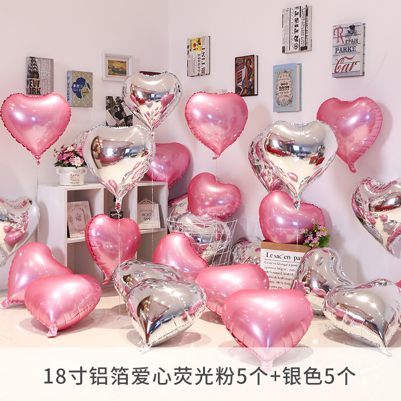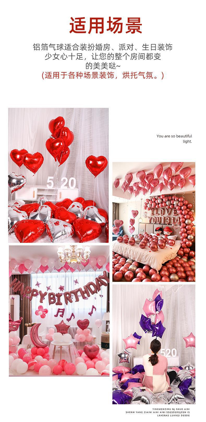 铝膜气球爱心粉红色飘空订婚房浪漫布置结婚星星生日心形装饰桃心