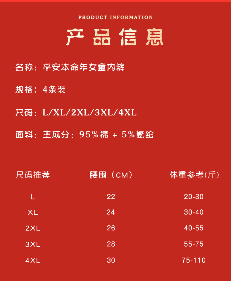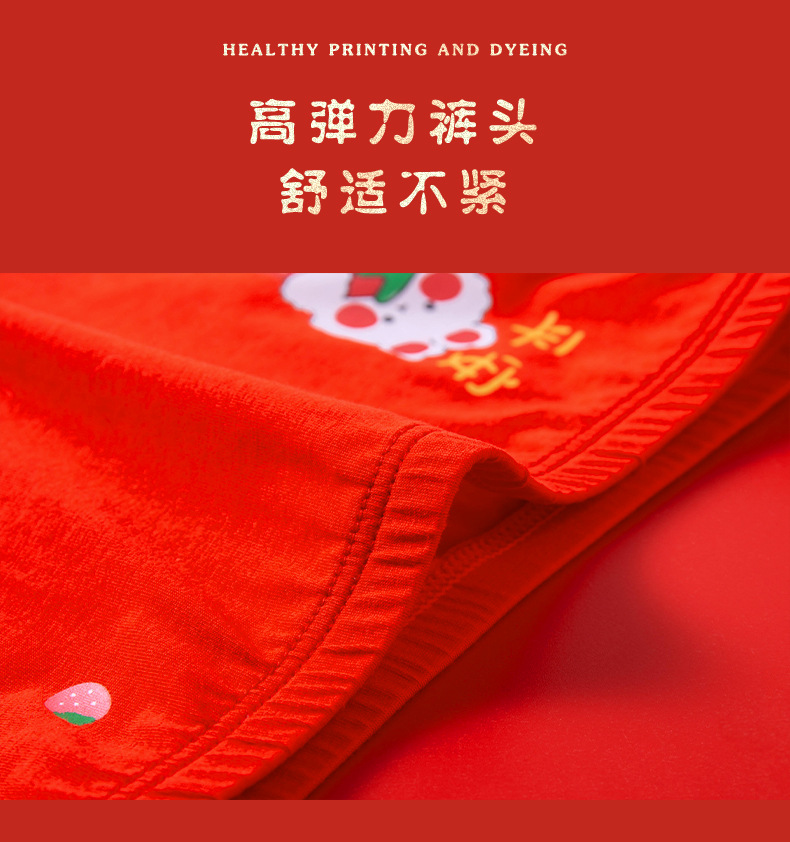 新年秋冬季新款儿童内裤卡通可爱纯棉中腰大红色本命年女童平角裤