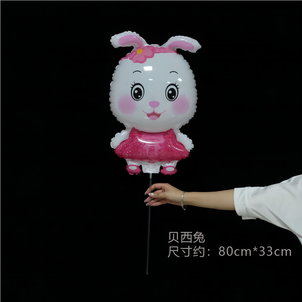 卡通动物手持杆夹片气球幼儿园运动会活动氛围小道具地摊充气棒