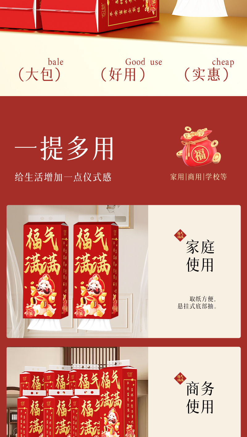 织梦大包抽纸悬挂式新年厕所厕纸底部抽取卫生纸家用擦手纸巾DF