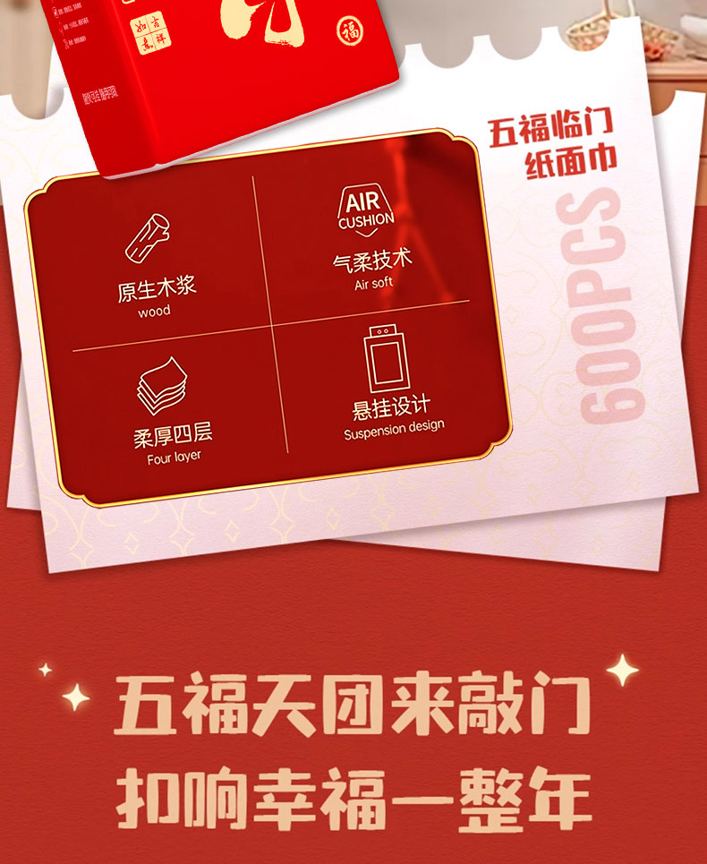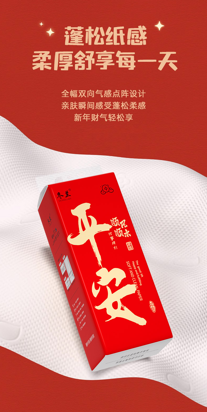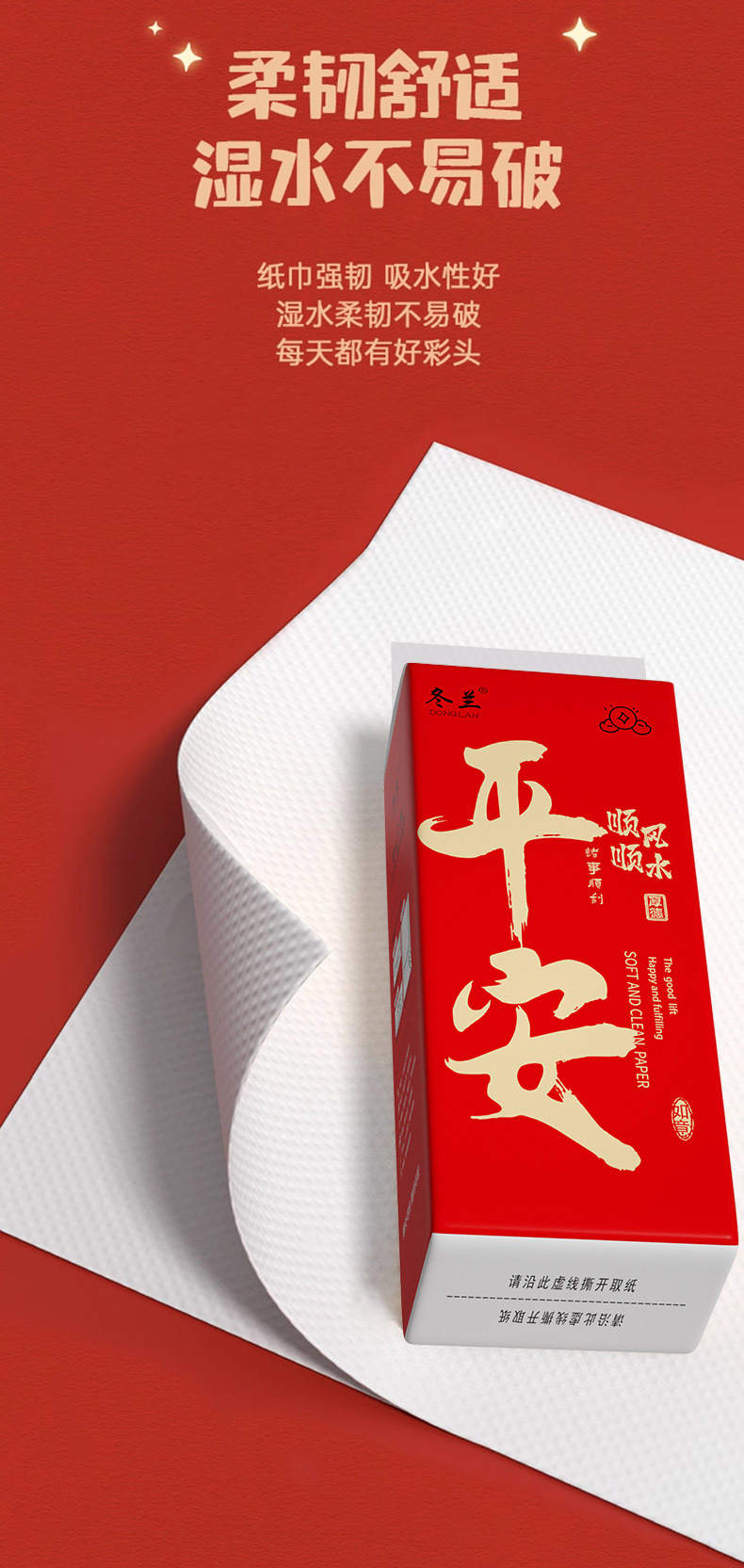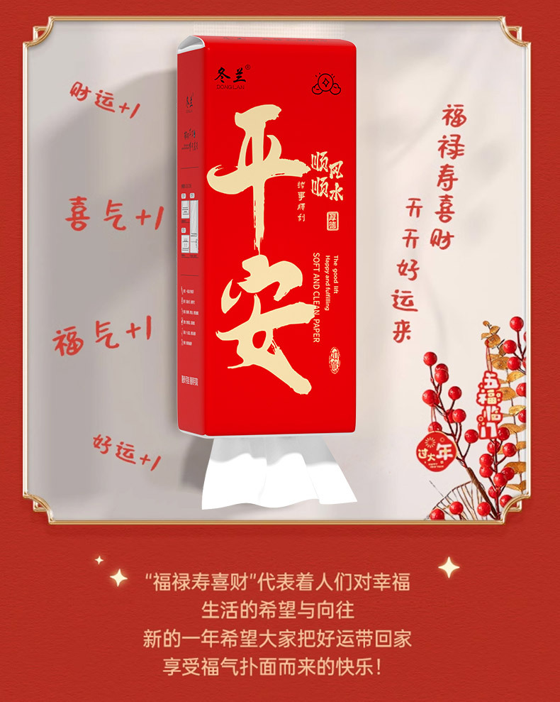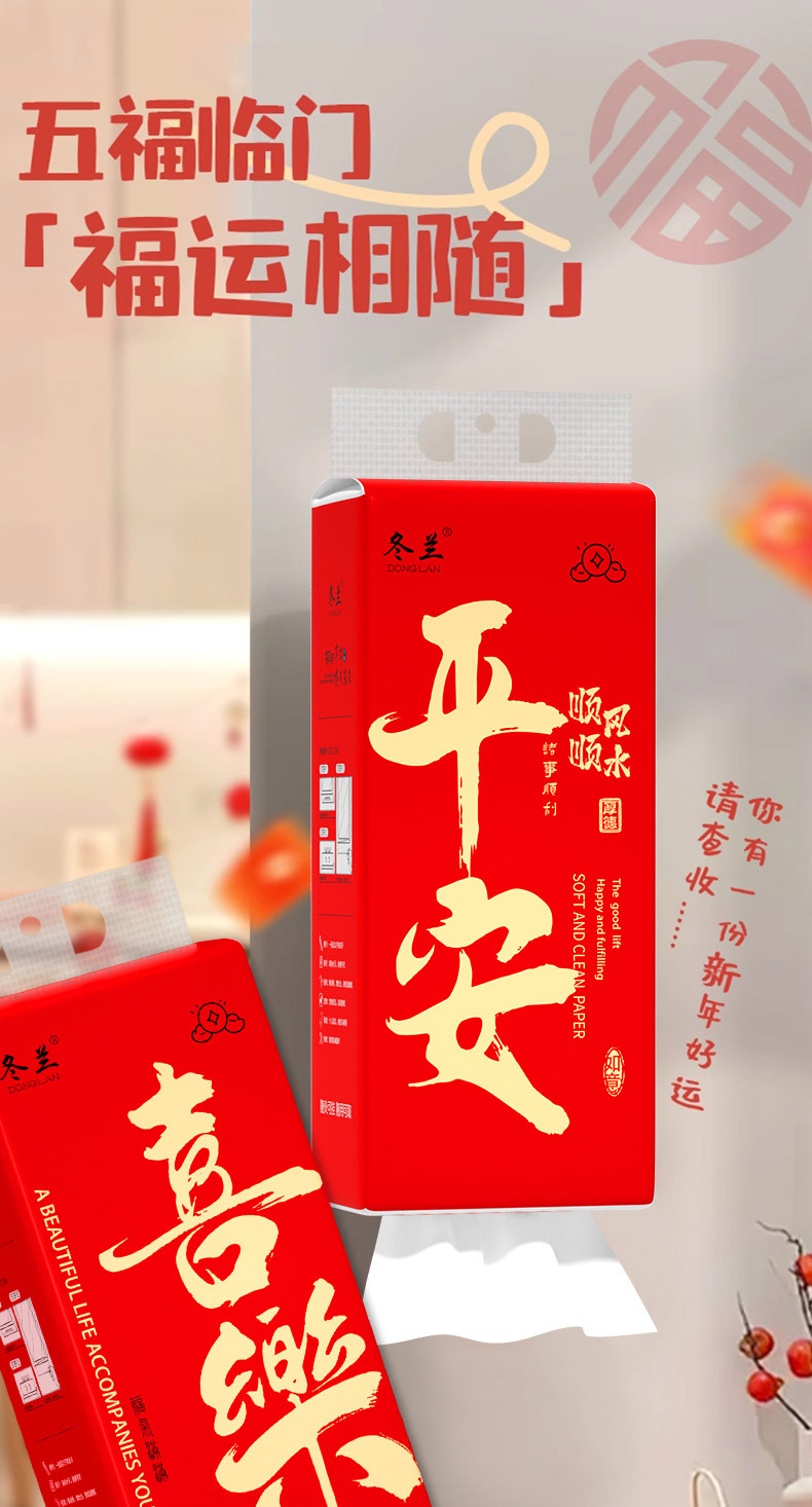 新年平安喜乐悬挂式抽纸家用纸巾实惠装卫生纸整箱面巾纸批发厕纸