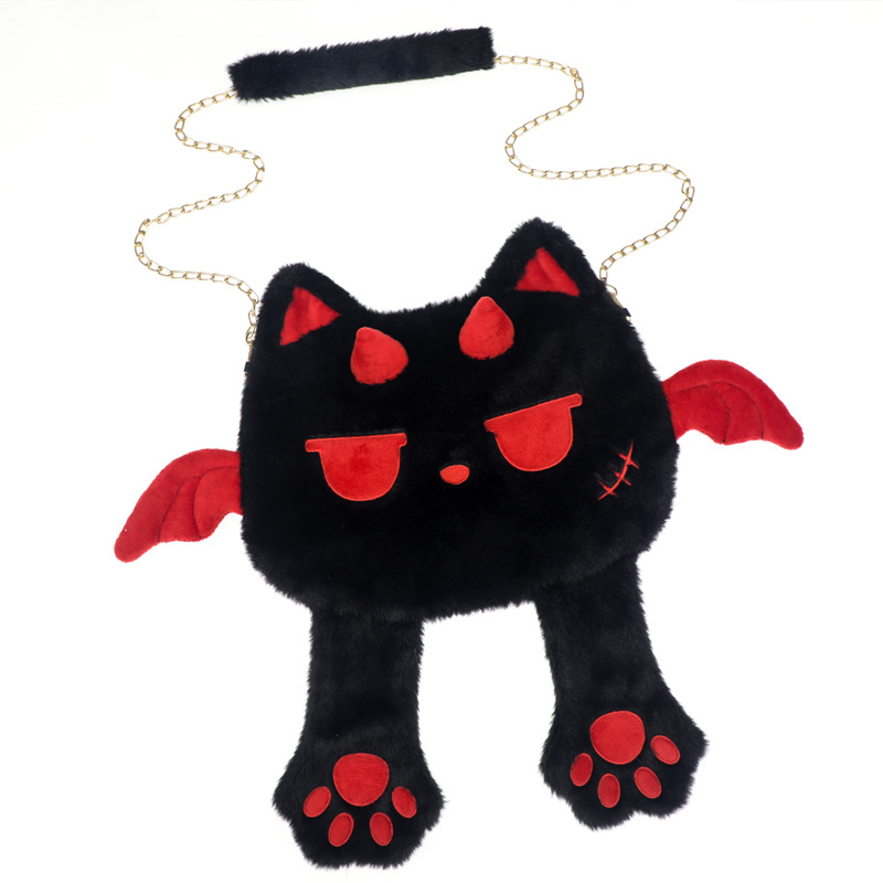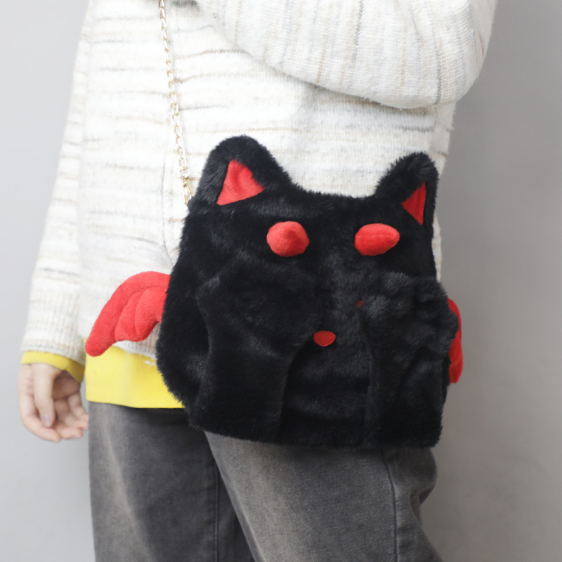 网红毛绒卡通小恶魔猫咪单肩包软萌捂脸猫头包可爱女学生斜挎包