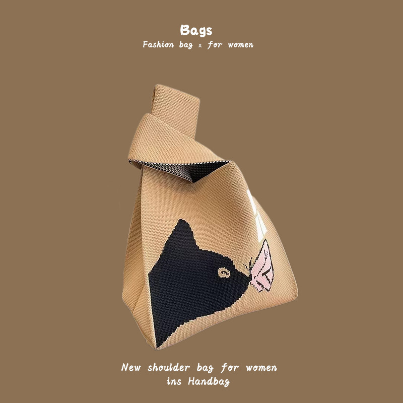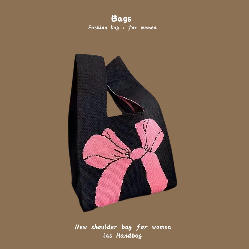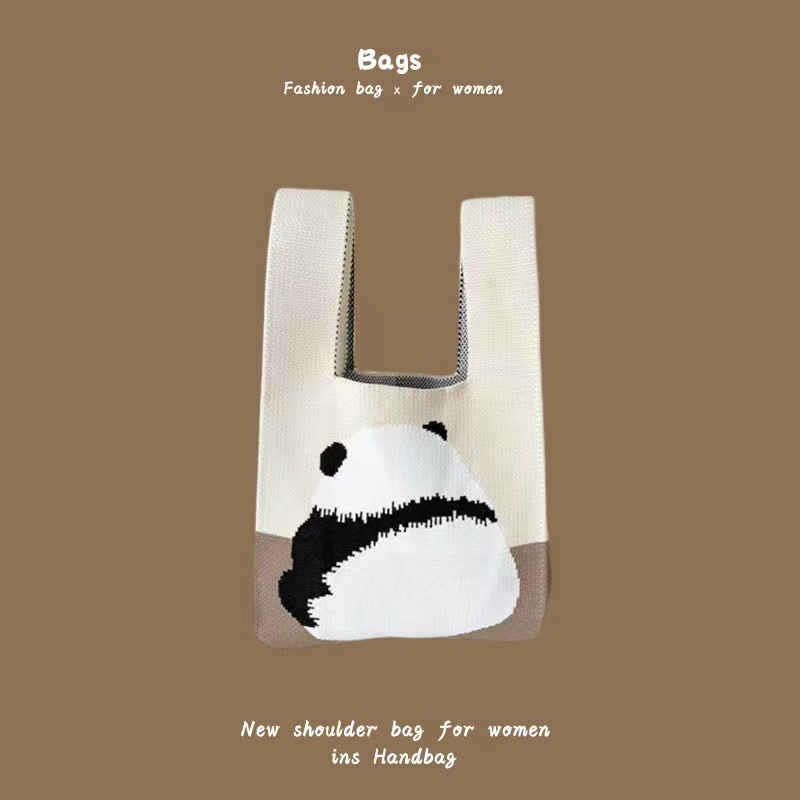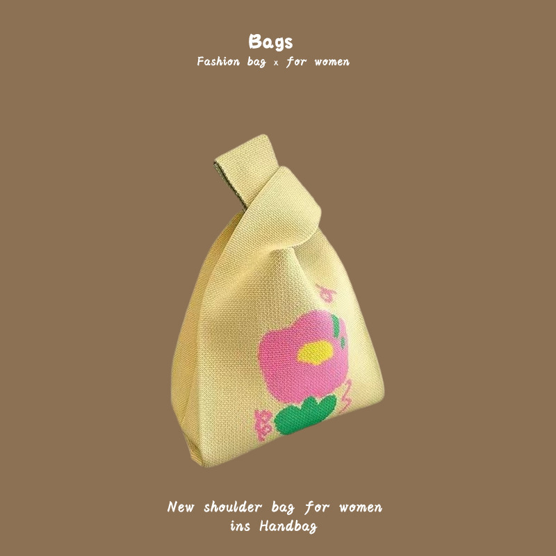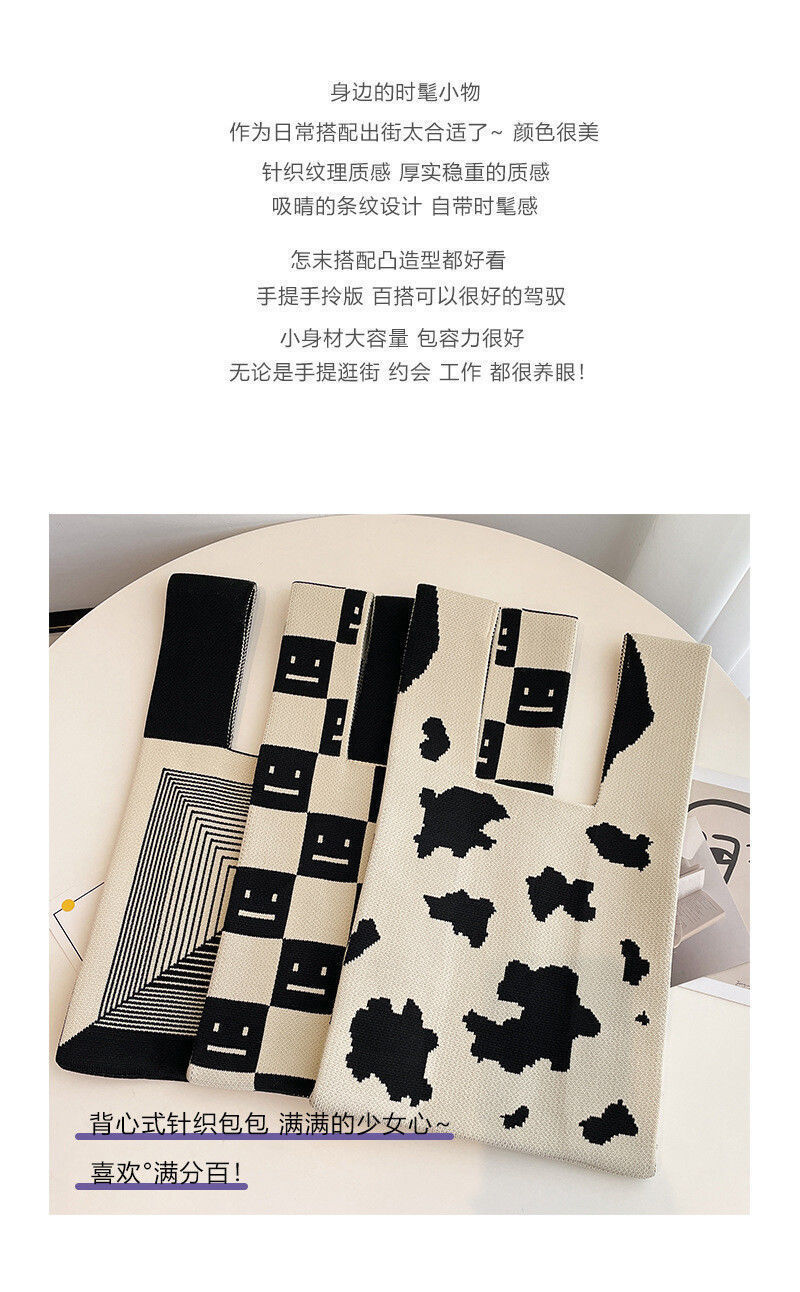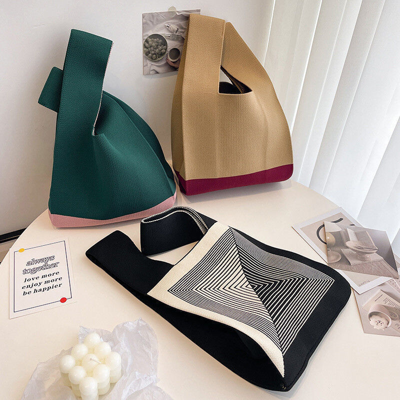 ins网红新款包女飞织毛线水桶包日韩版百搭手拎休闲托特包盒饭袋