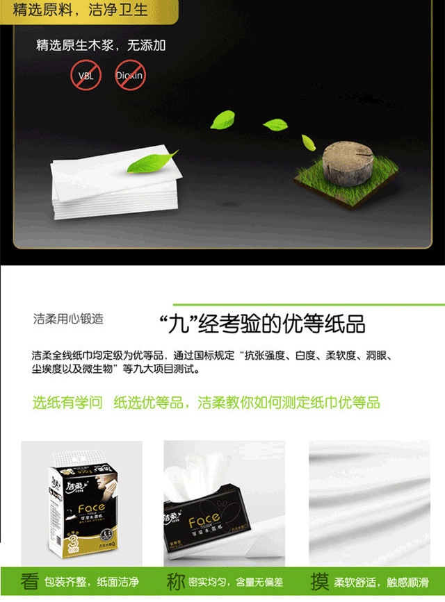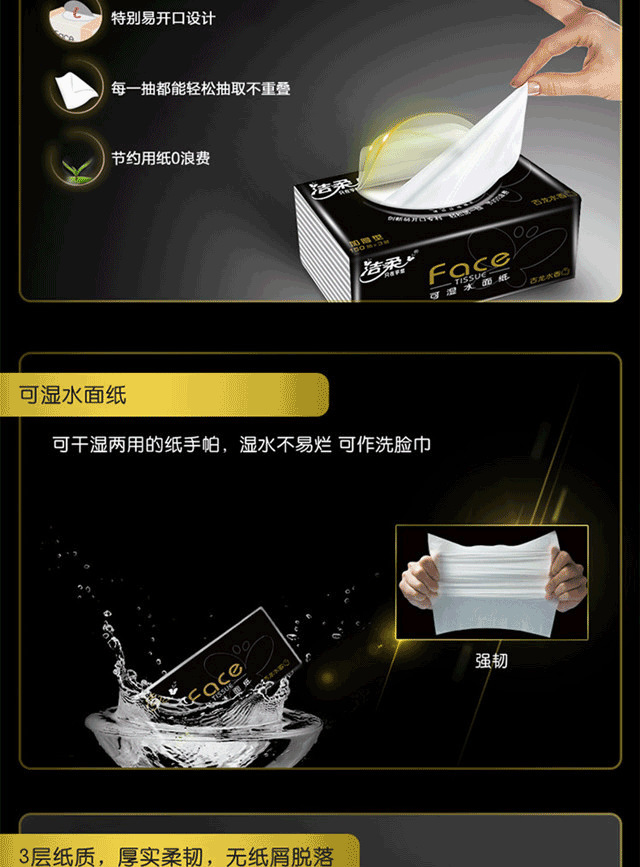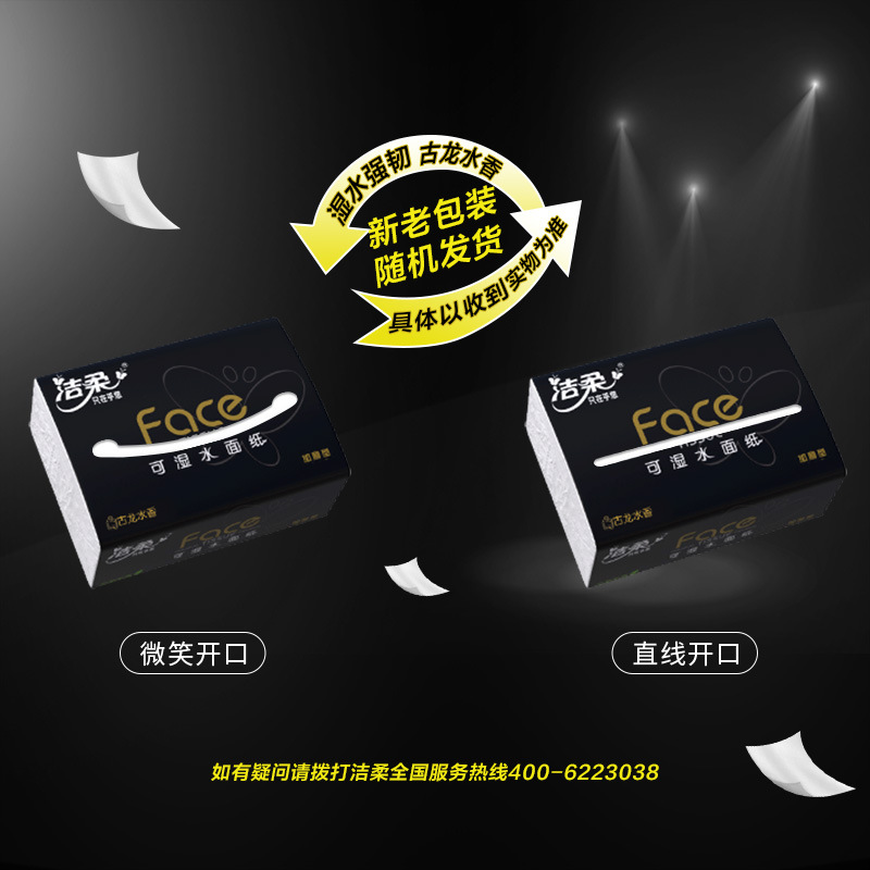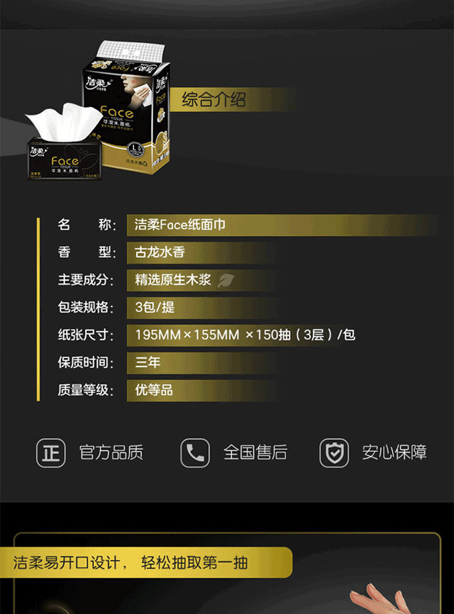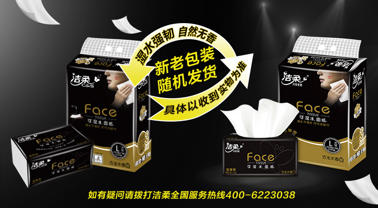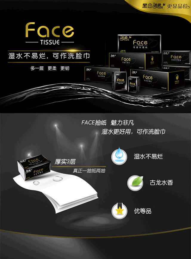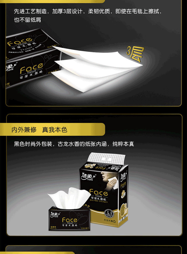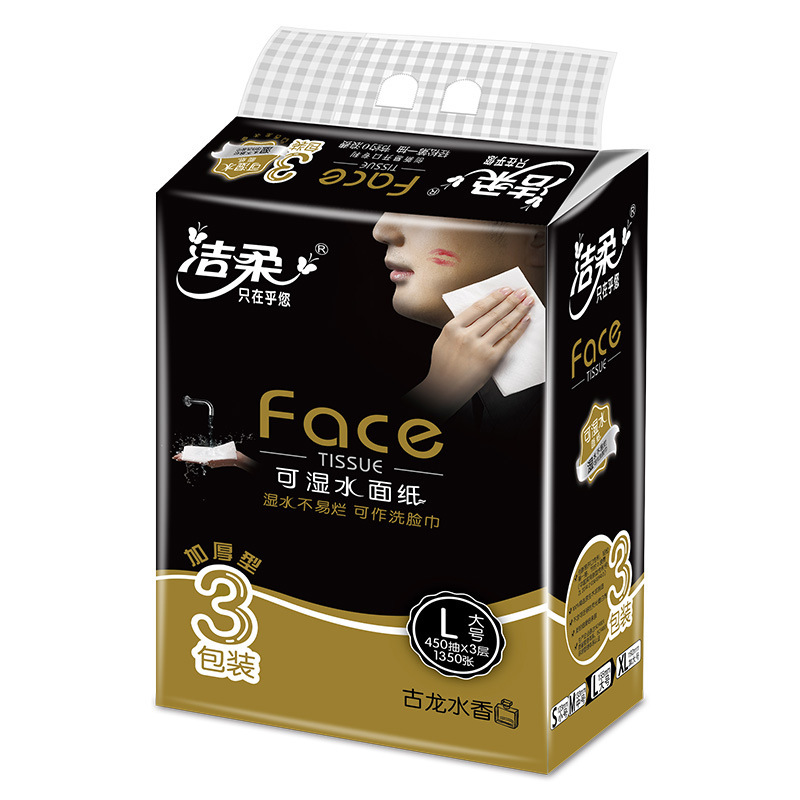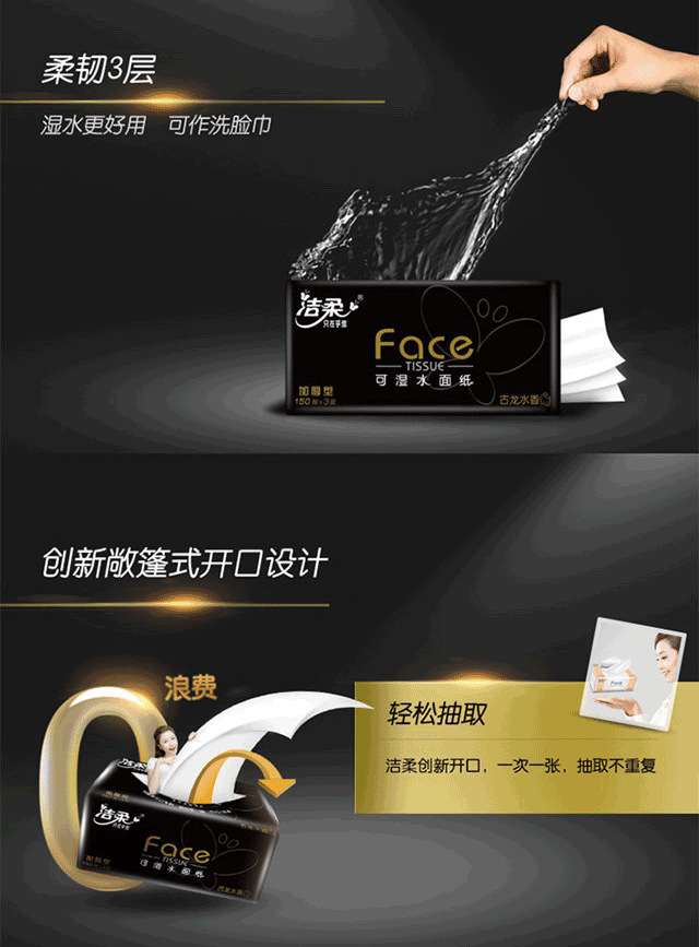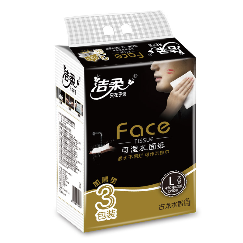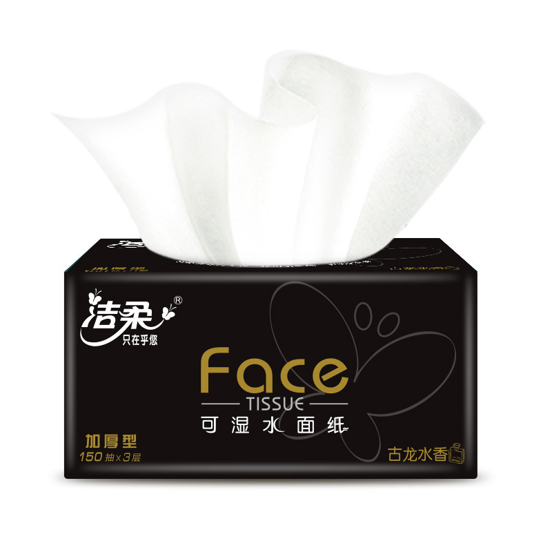 洁柔古龙水香味抽纸150抽黑Face可湿水3层3包大号面巾纸BR060