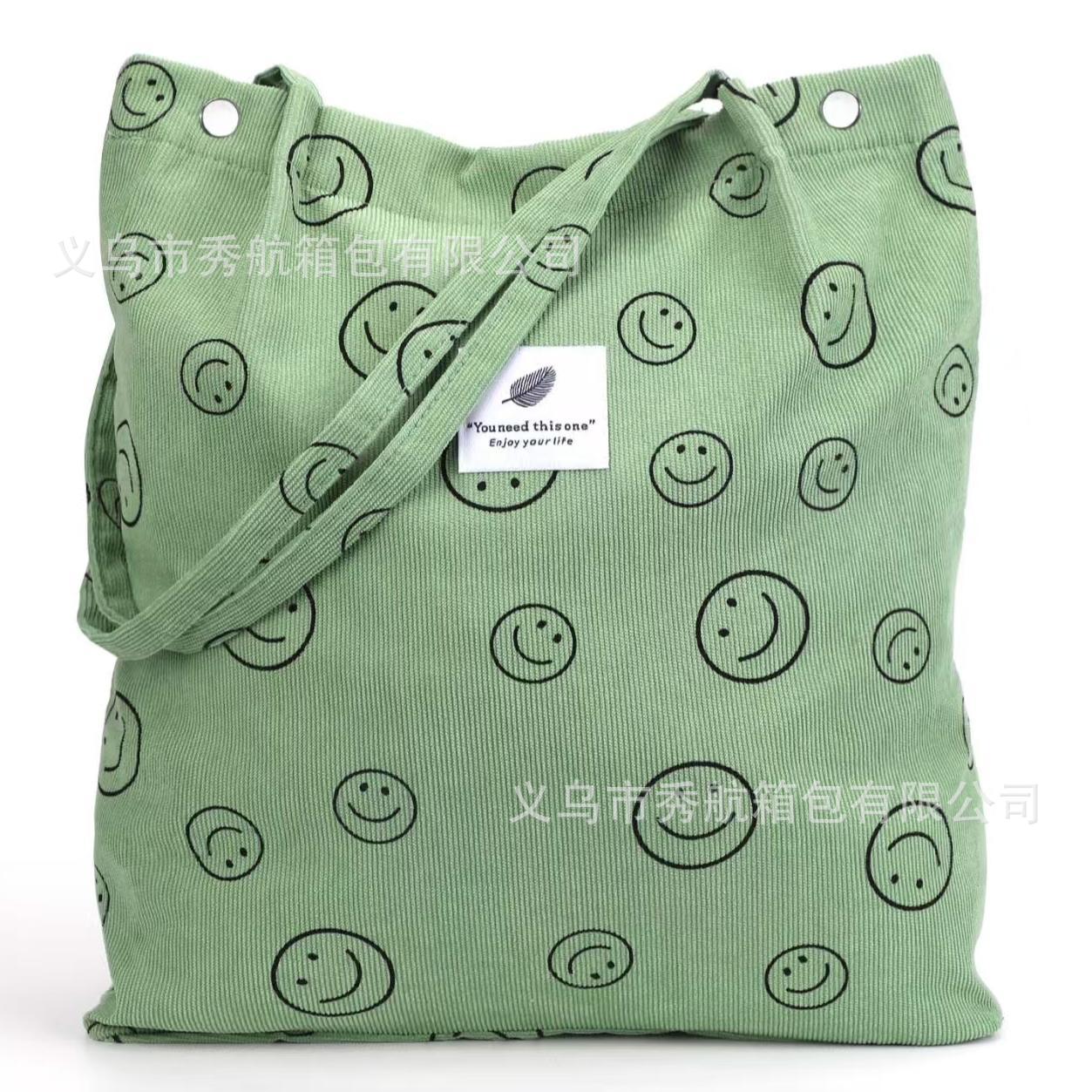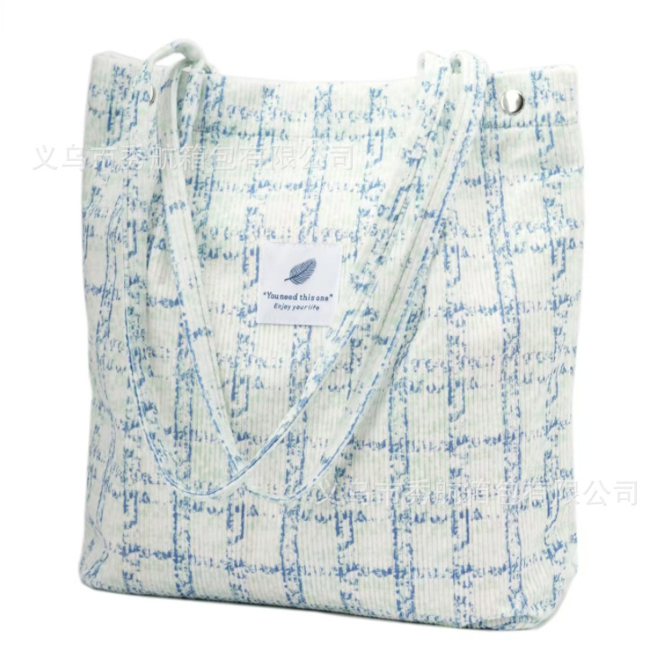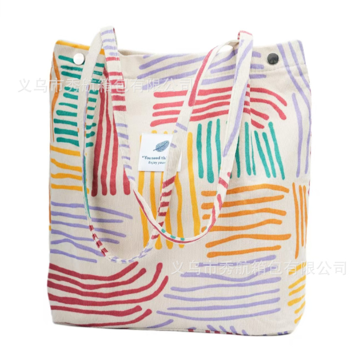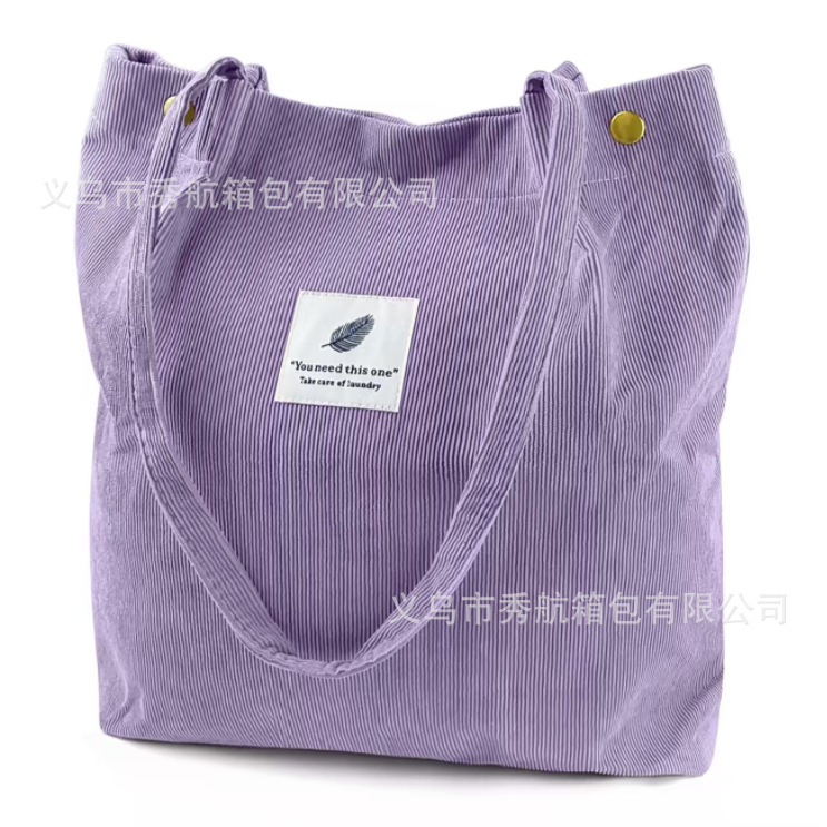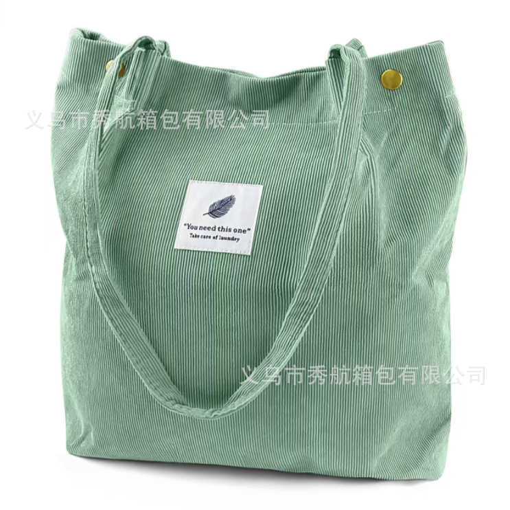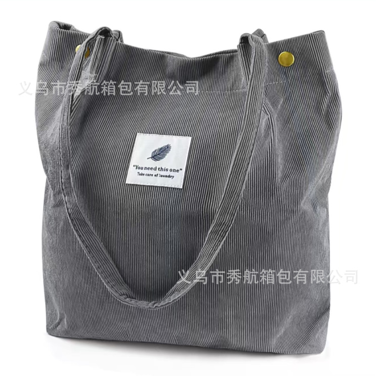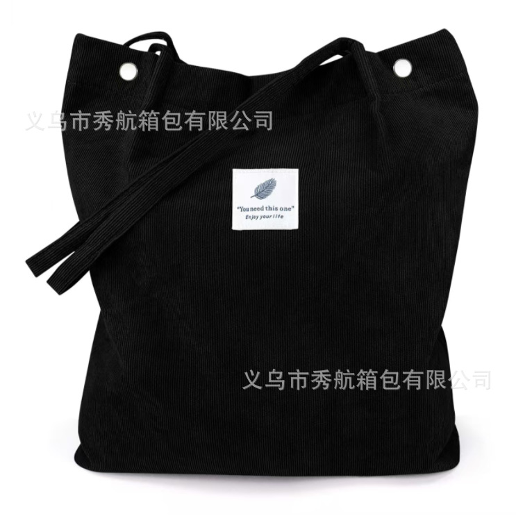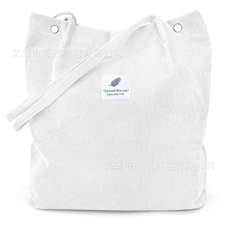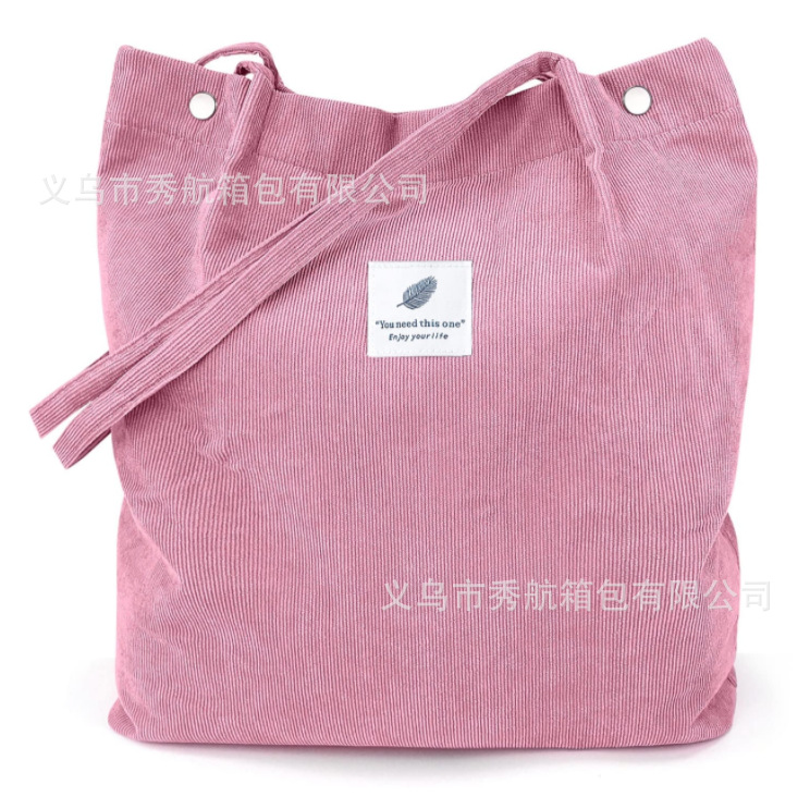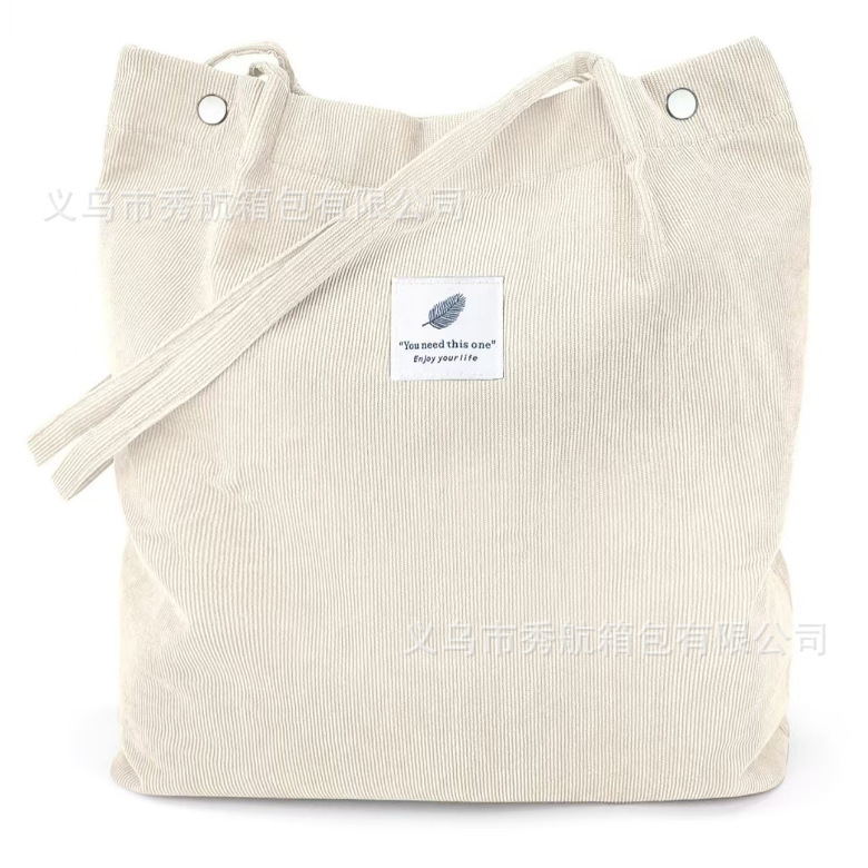 ins风简约灯芯绒帆布包双肩带帆布袋旅行外出收纳包女包单肩包