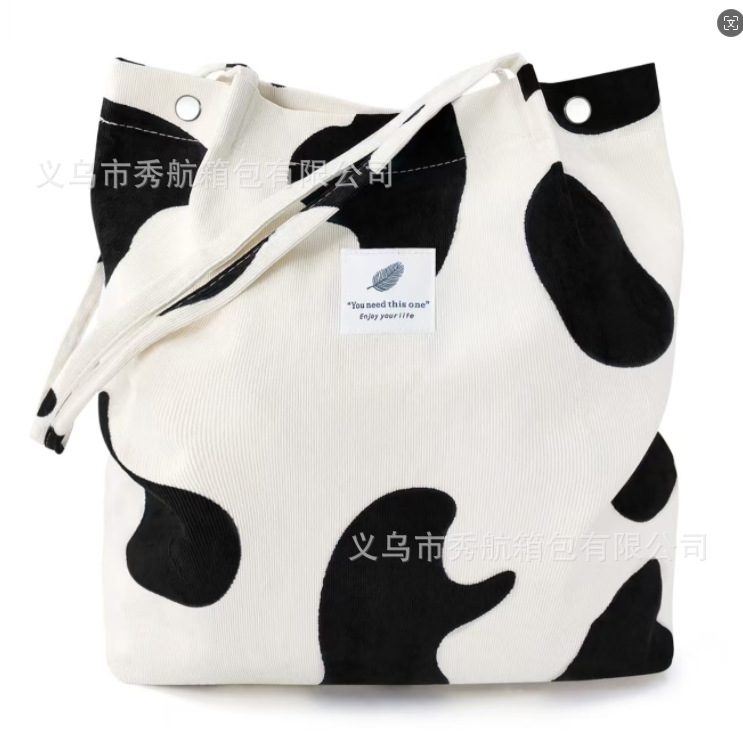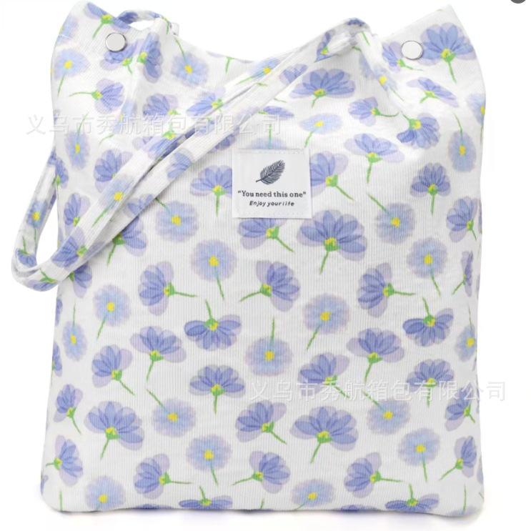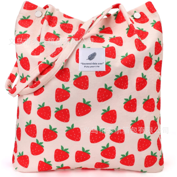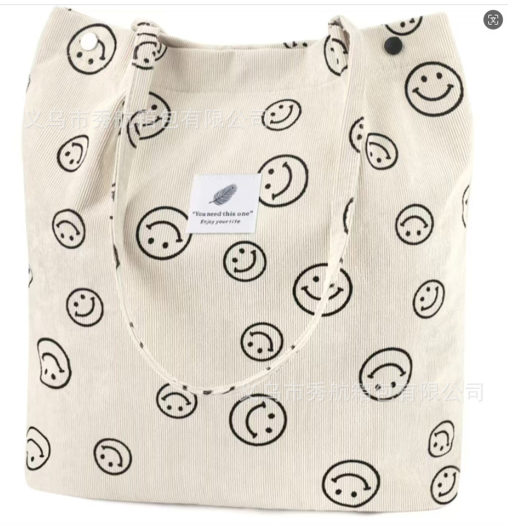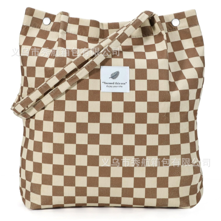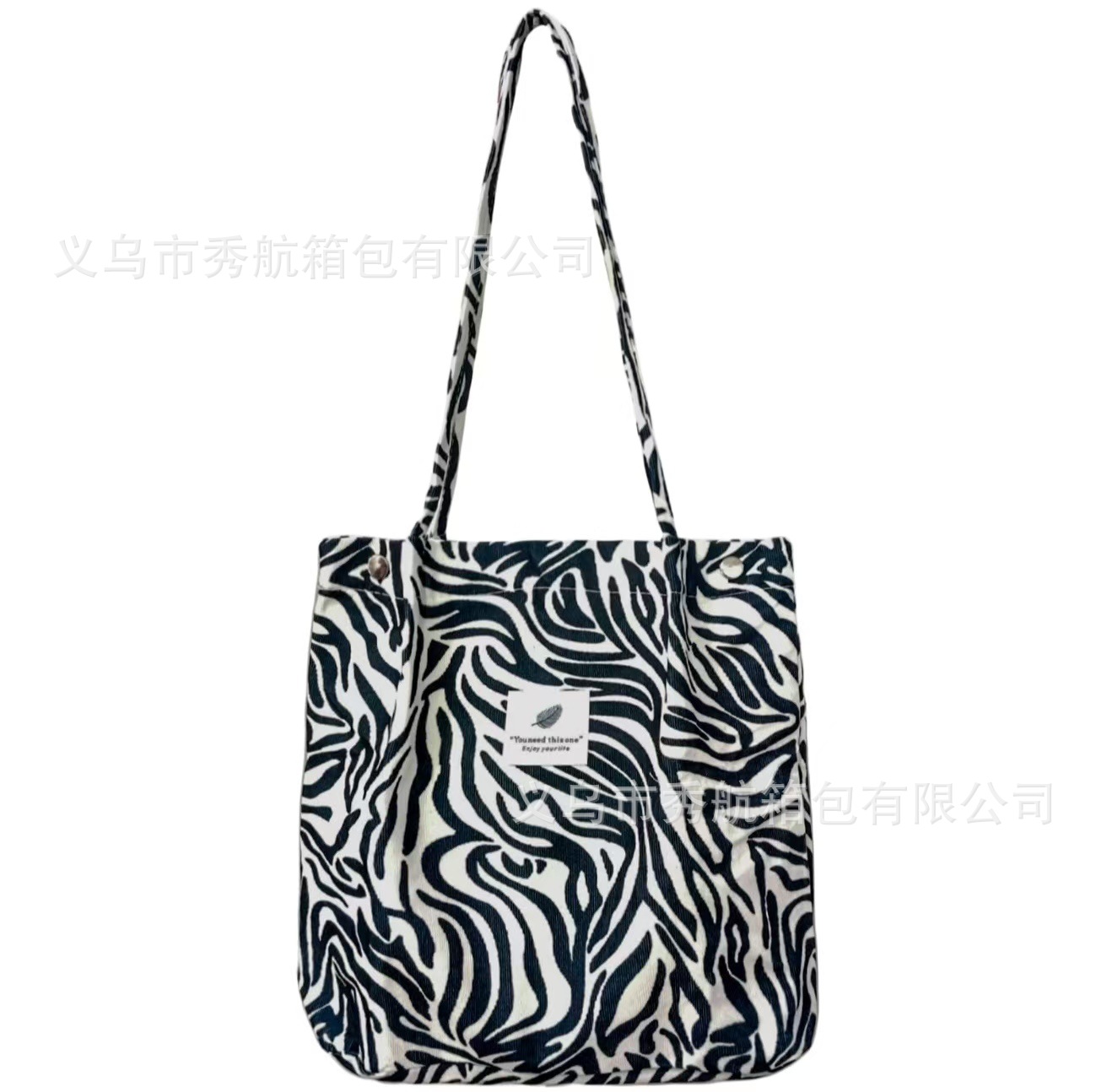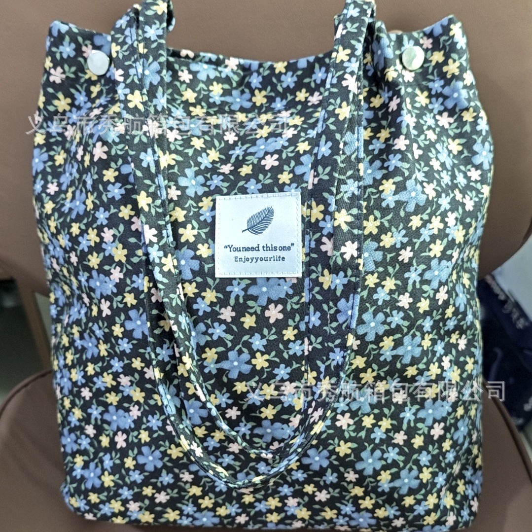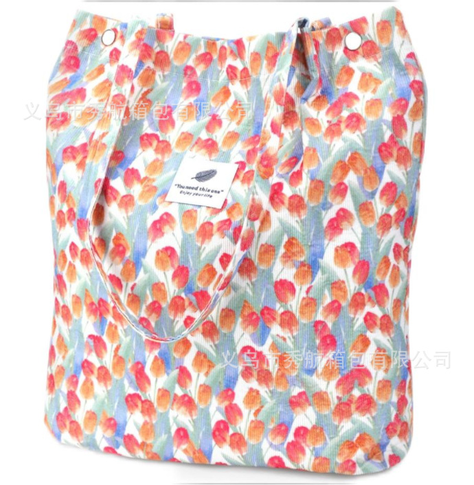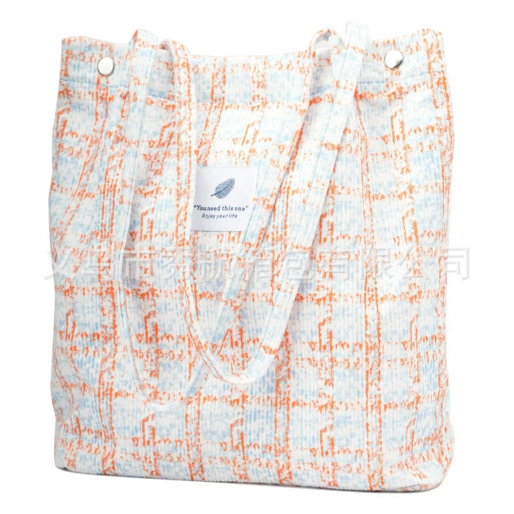 ins风简约灯芯绒帆布包双肩带帆布袋旅行外出收纳包女包单肩包