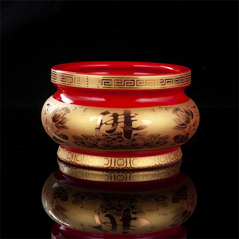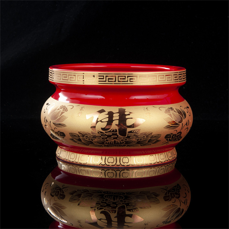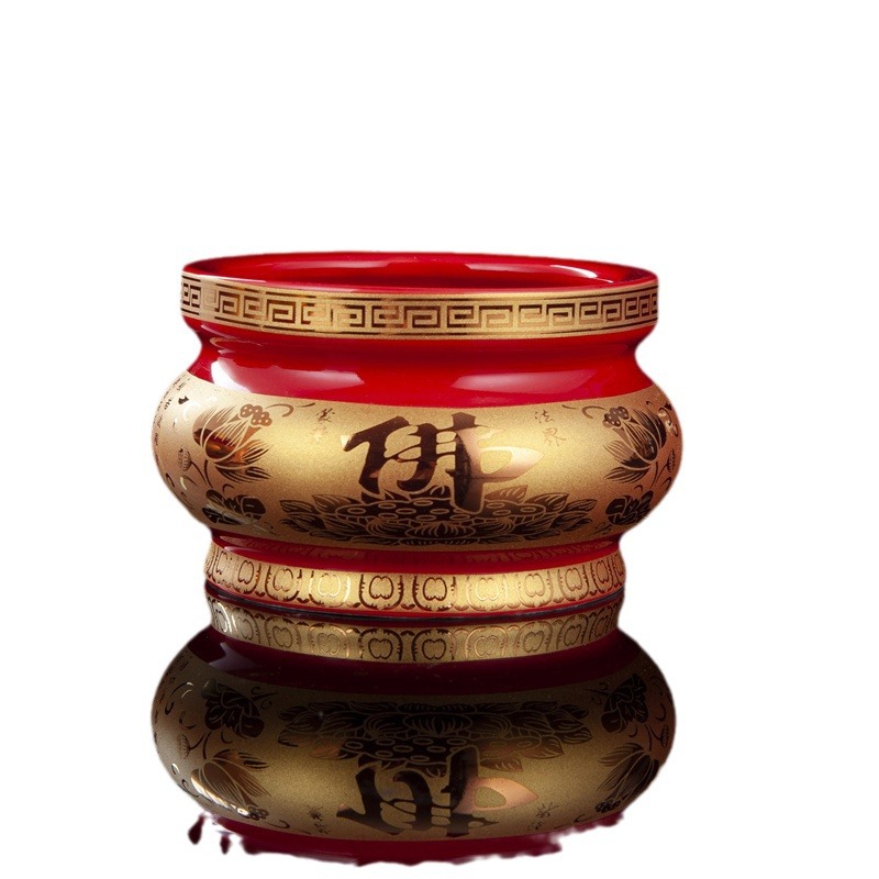 陶瓷香炉家用上香室内供奉供佛香薰炉佛具用品插香红金色佛檀香炉