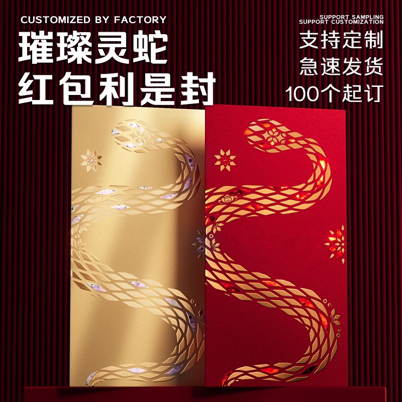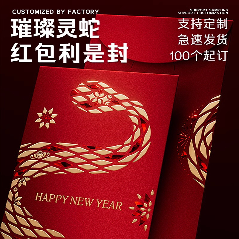 新款蛇年红包定制春节红包企业logo利是封高档创意红包定制烫金