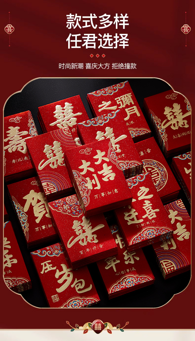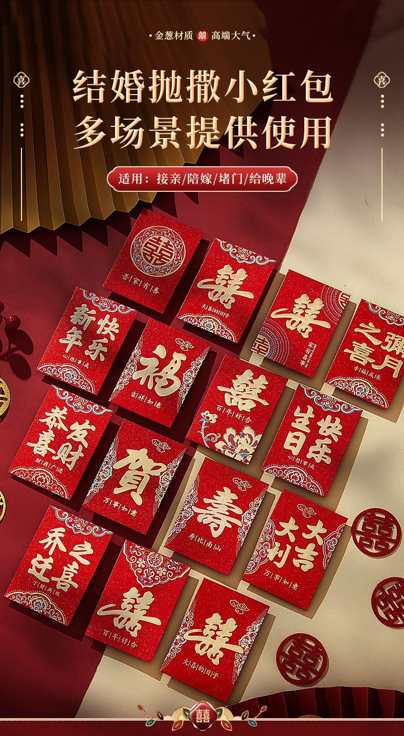 迷你小红包磨砂结婚塞门硬卡纸红包袋财字生日福寿喜字抛洒利是封