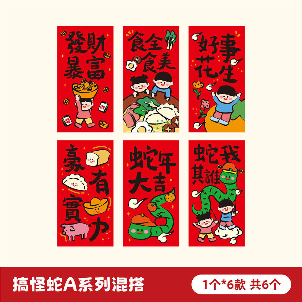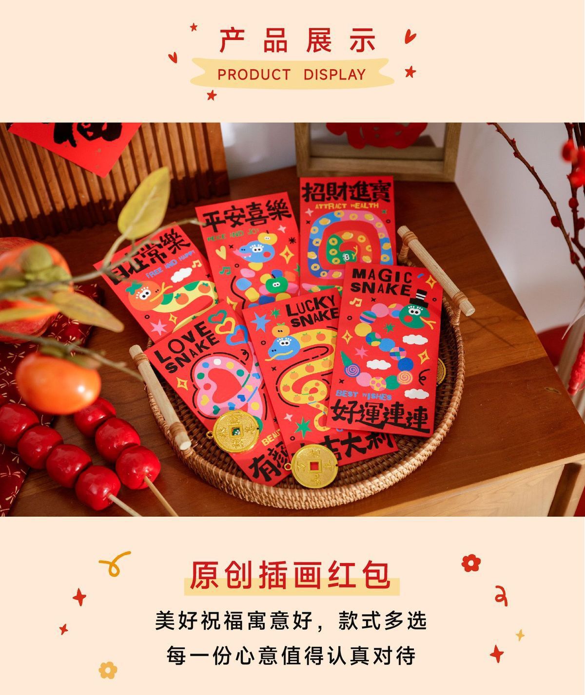 蛇年红包卡通新年可爱利是封过年压岁礼包儿童个性创意红色喜包