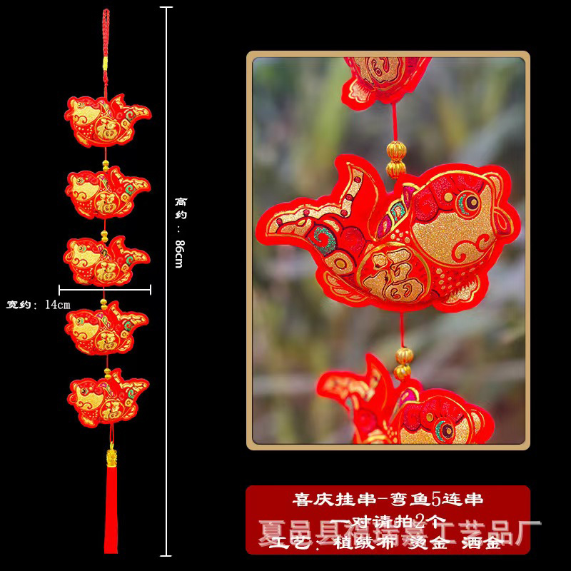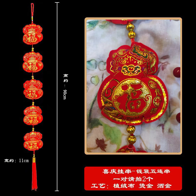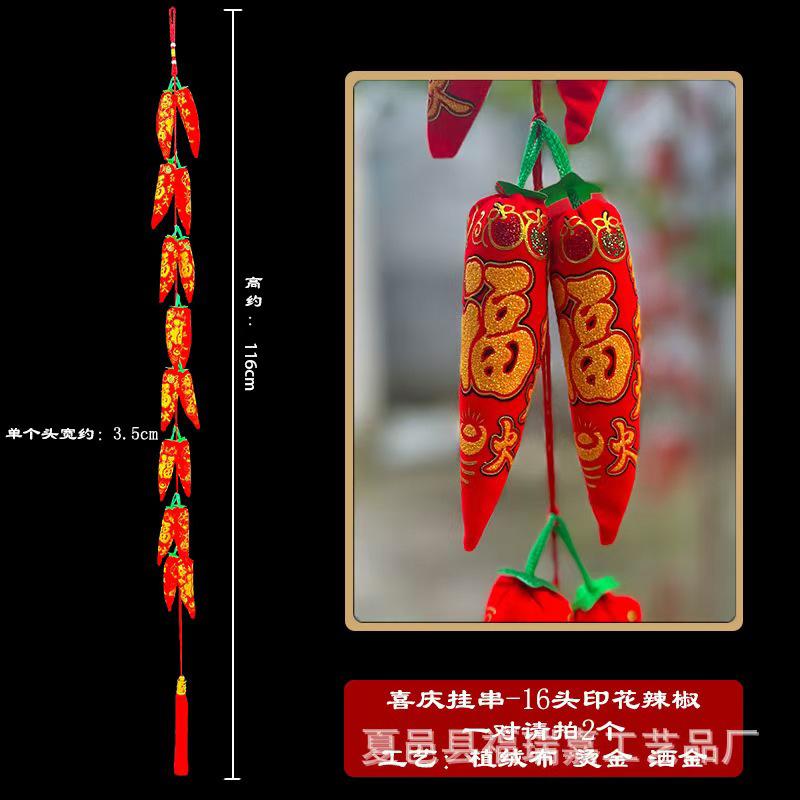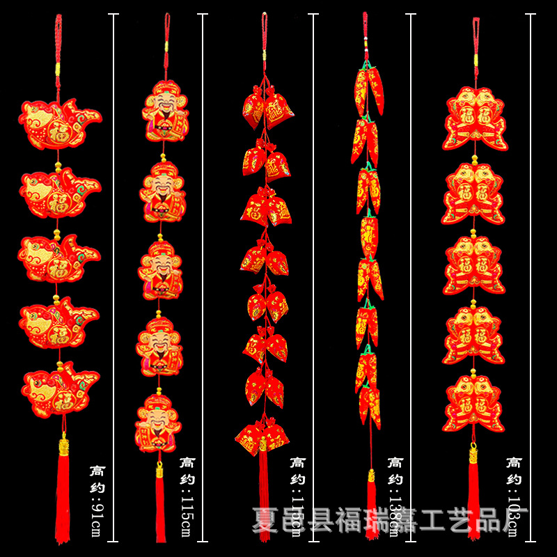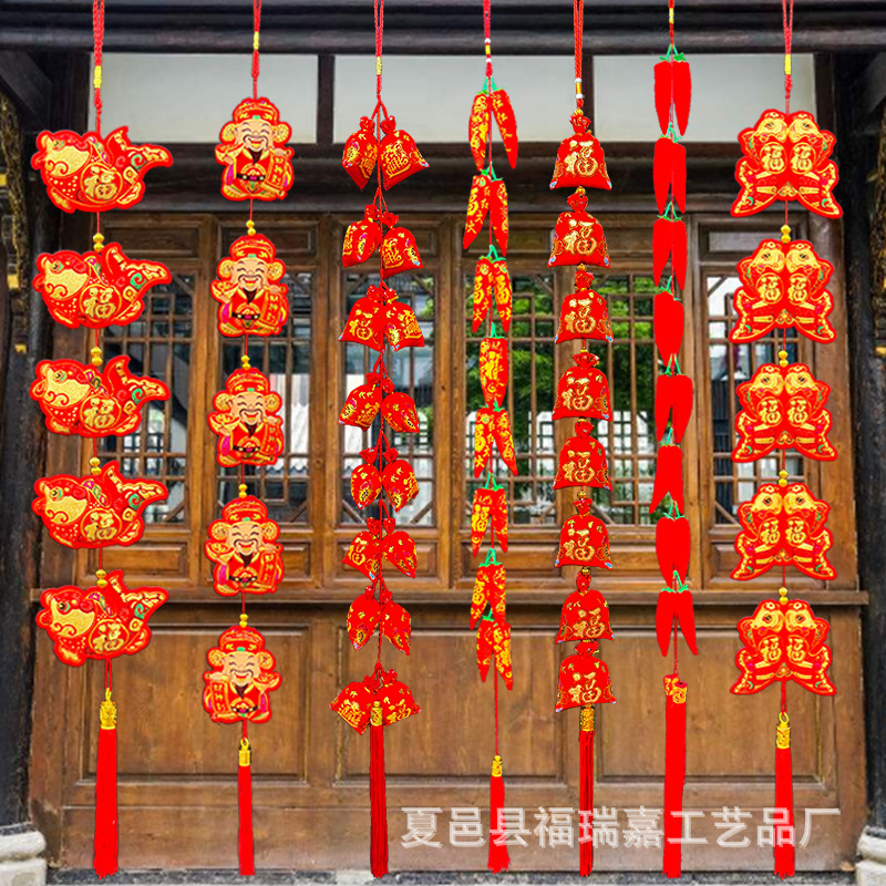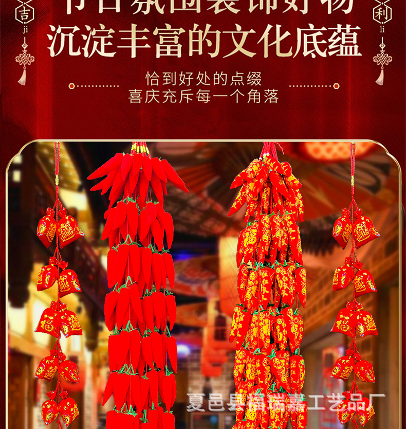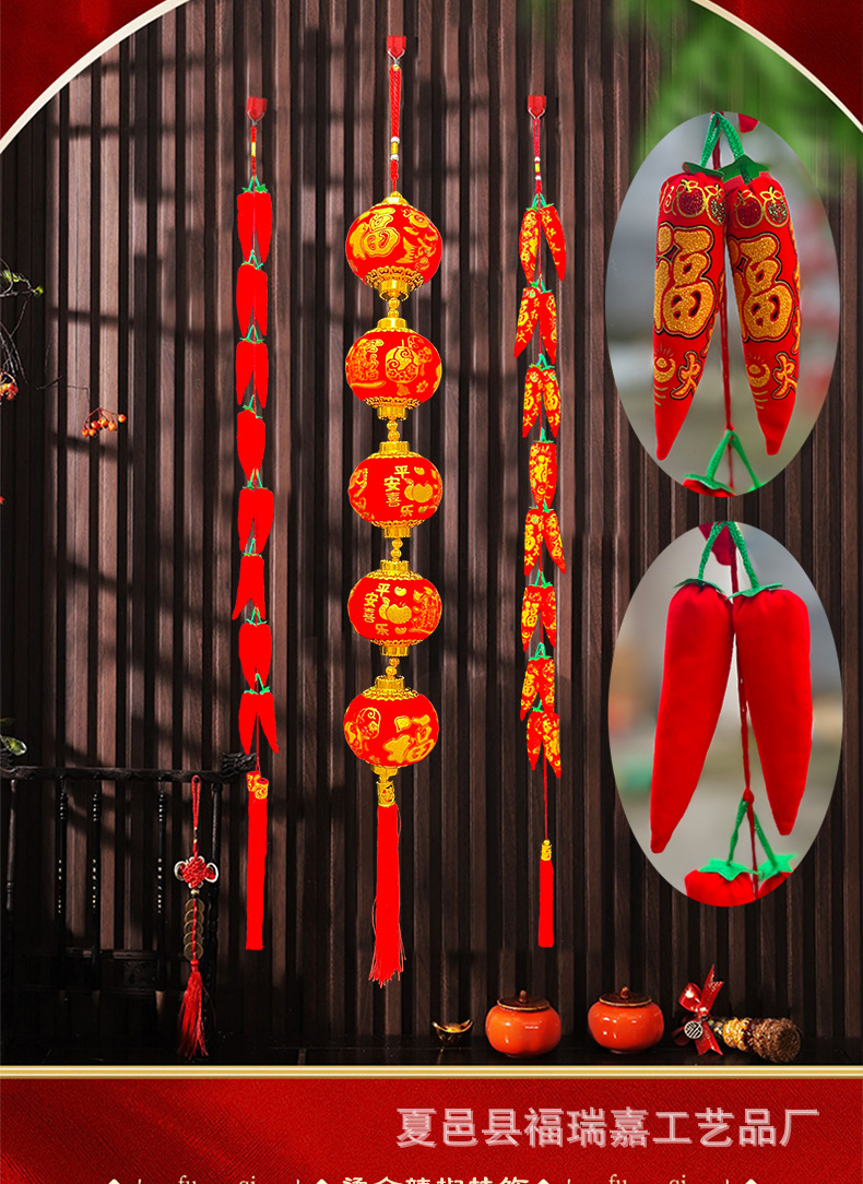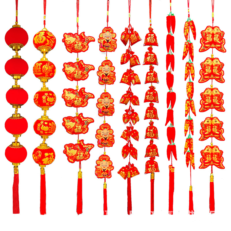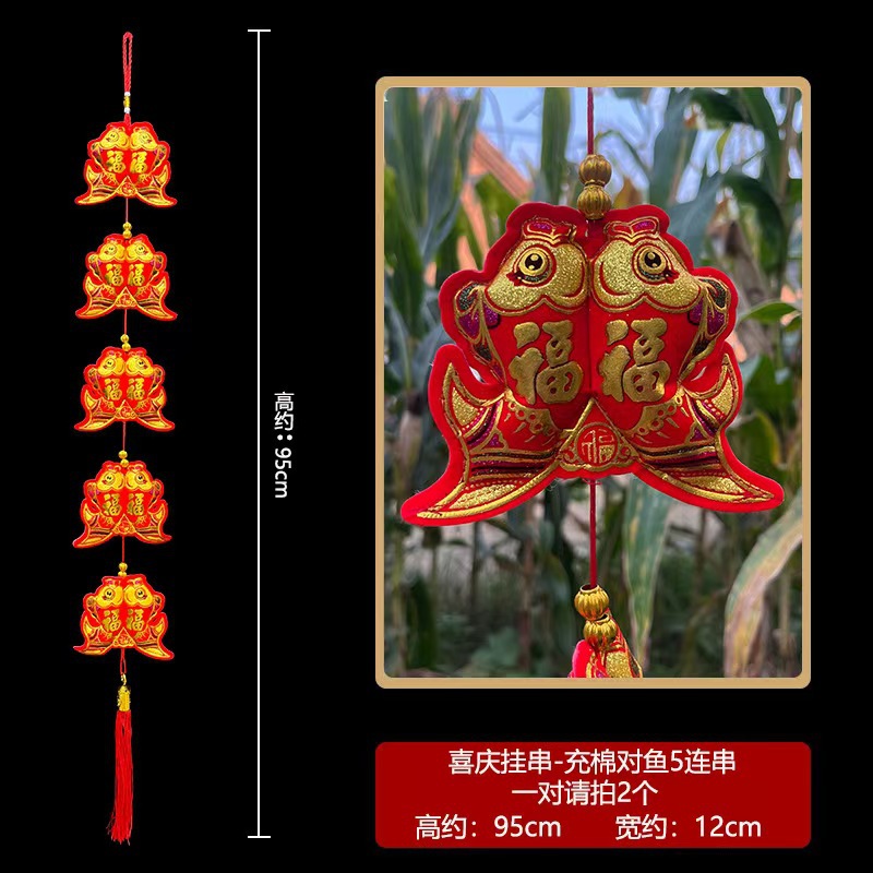 春节用品年货装饰过年挂饰新年挂件大红辣椒鞭炮串鱼串福袋灯笼串