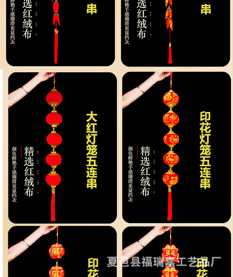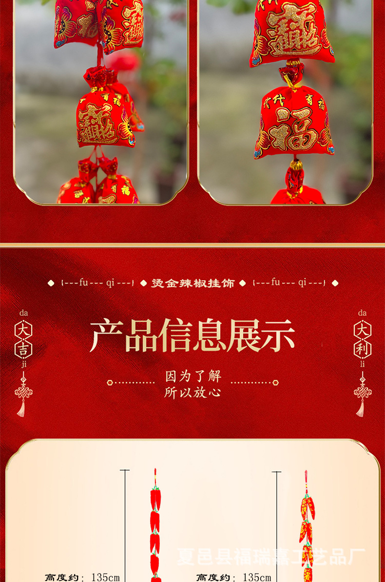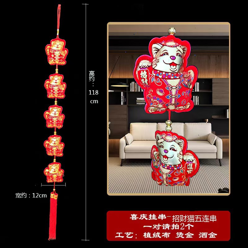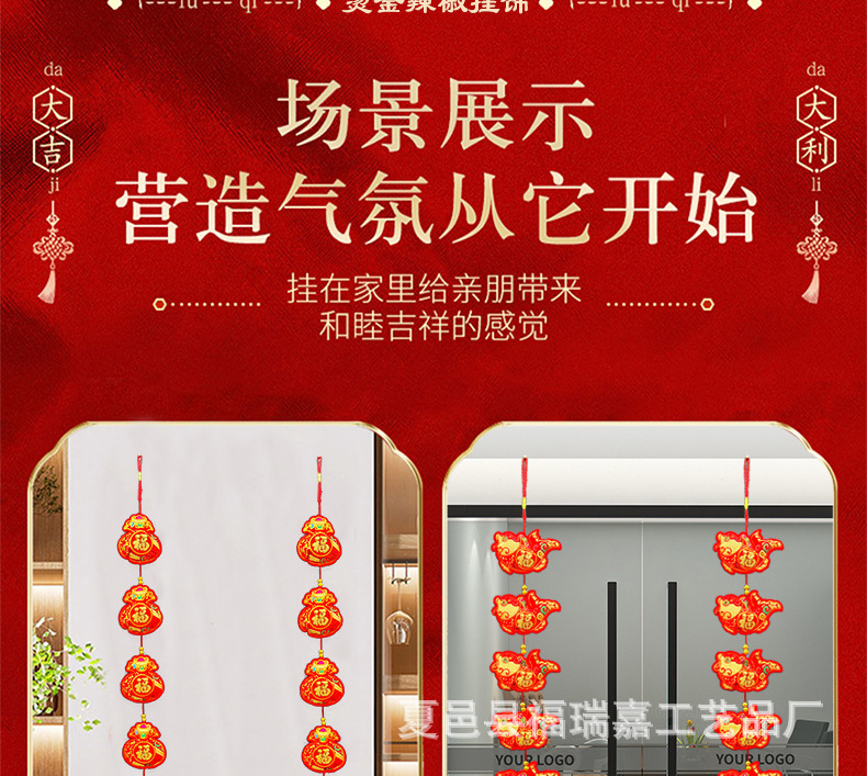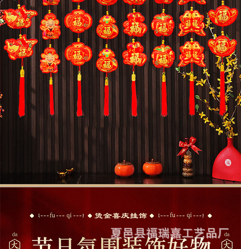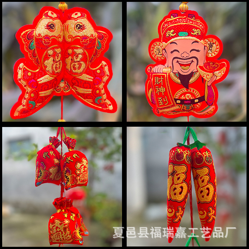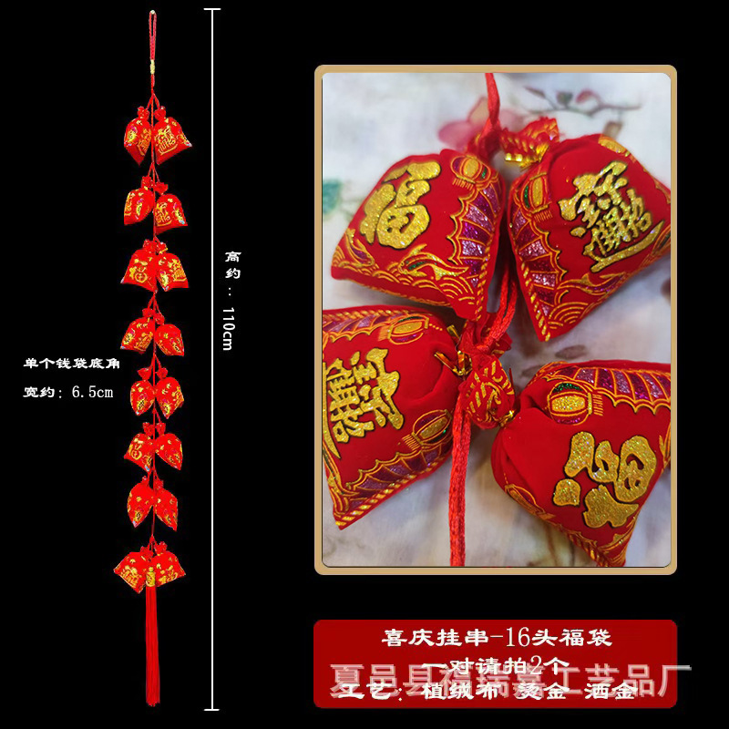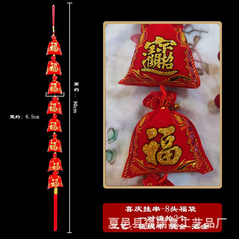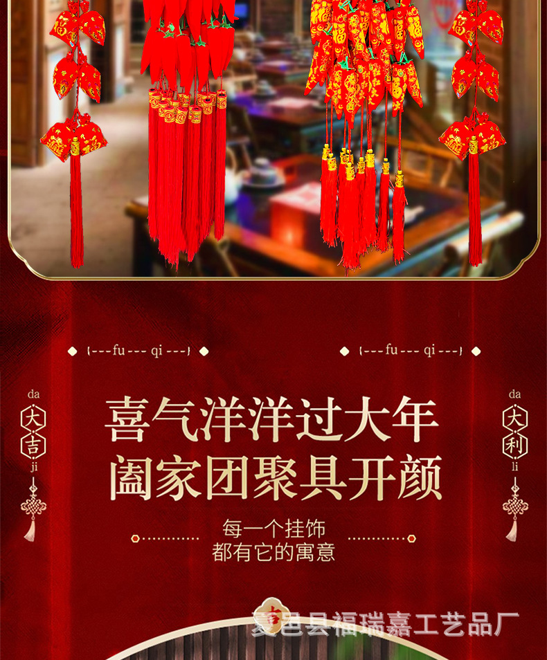 春节用品年货装饰过年挂饰新年挂件大红辣椒鞭炮串鱼串福袋灯笼串