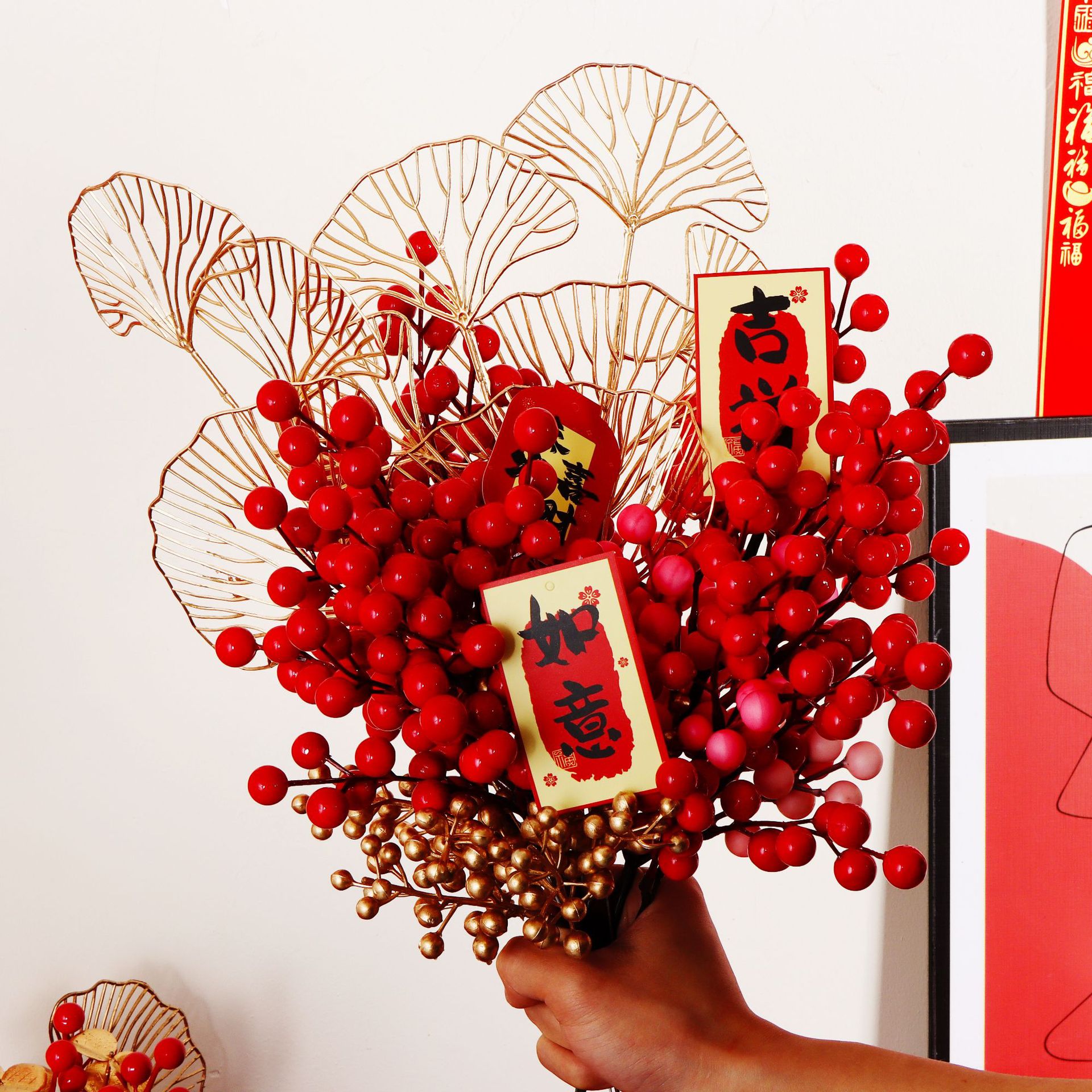新年挂件春节楼梯扶手装饰家居红果喜庆挂饰结婚过年蛇年红果藤条