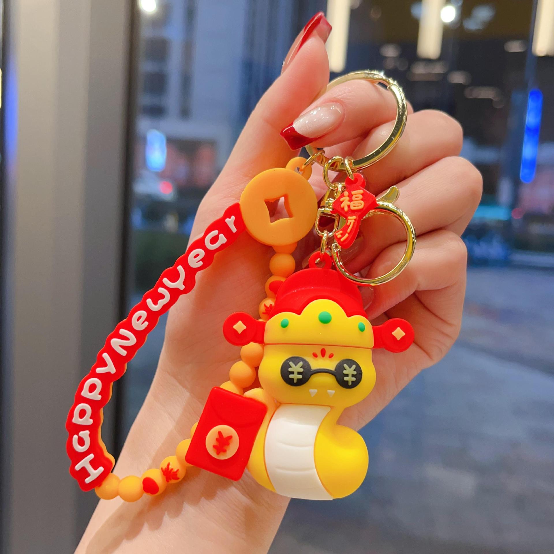 卡通蛇年钥匙扣醒狮财神挂件国潮礼物情侣包包挂饰抓娃机礼品批发