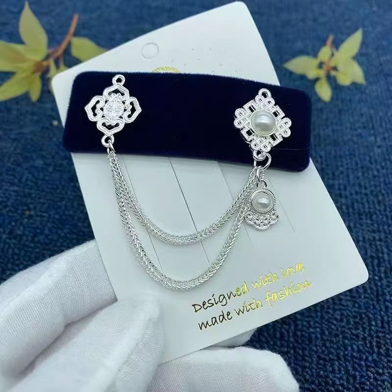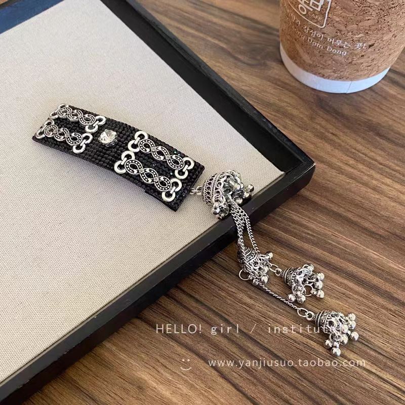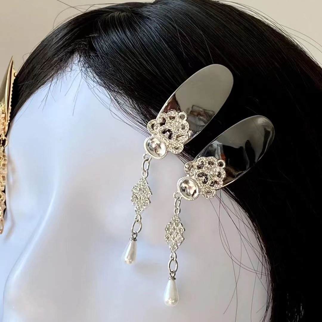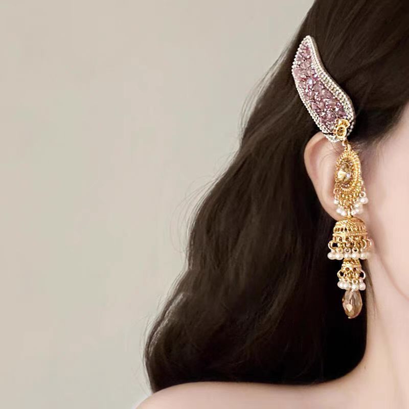新中式粉钻流苏发夹民族风重工精致高颜值刘海夹发饰配饰2024新潮
