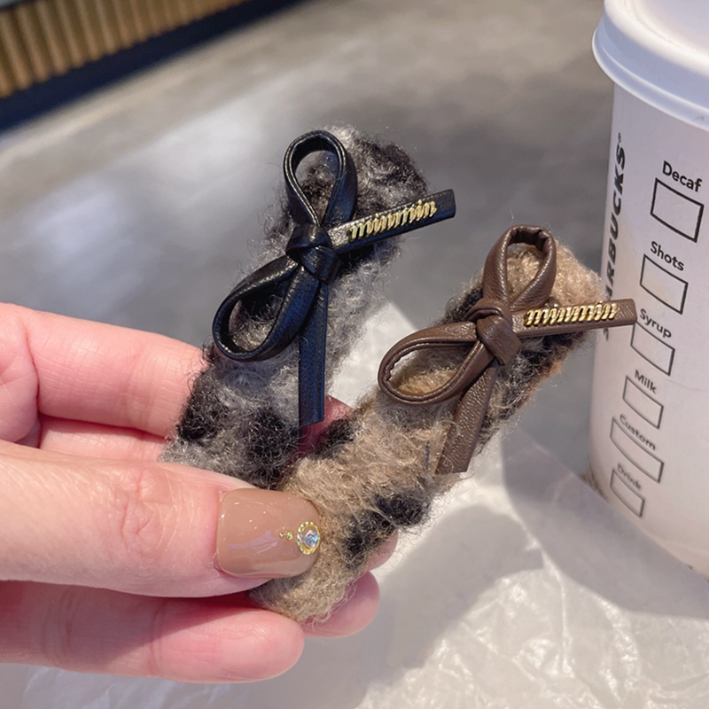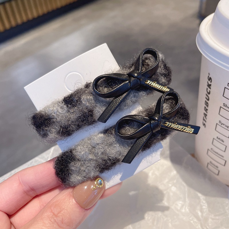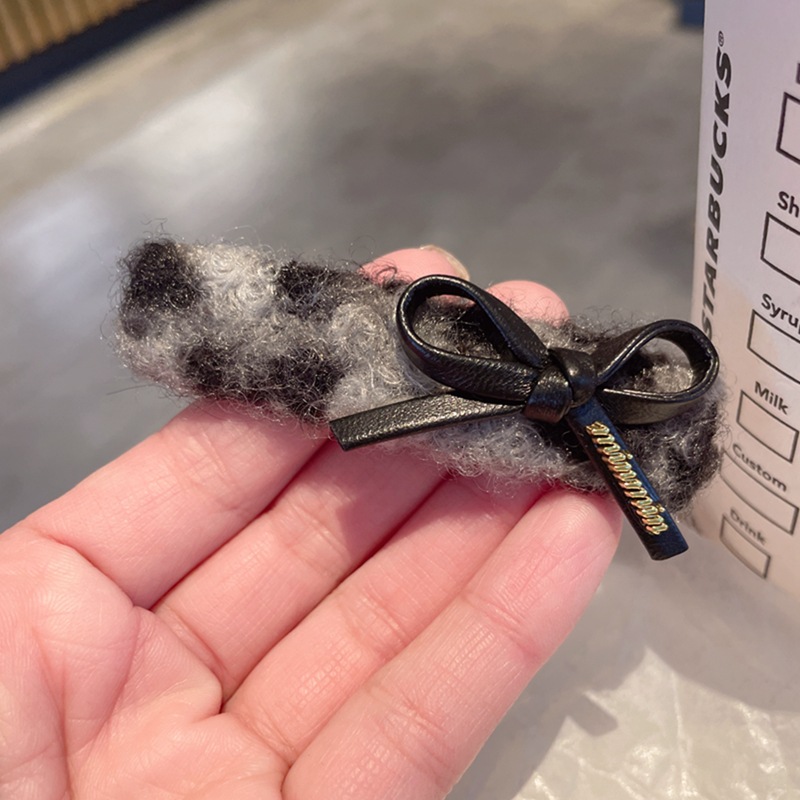 仿羊羔毛豹纹BB夹发夹古金色字母蝴蝶结刘海夹少女发卡发饰