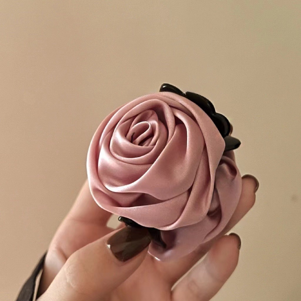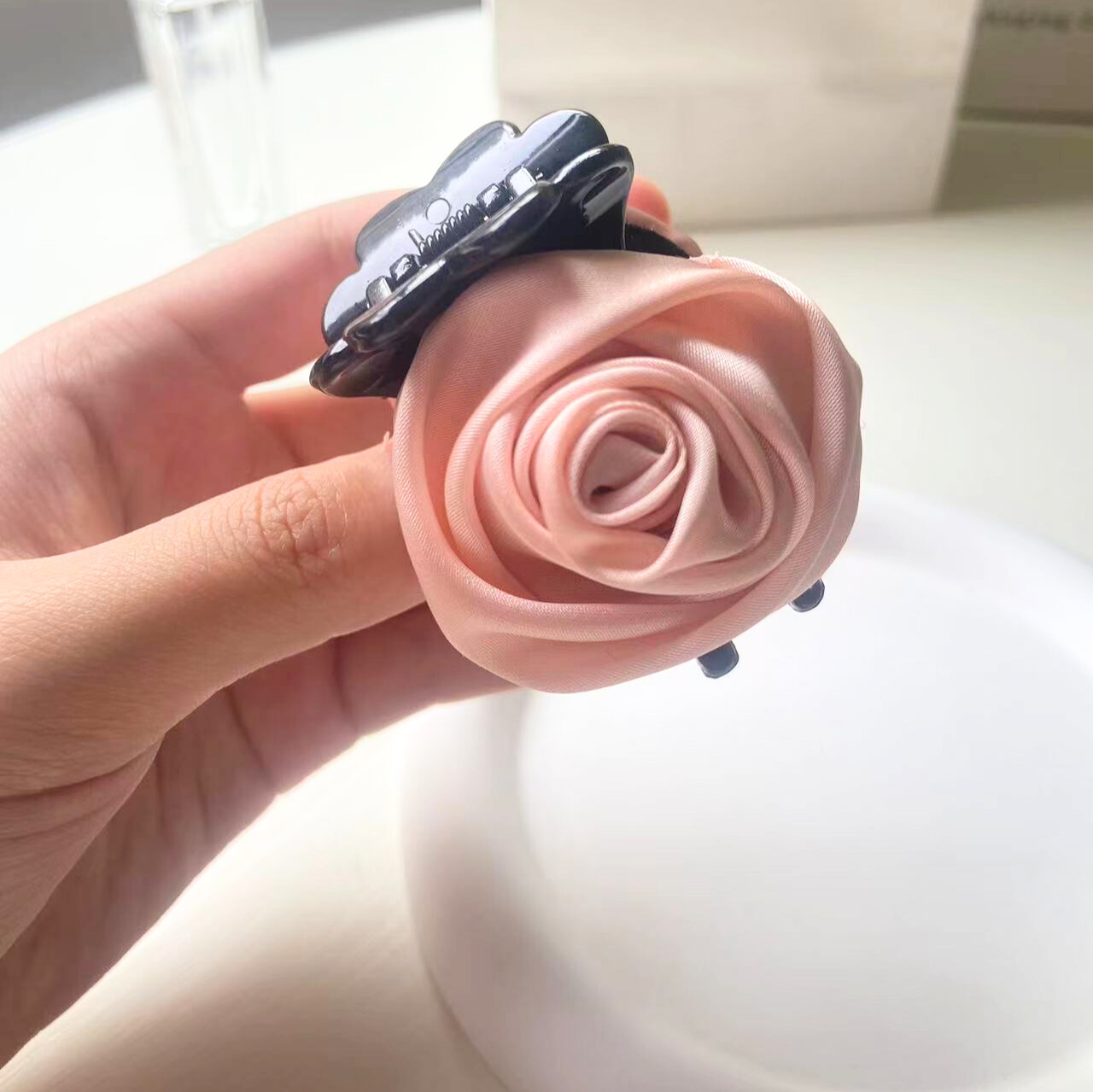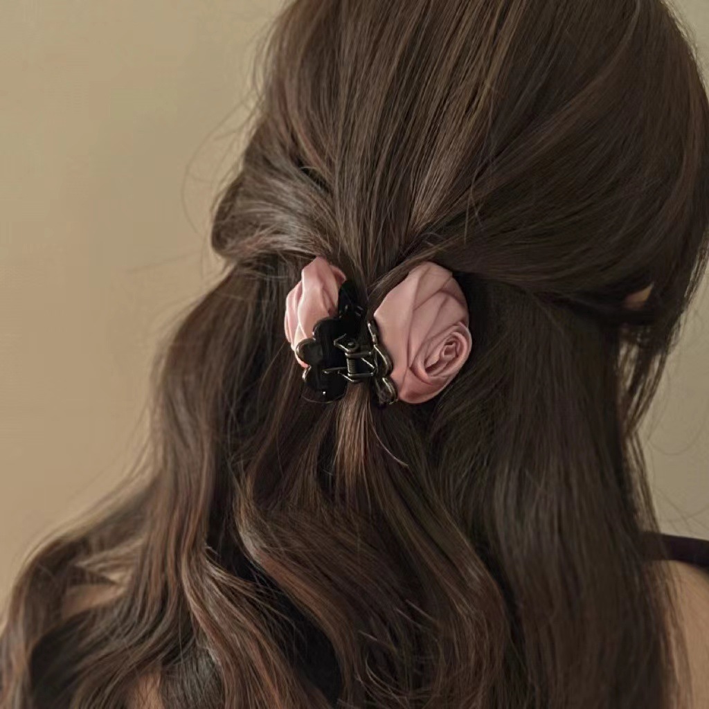 红色玫瑰花发夹女法式后脑勺盘发轻奢抓夹高级感简约百搭头饰发饰