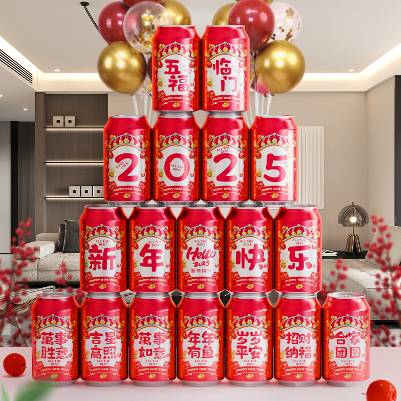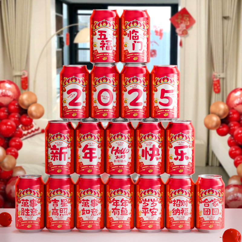 蛇年可乐贴纸2025新款春节创意饮料摆件新年布置装饰过年仪式用品