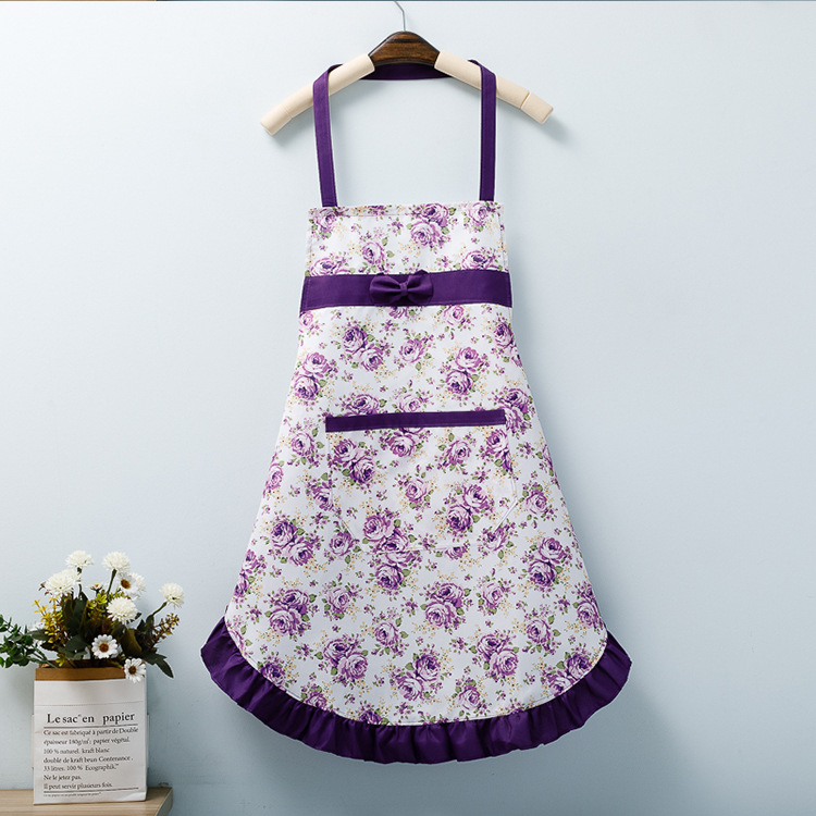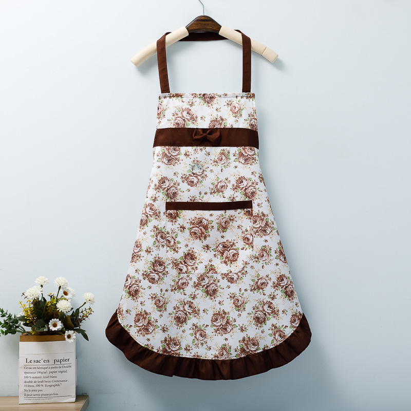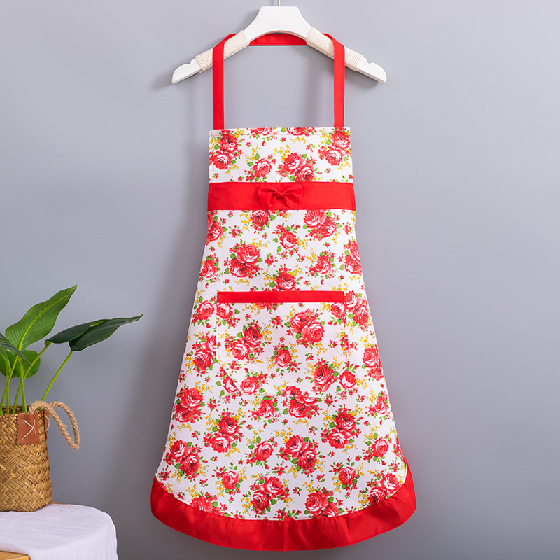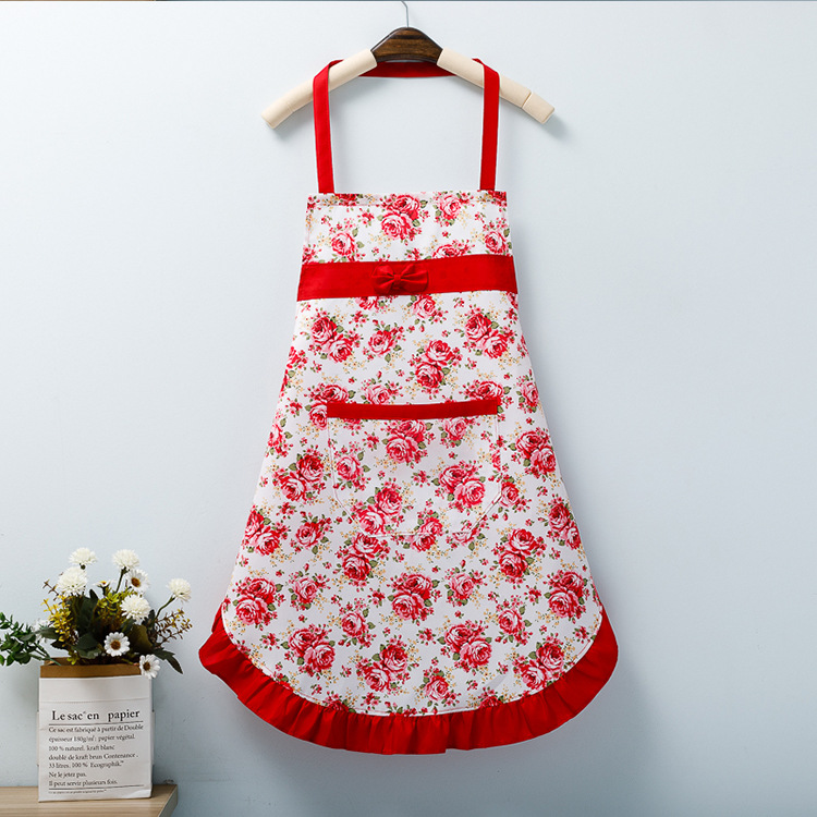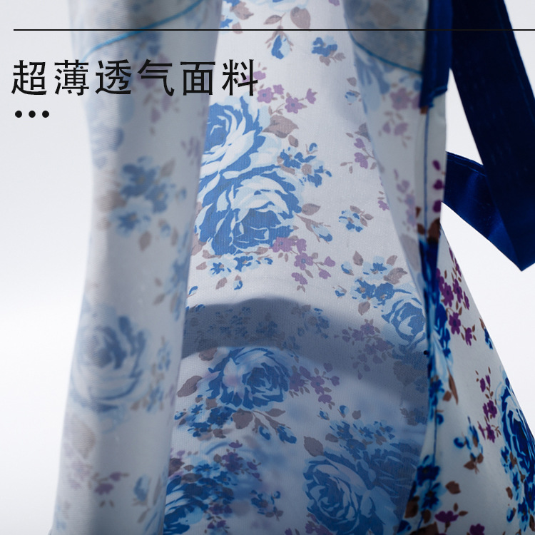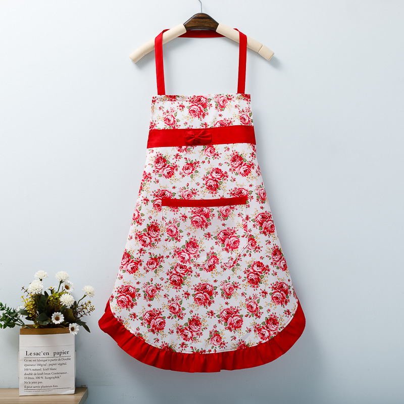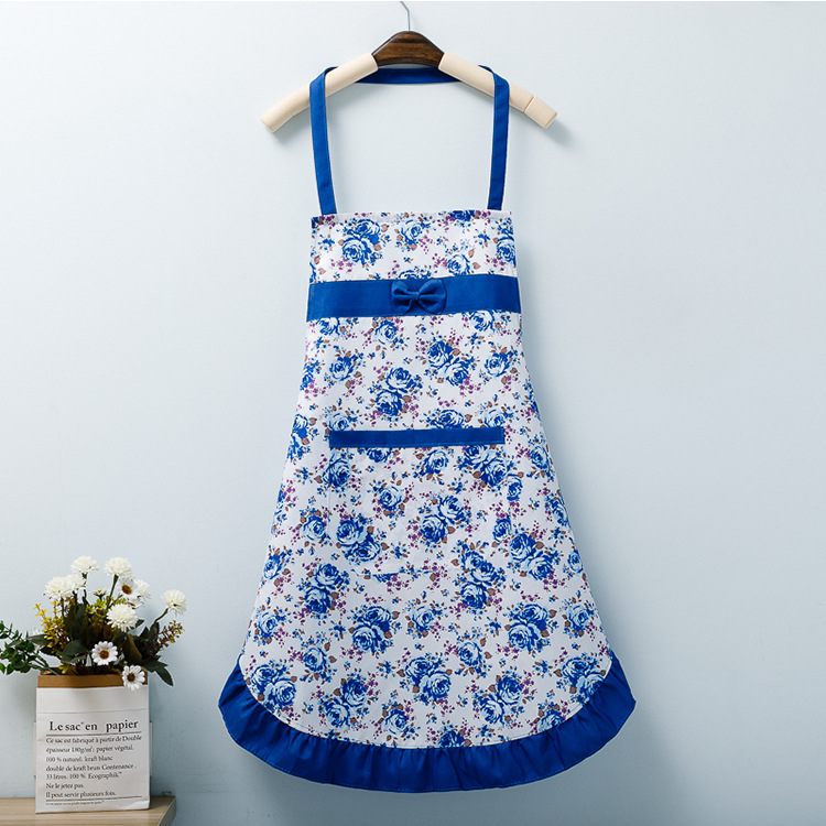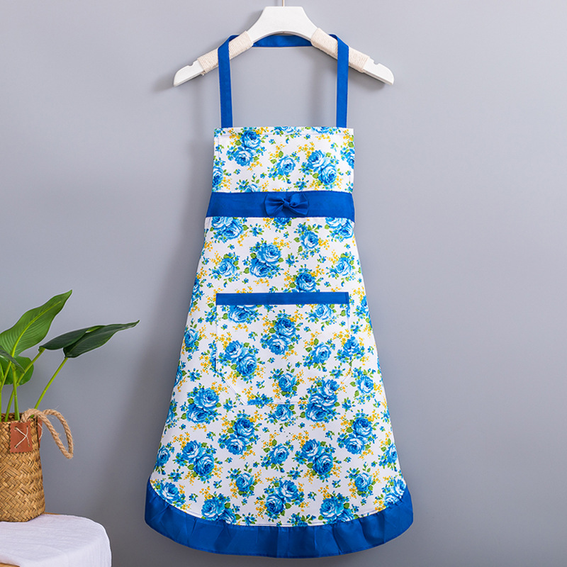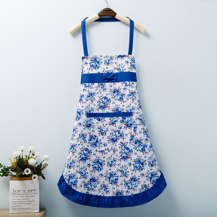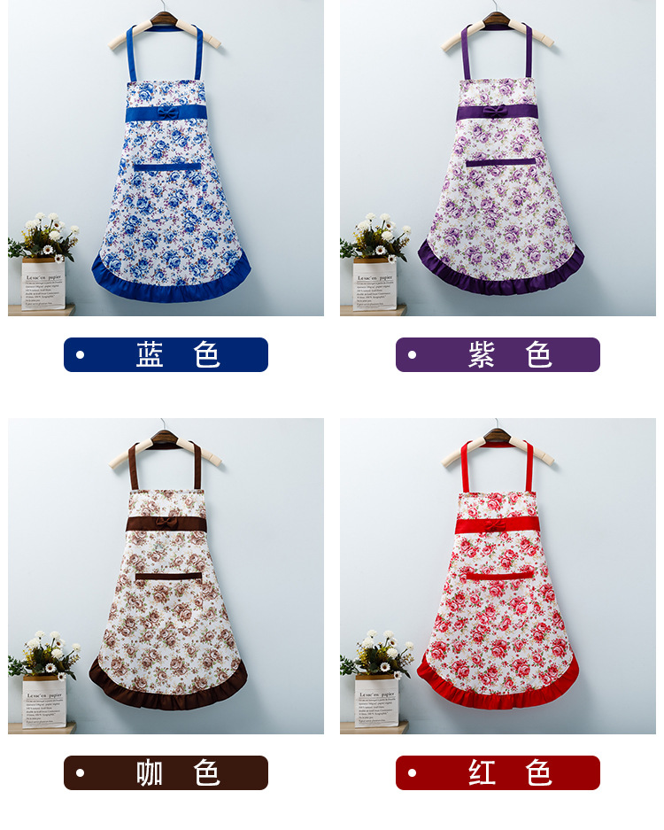 夏季厨房家用围裙透气防油布料批发女士韩式碎花围腰套装批发XMG0