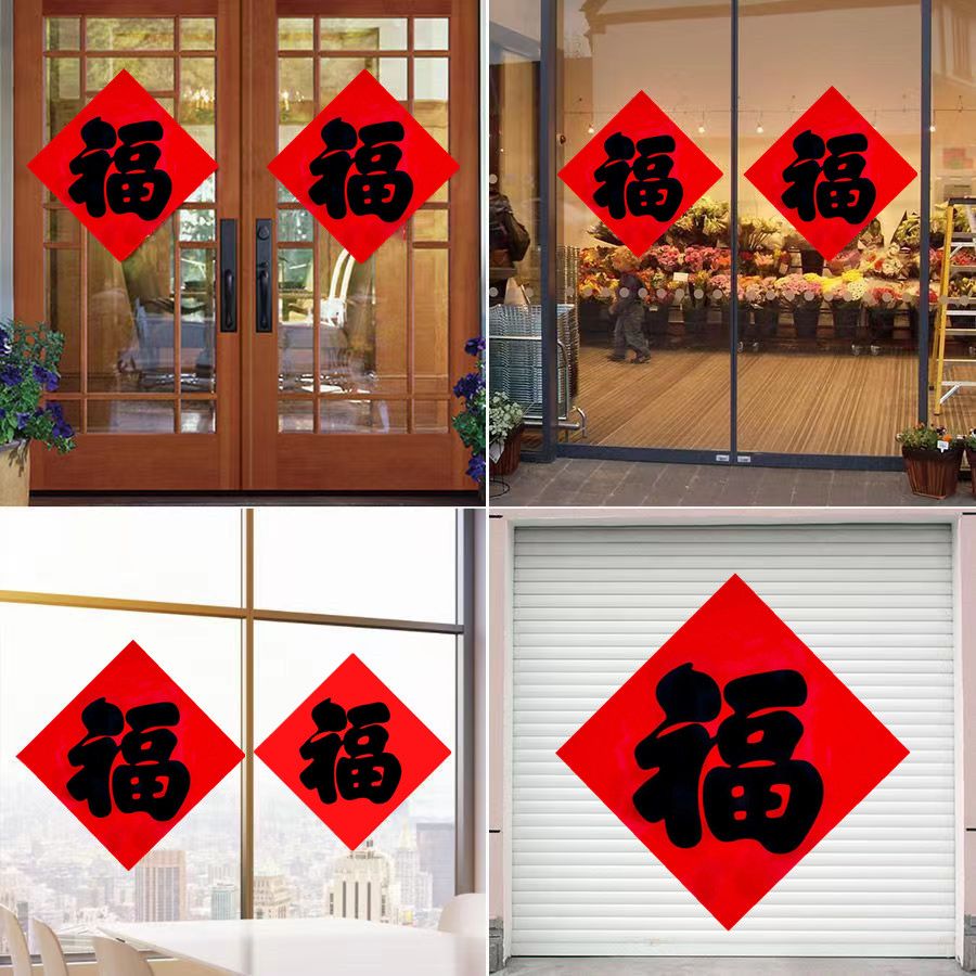 新款春节黑字福字传统书法铜版福字门贴墙贴红纸黑字福字厂家直销
