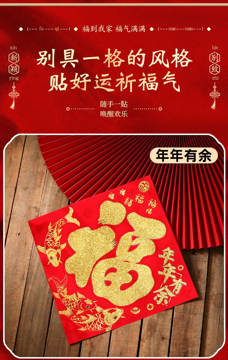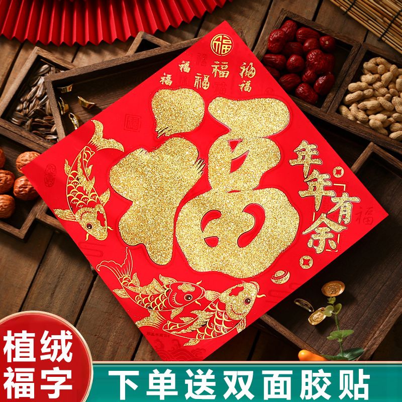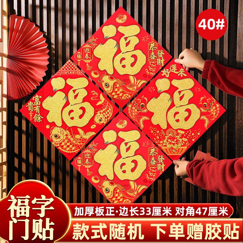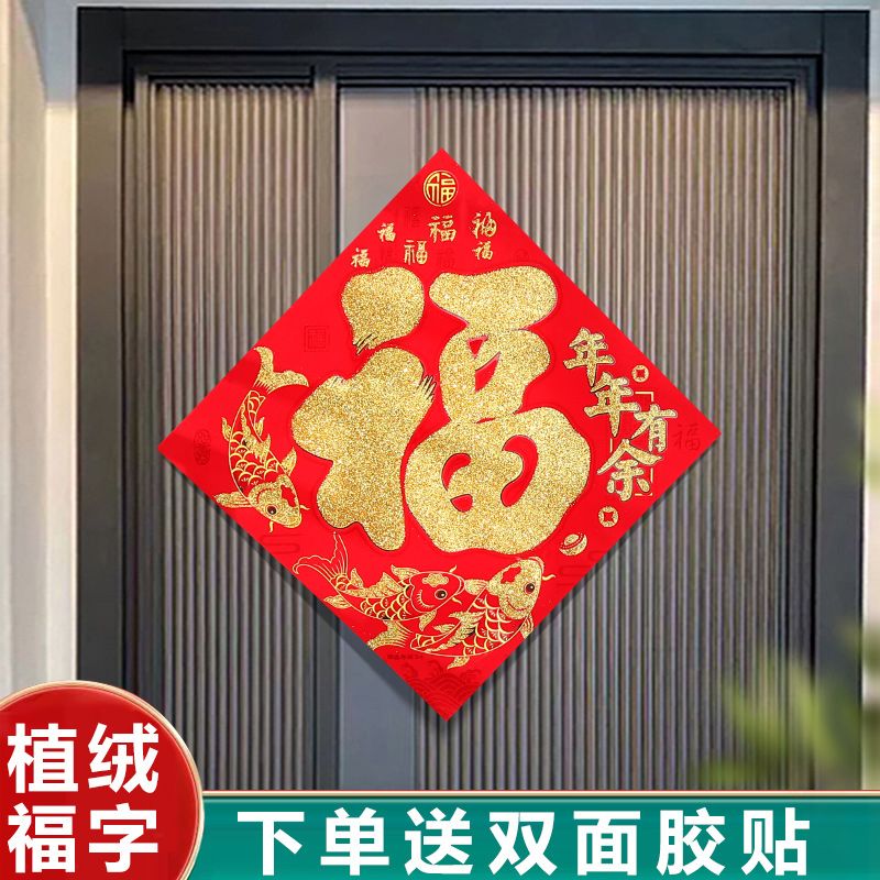 2024龙年新年新款高档立体植绒金粉福字门贴纸批发斗方大号入户门
