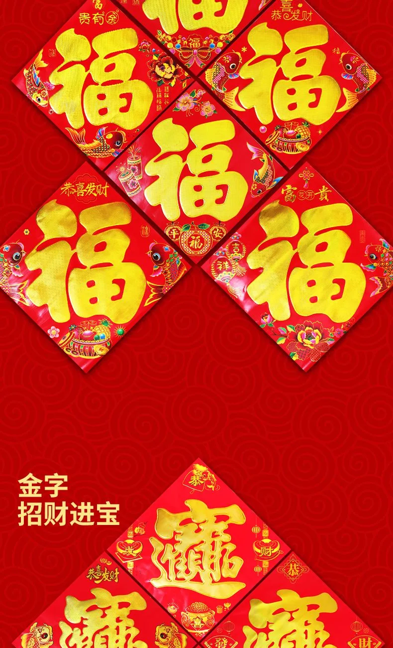 2025蛇年福字门贴招财进宝纸过年货春节新年装饰贴墙大号大门