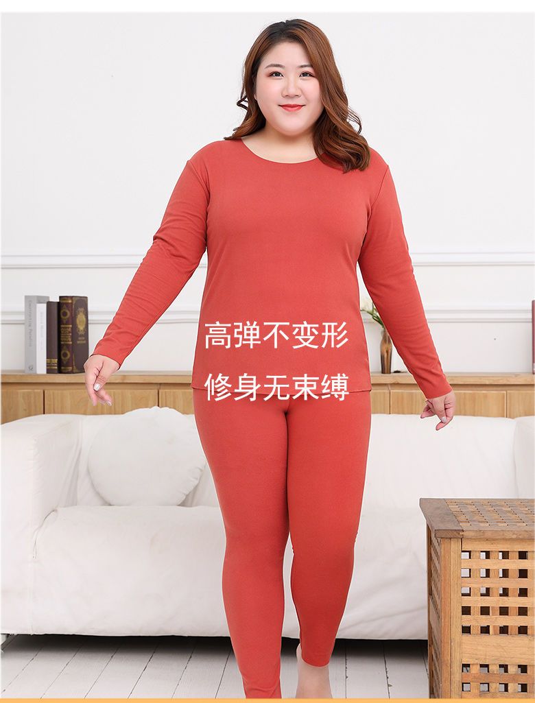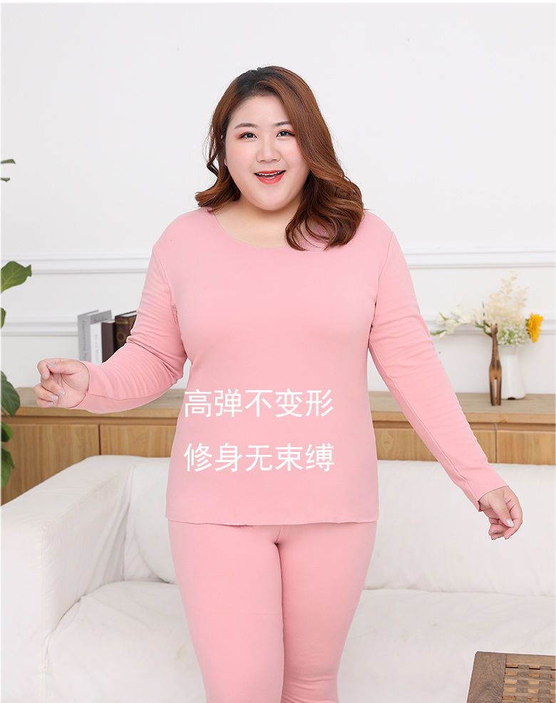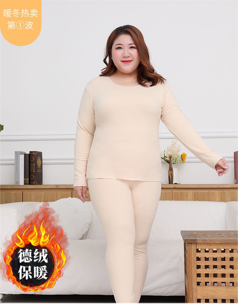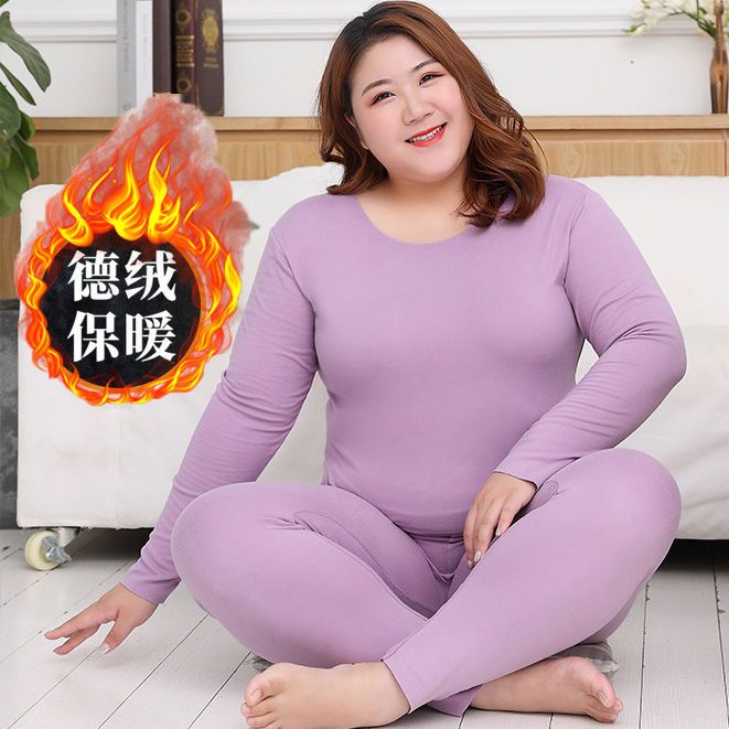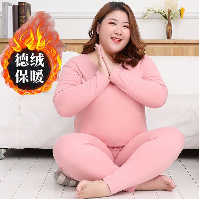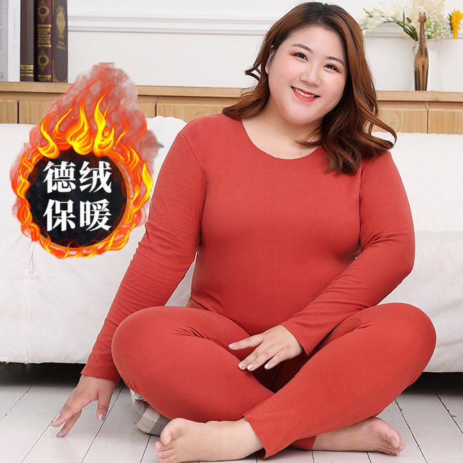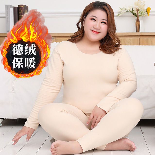 德绒保暖内衣女加肥加大码220斤无痕发热加绒加厚4xl套装秋衣秋裤