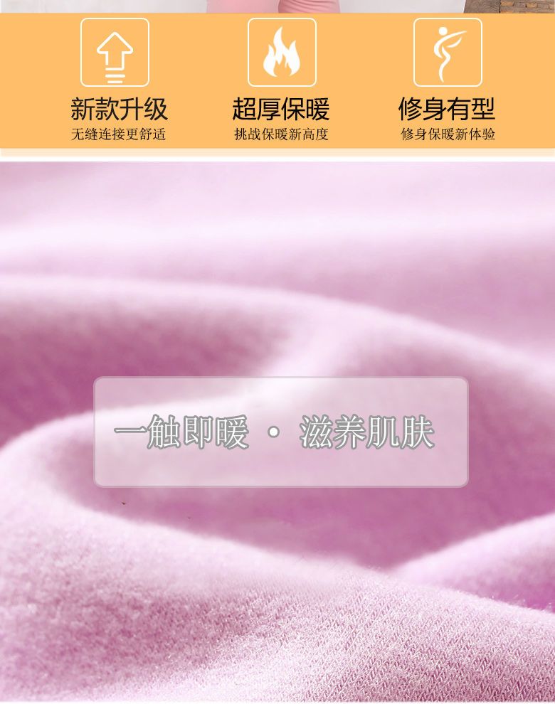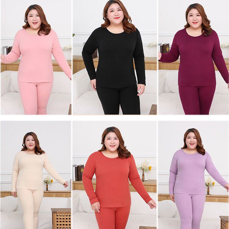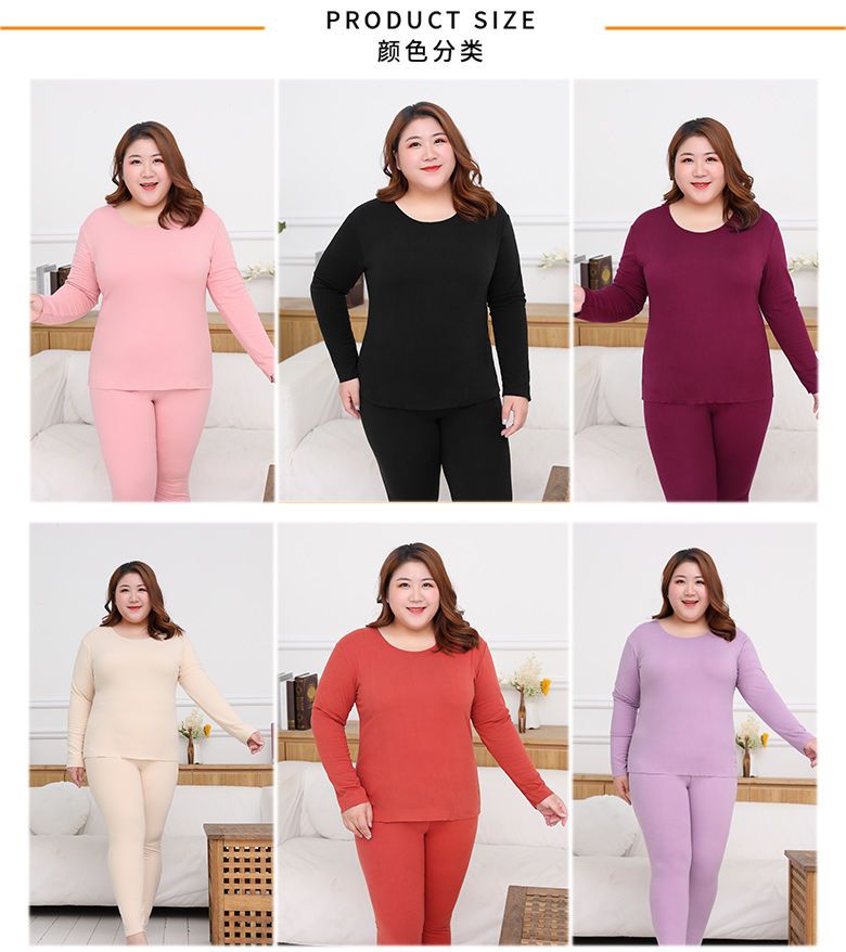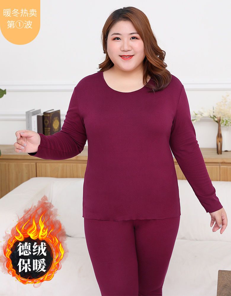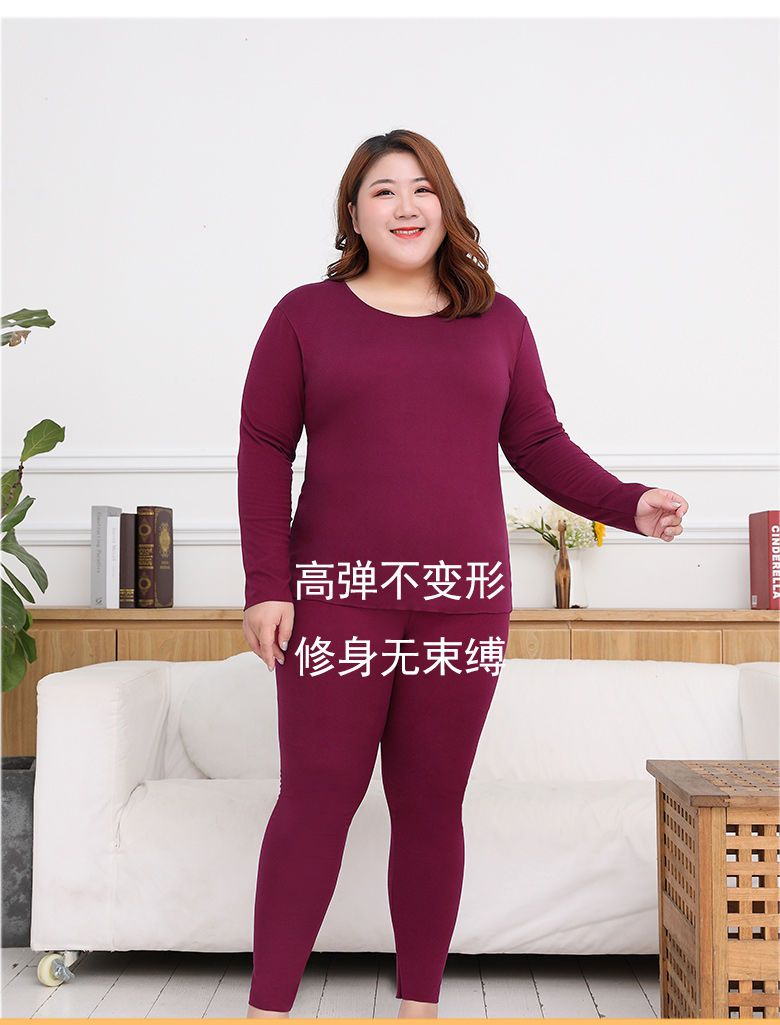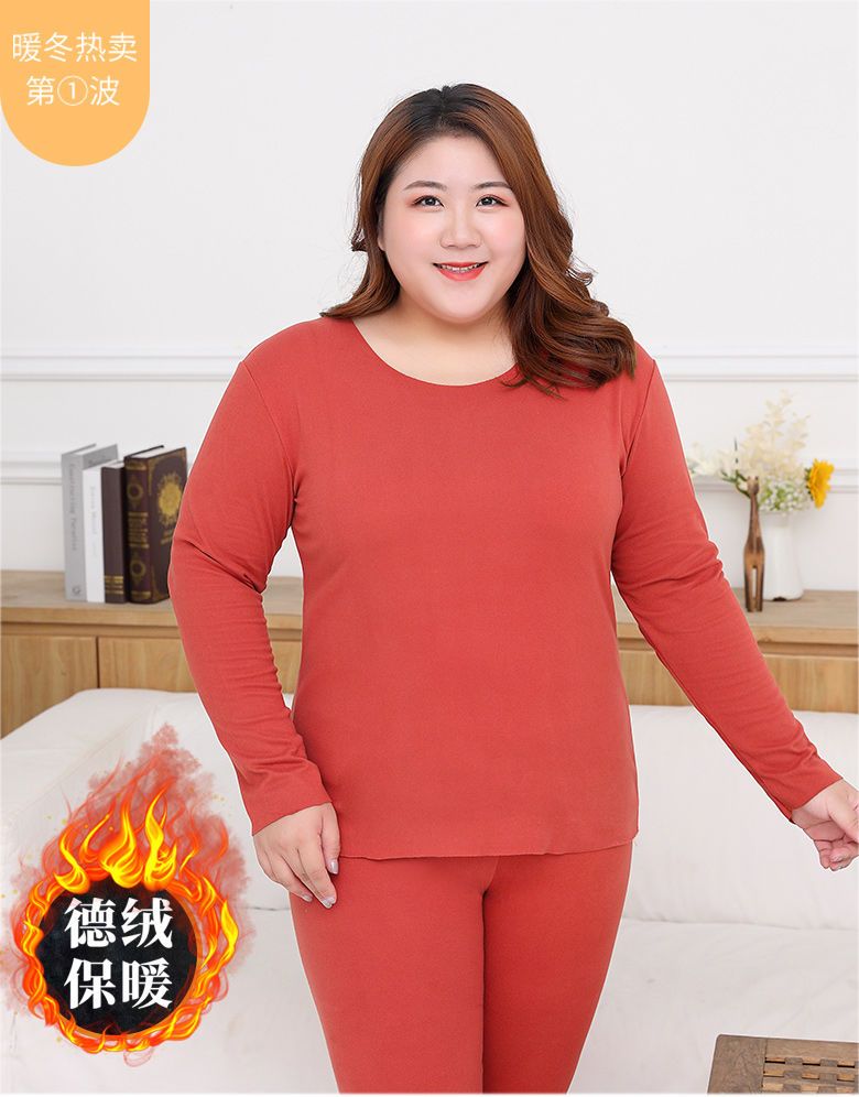 德绒保暖内衣女加肥加大码220斤无痕发热加绒加厚4xl套装秋衣秋裤