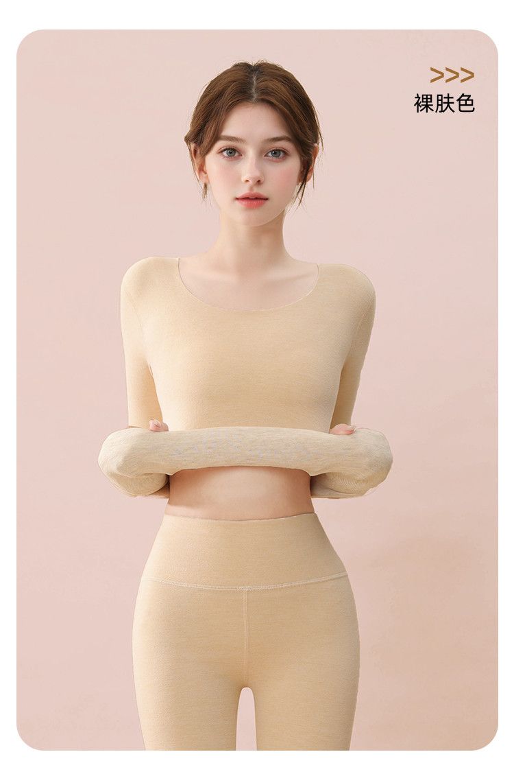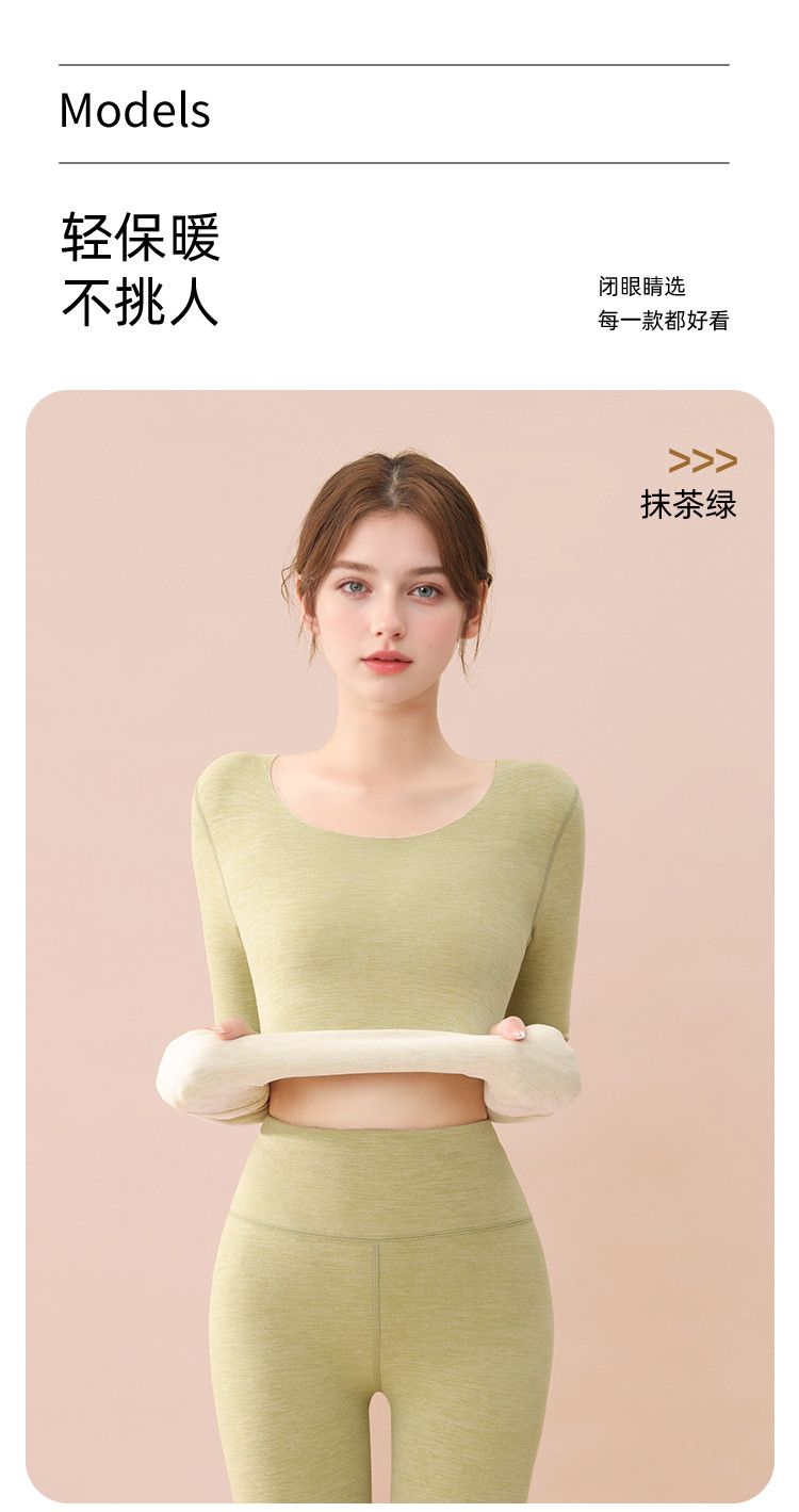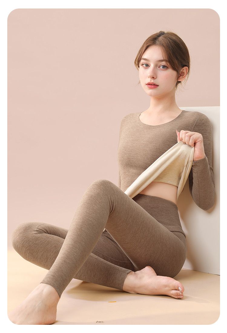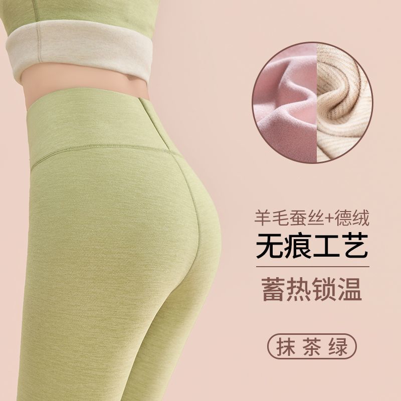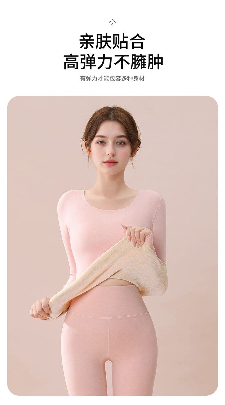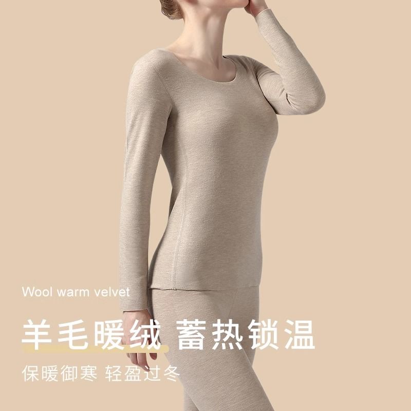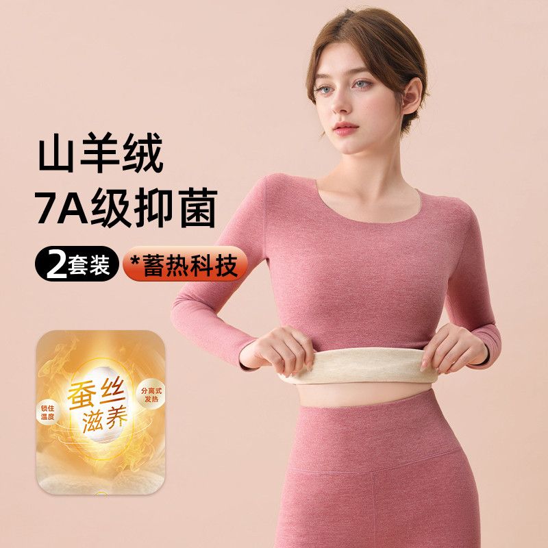 羊绒蚕丝德绒保暖内衣套装女士无痕发热加绒加厚打底秋衣秋裤冬季