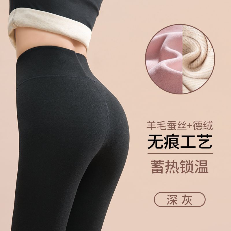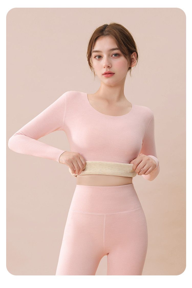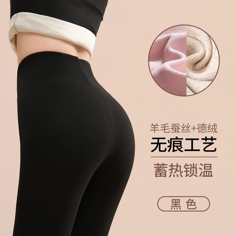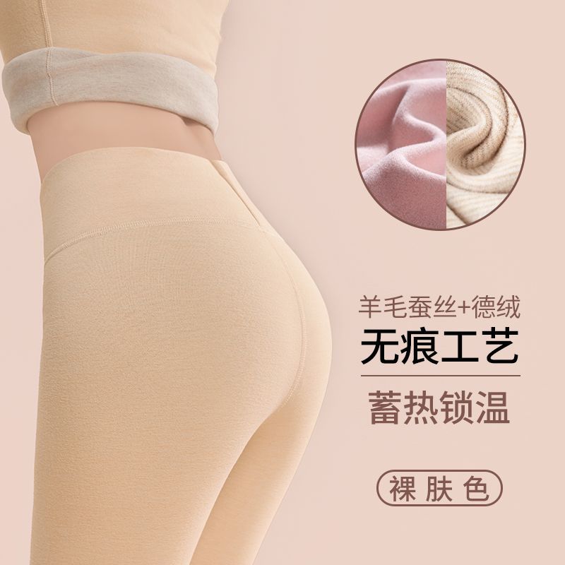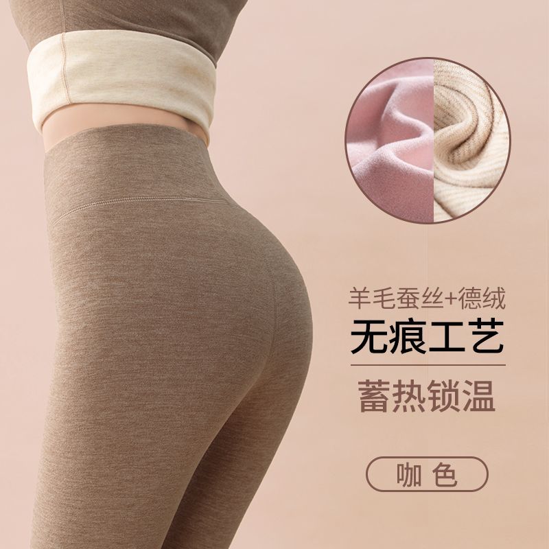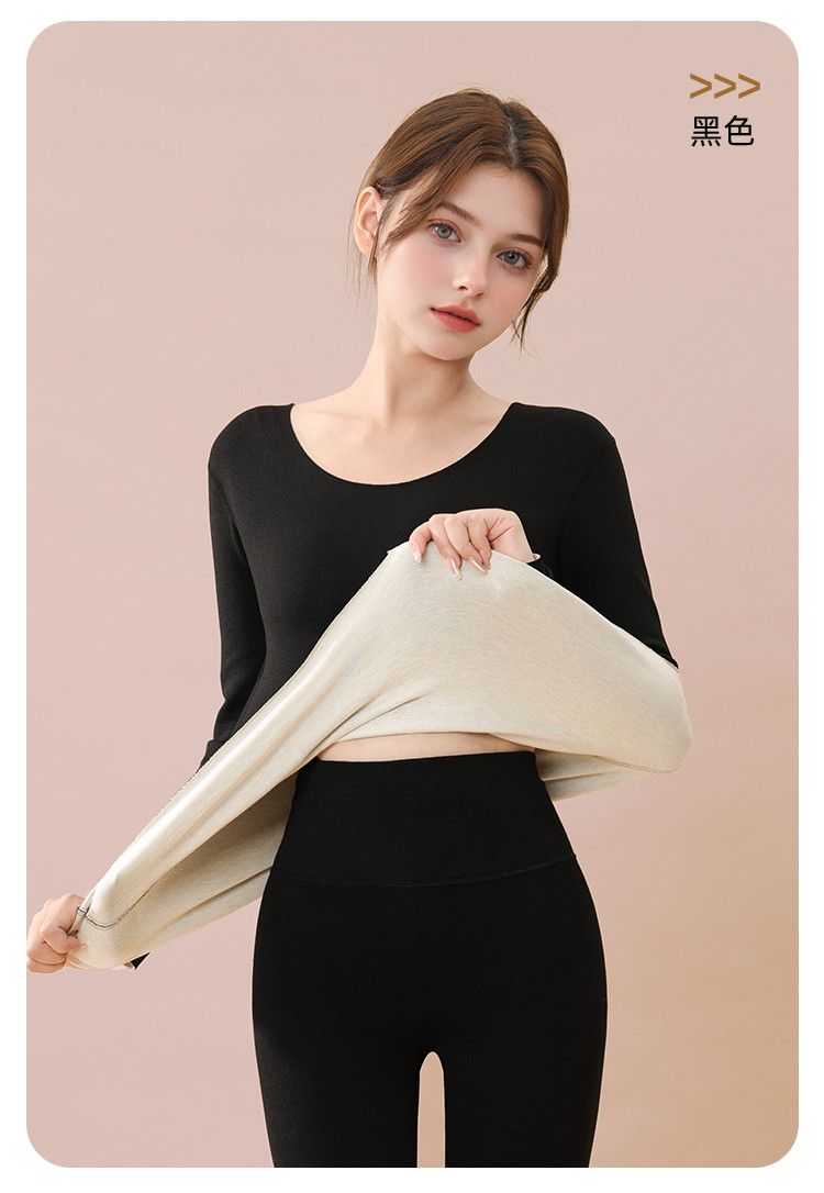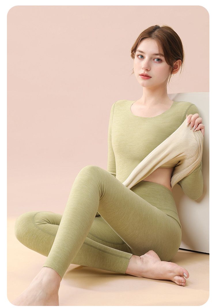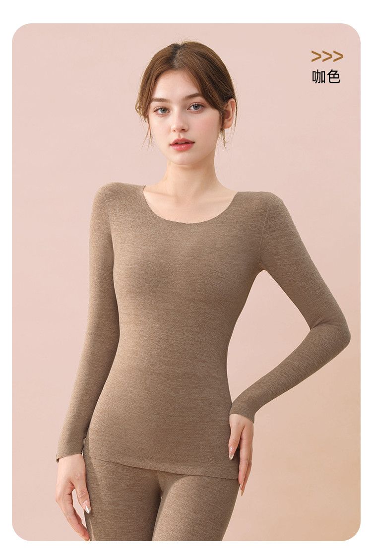 羊绒蚕丝德绒保暖内衣套装女士无痕发热加绒加厚打底秋衣秋裤冬季