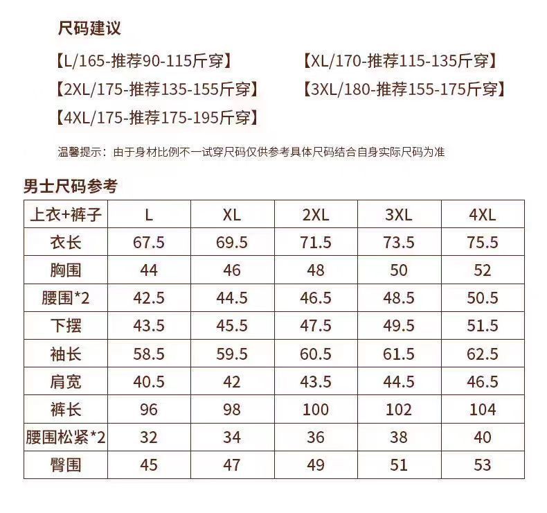 | 4xl [recommend 87.50 kg-97.50 kg]](4XL【推荐175-195斤】) | USD $18.49 | 999999 piece available |