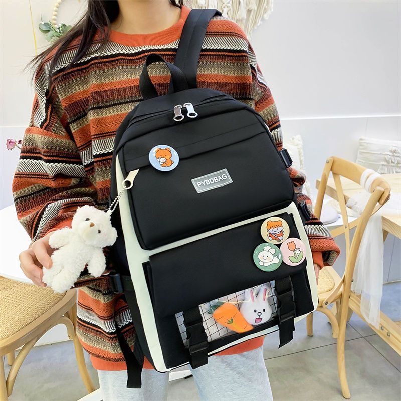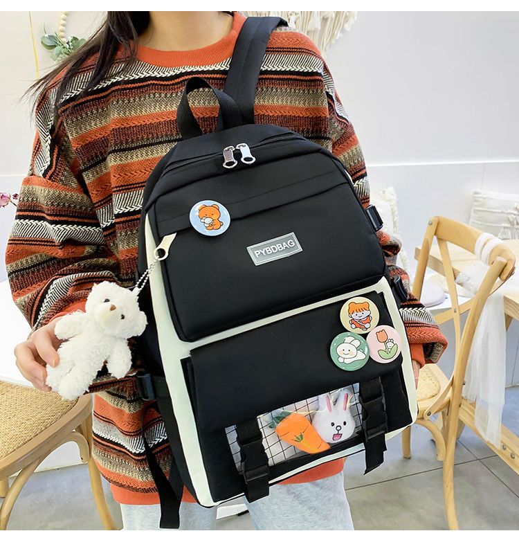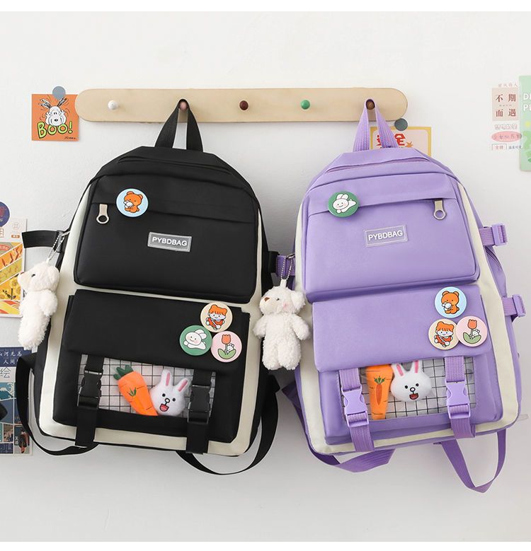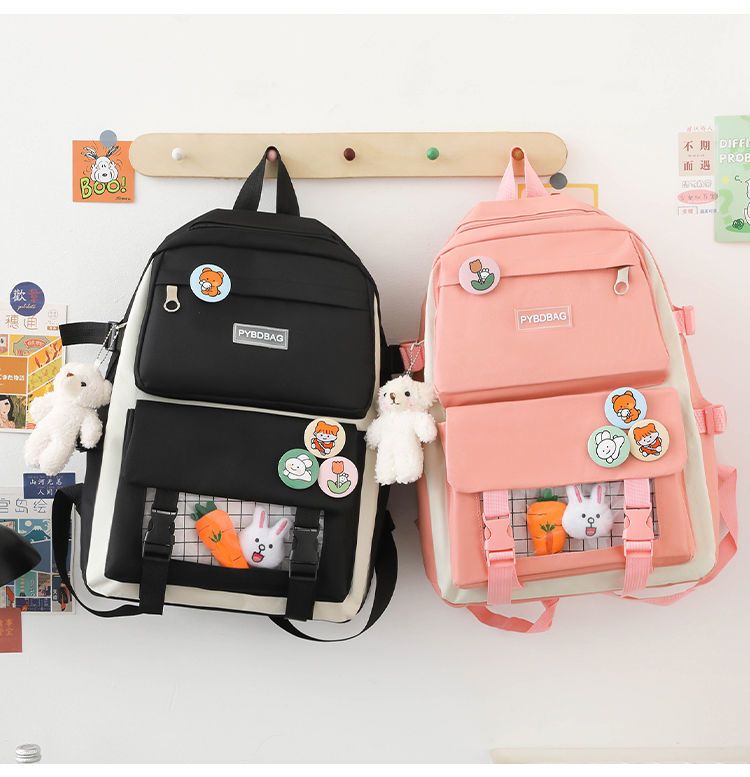 | black single schoolbag with radish rabbit badge(黑色单个书包加萝卜兔子徽章) | USD $5.34 | 999999 piece available |