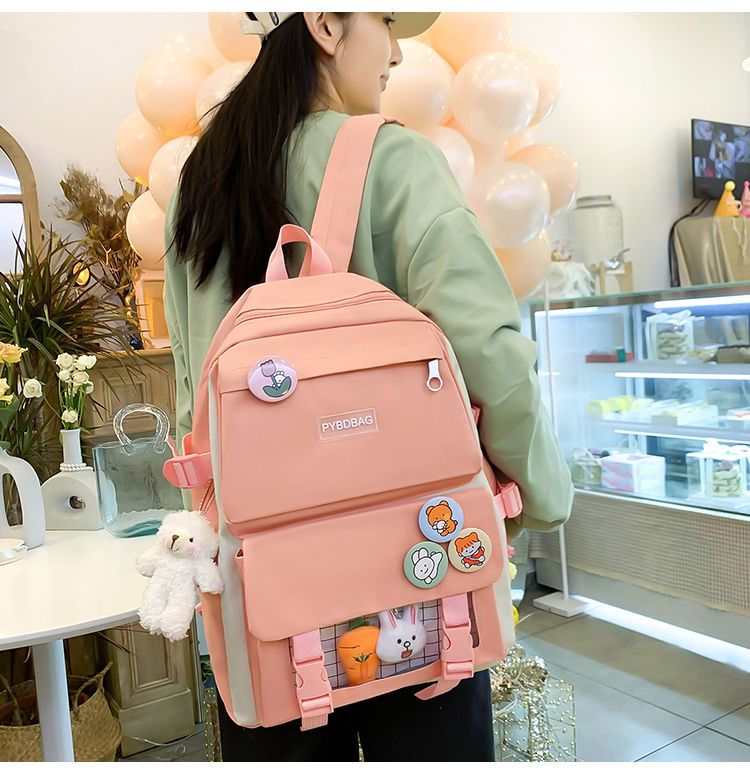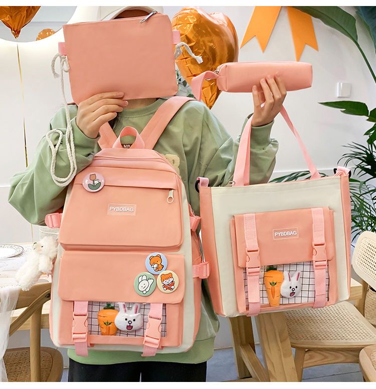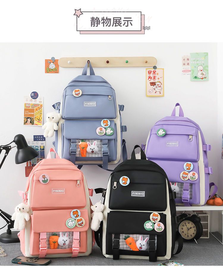 | pink single schoolbag with radish rabbit badge(粉色单个书包加萝卜兔子徽章) | USD $4.78 | 999999 piece available |