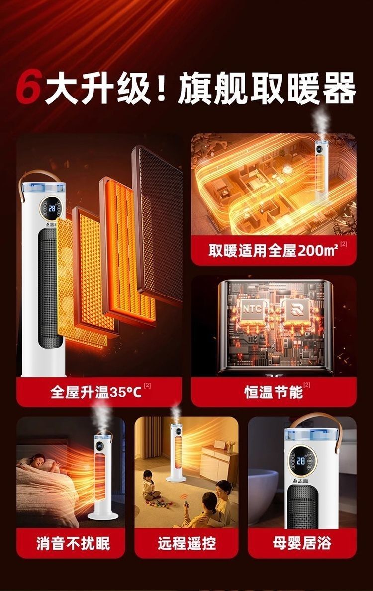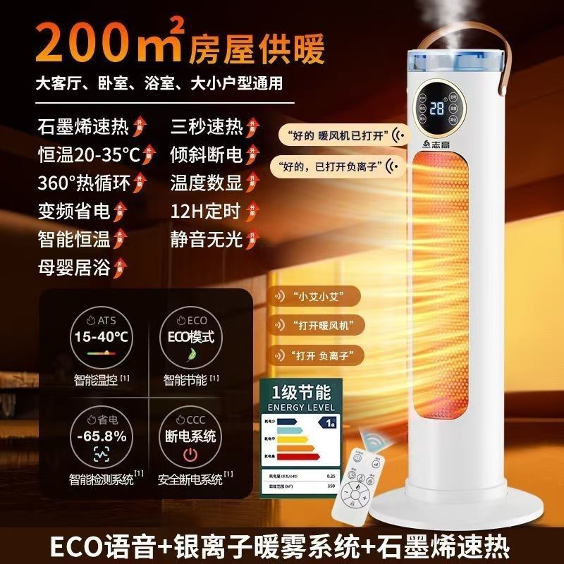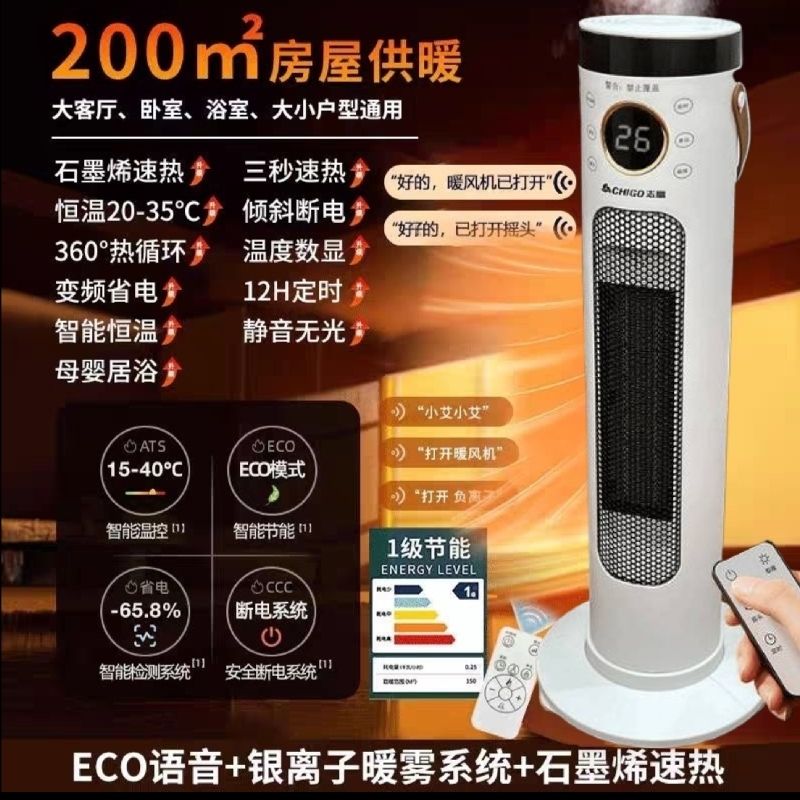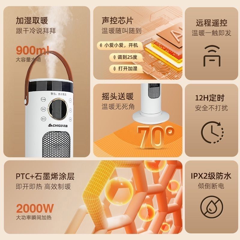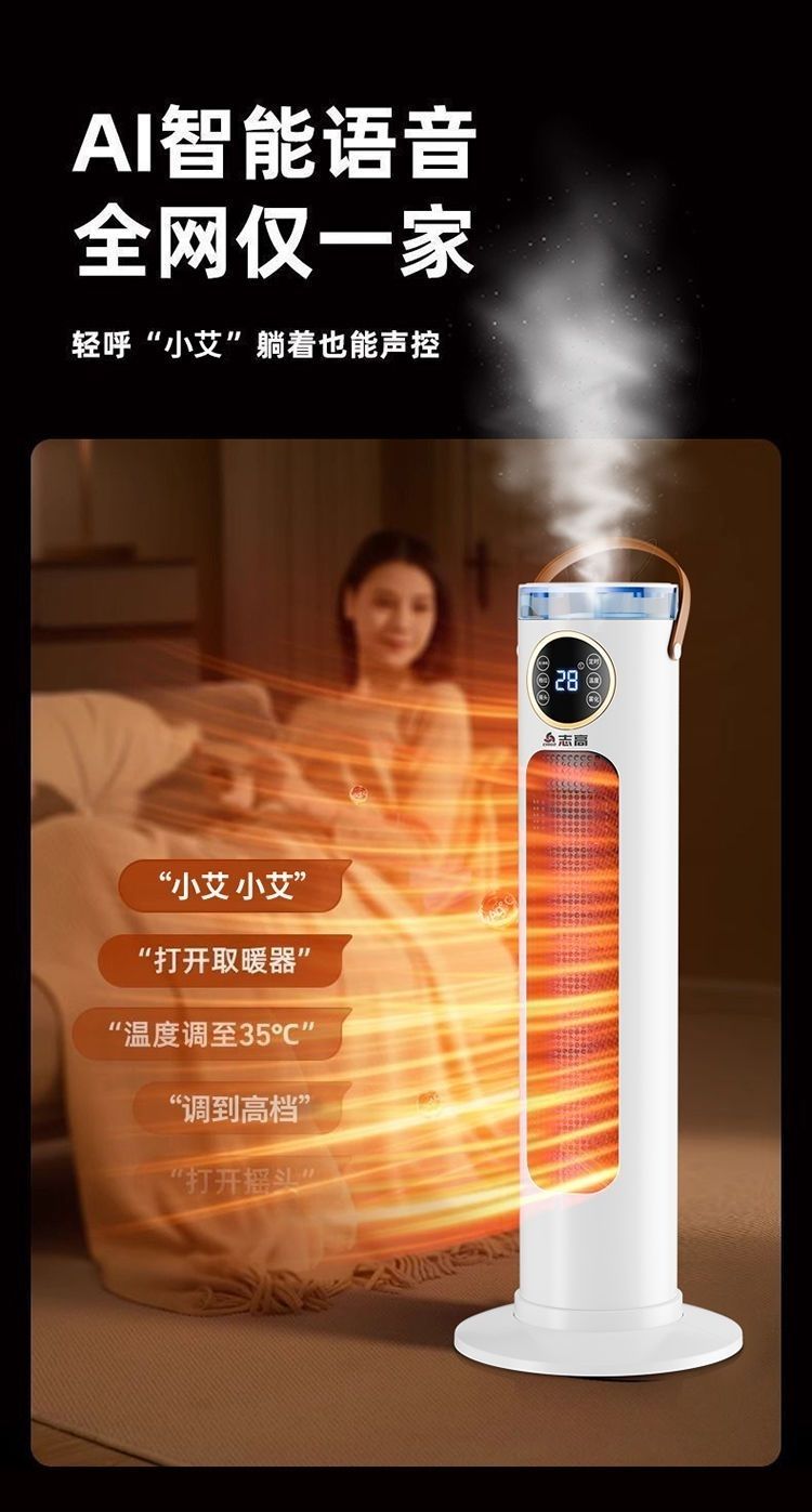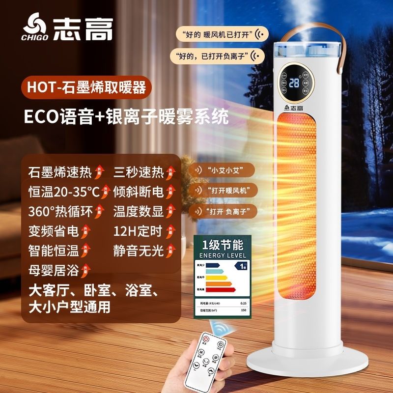 Chigo/志高智能语音加湿取暖器负离子净化石墨烯恒温立式暖风机
