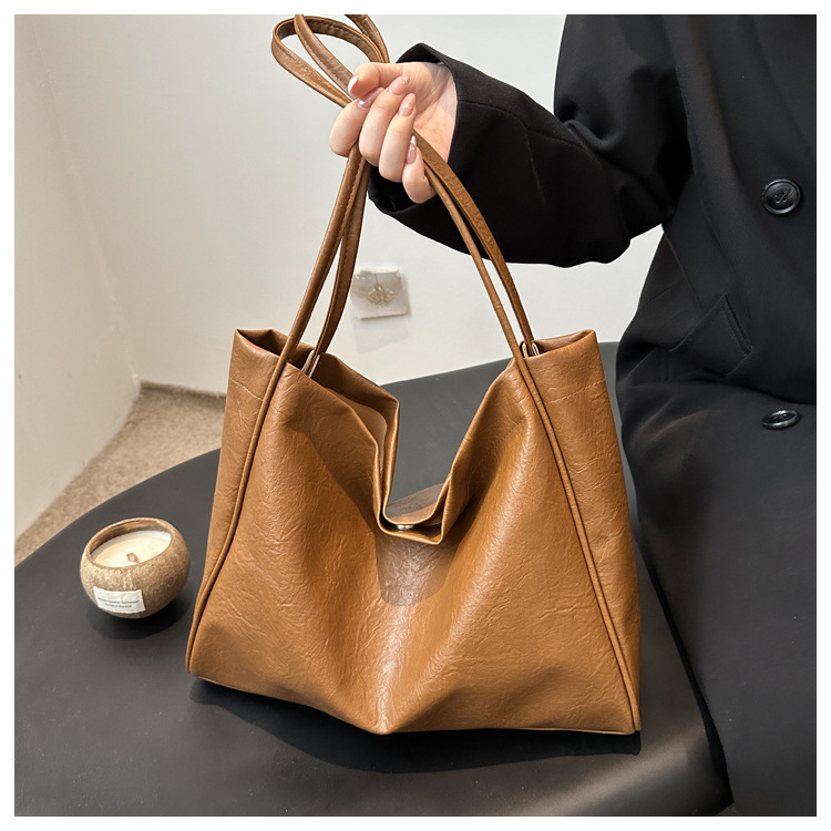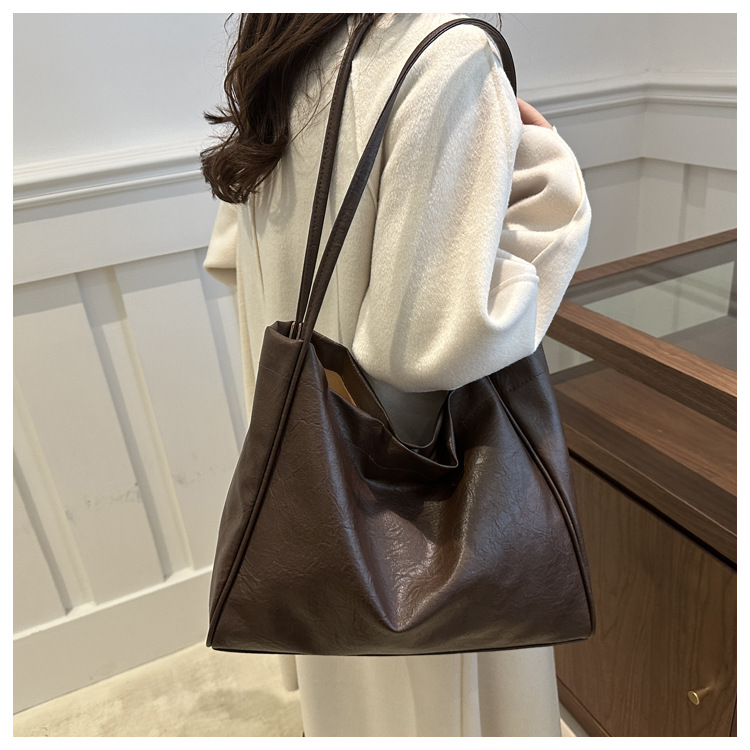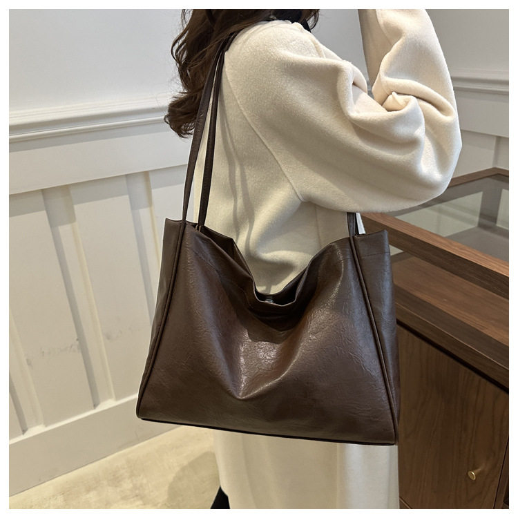 大容量包包女2024冬季新款复古休闲质感软面通勤时尚单肩托特包女