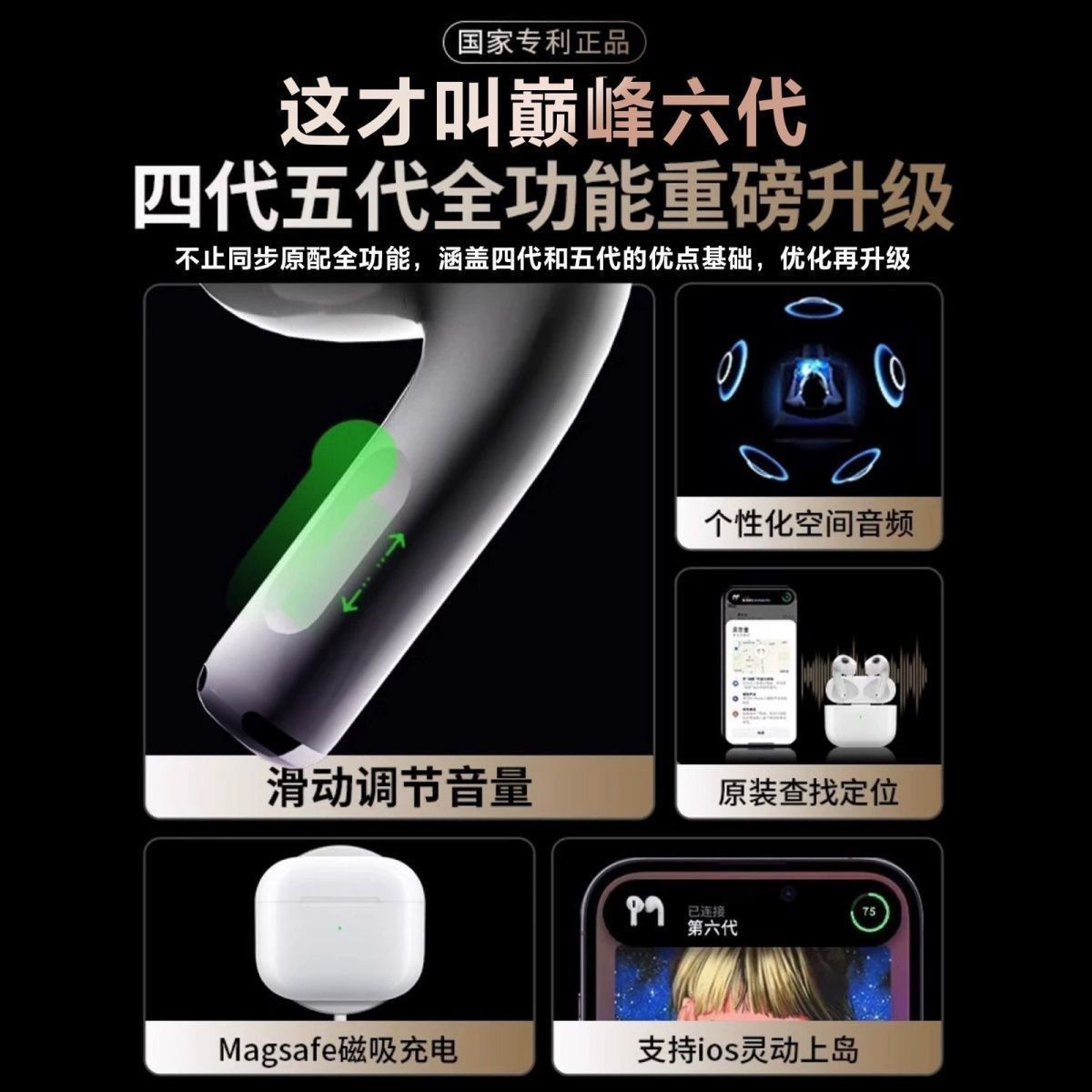 华强北新款六代真耳机蓝牙无线真6代降噪高音质适用苹果安卓通用