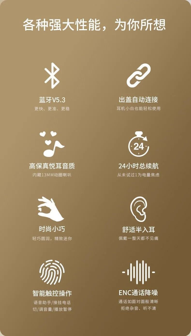 【杜比之声】2024新款半入耳式无线蓝牙耳机跑步运动降噪超长续航