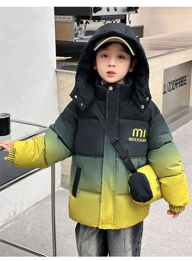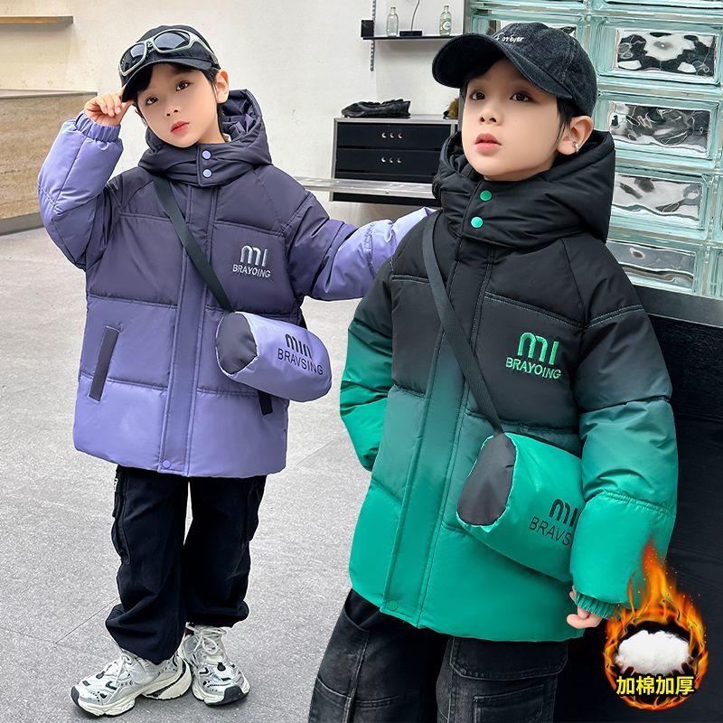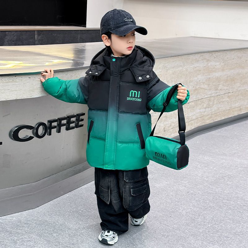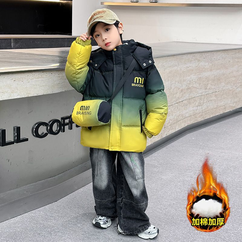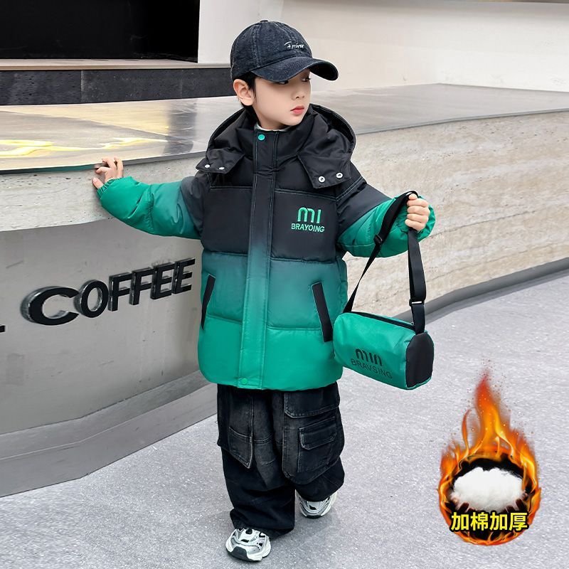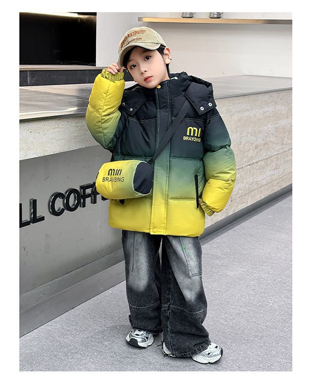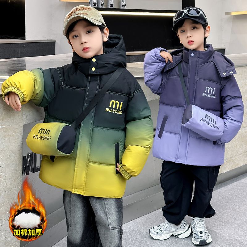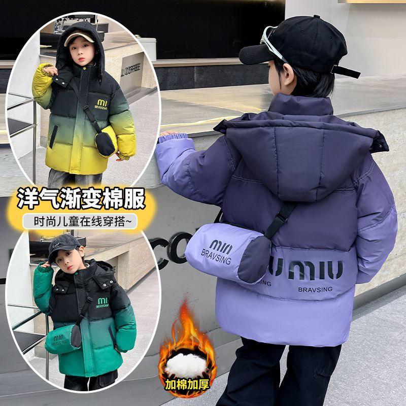男童渐变棉服兔绒送挎包2024新款冬装嘻哈潮流外套儿童中小童加厚
