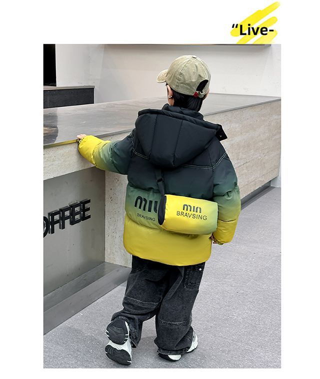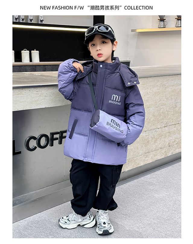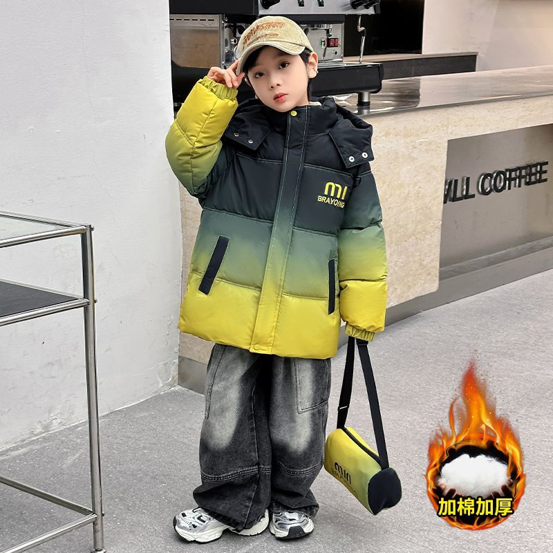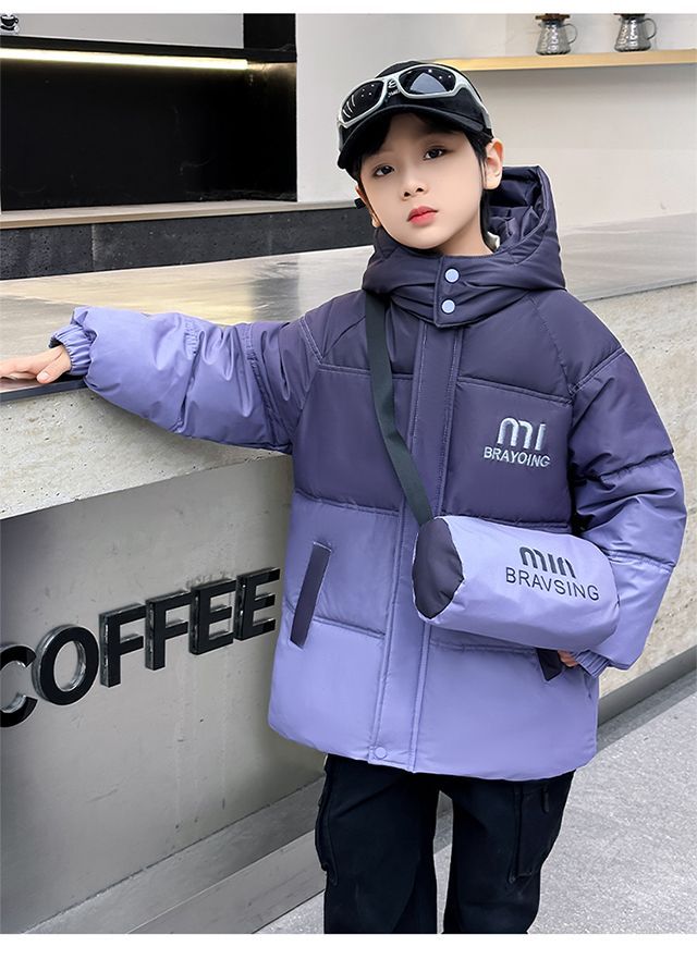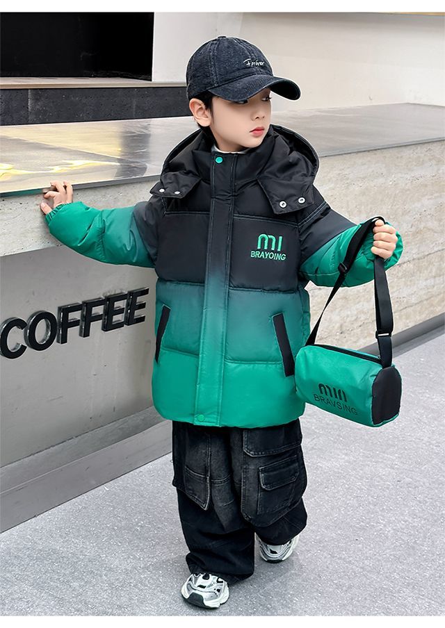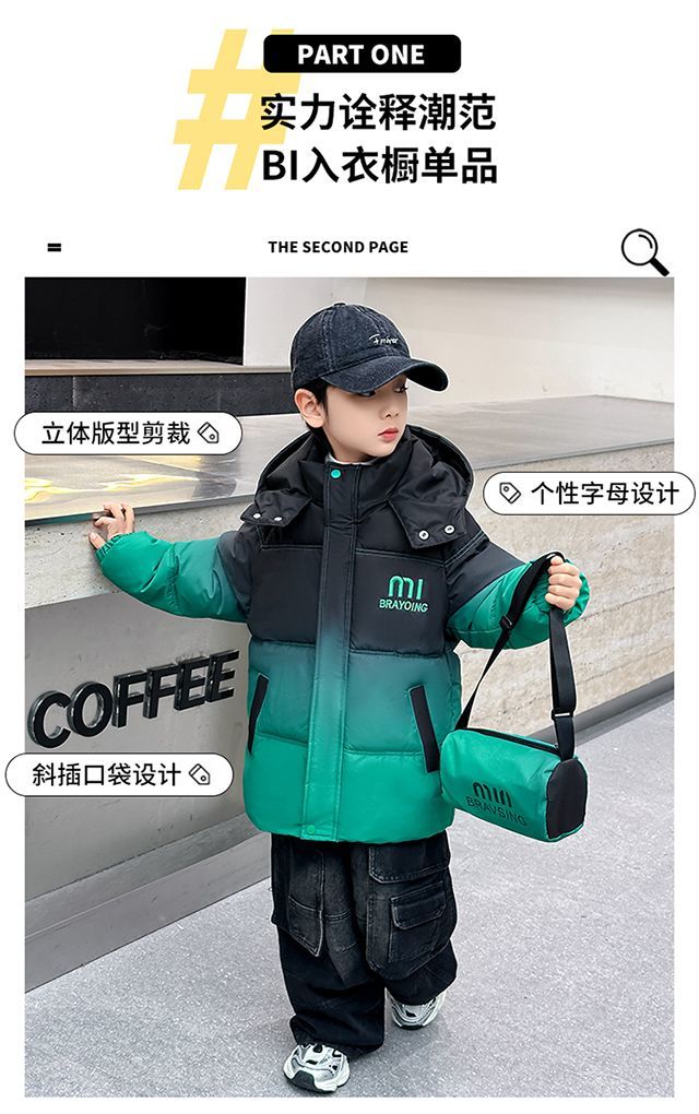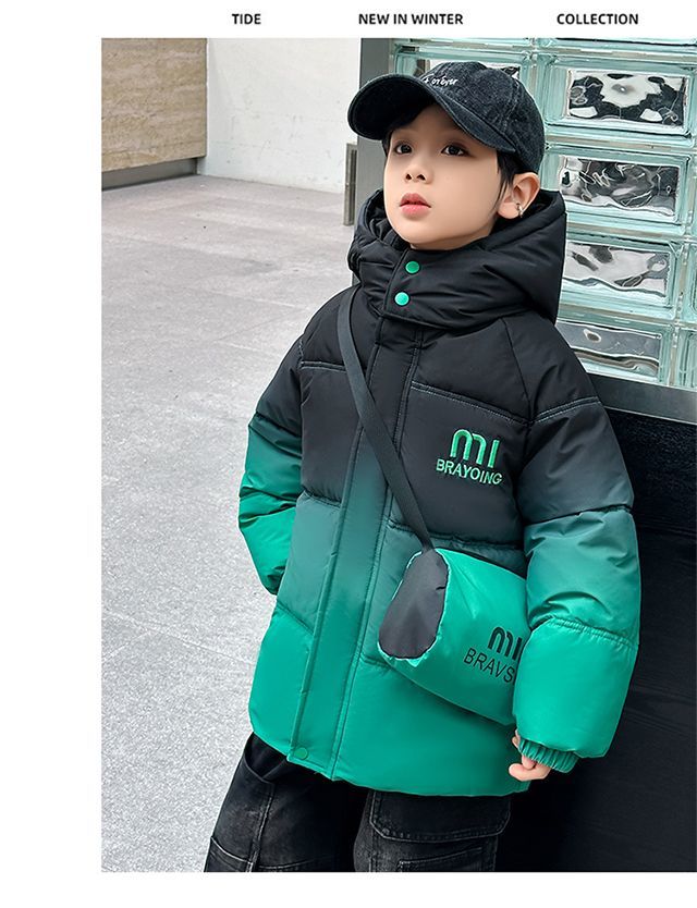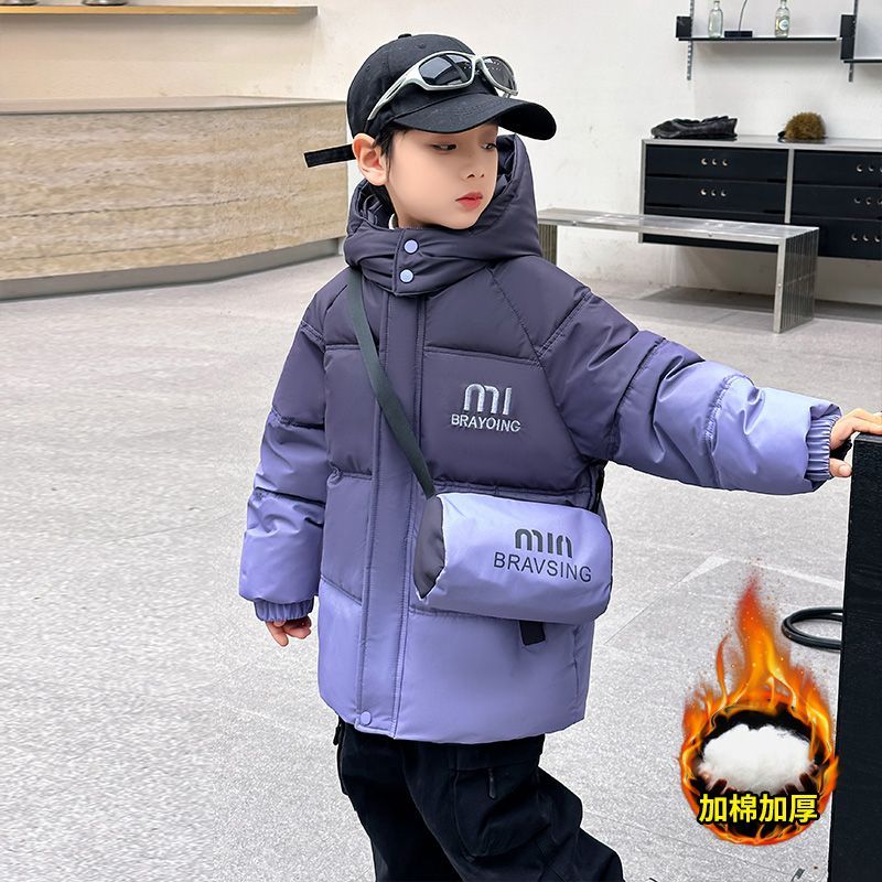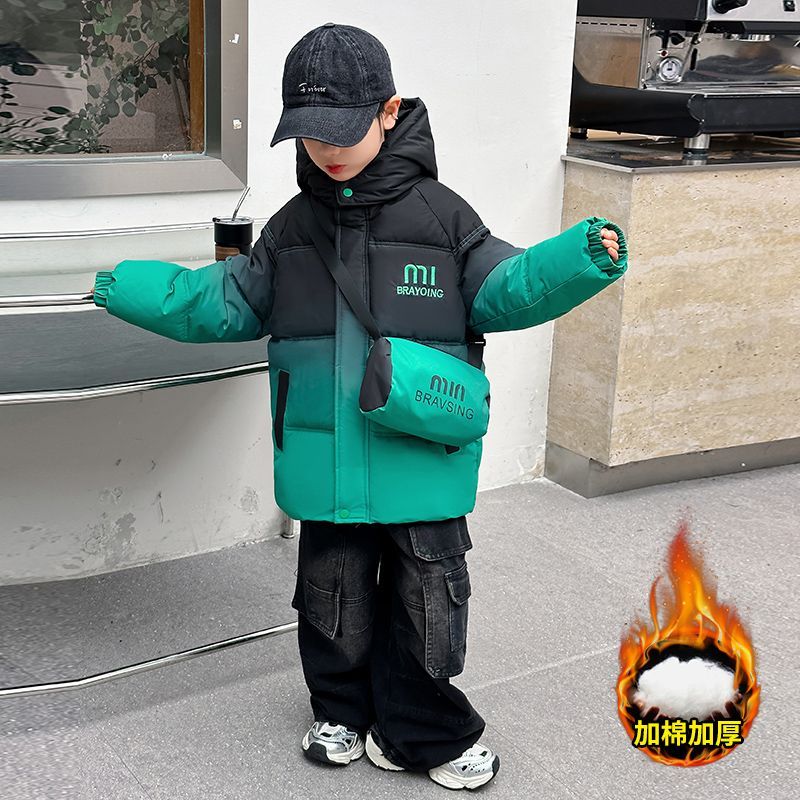 男童渐变棉服兔绒送挎包2024新款冬装嘻哈潮流外套儿童中小童加厚