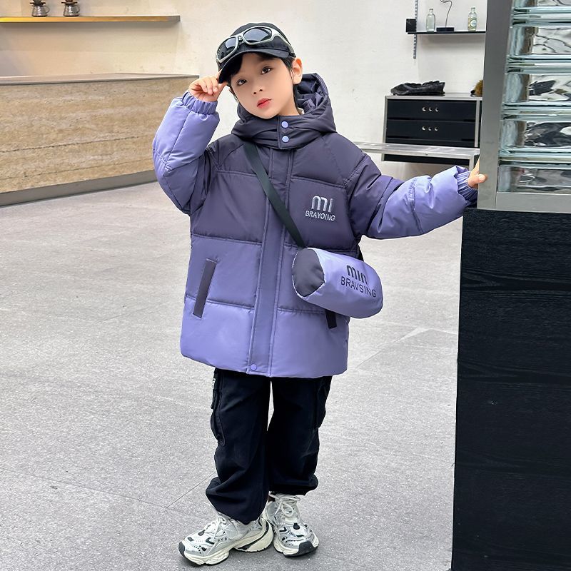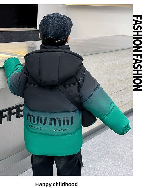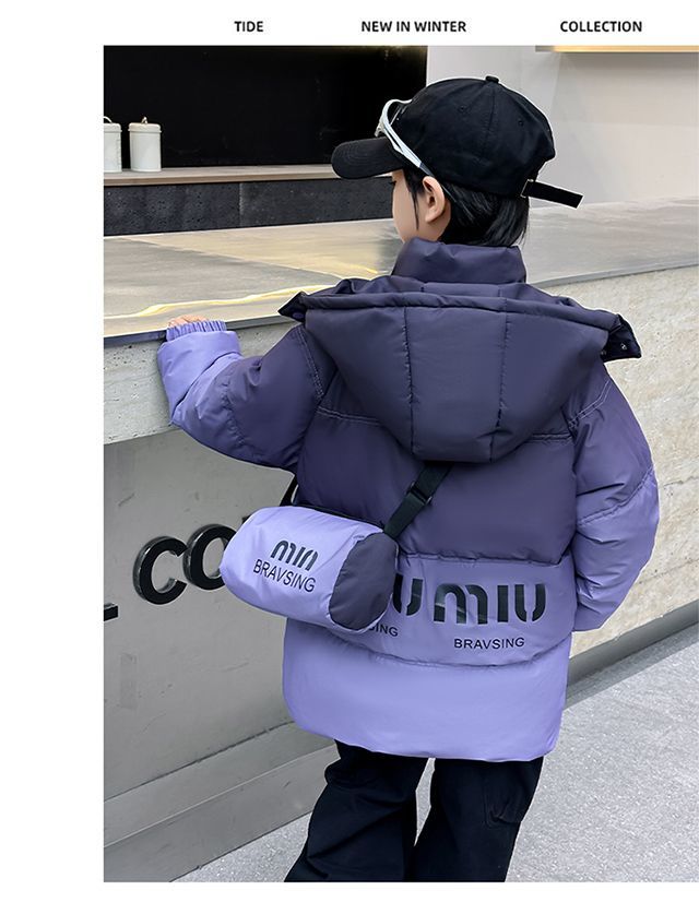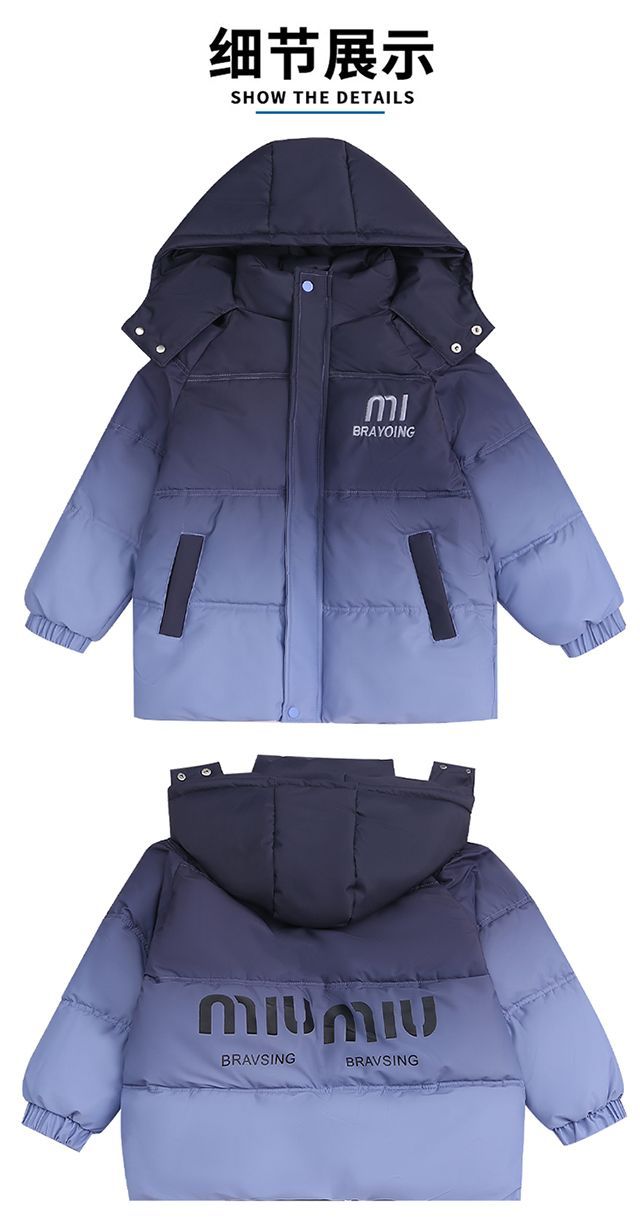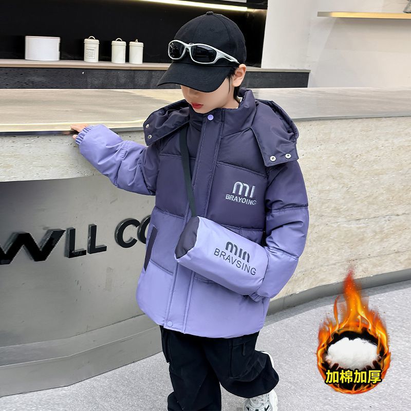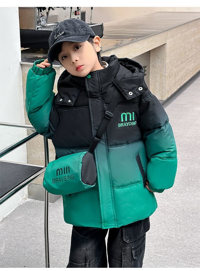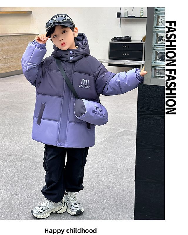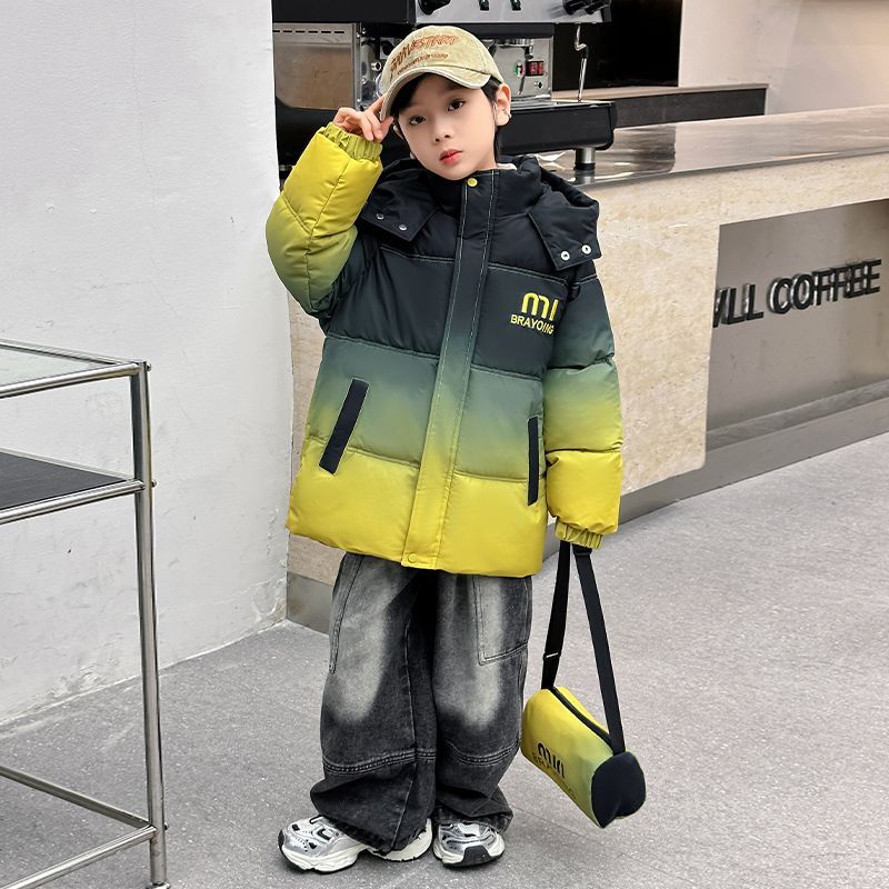 男童渐变棉服兔绒送挎包2024新款冬装嘻哈潮流外套儿童中小童加厚