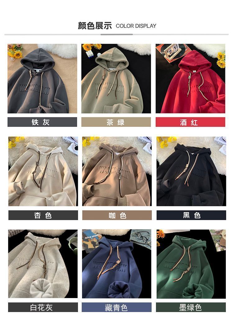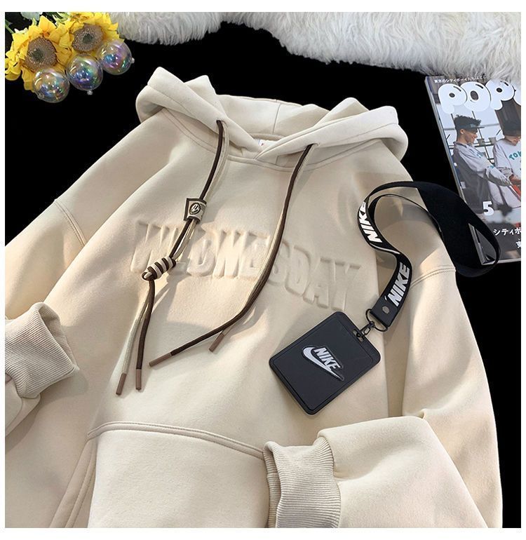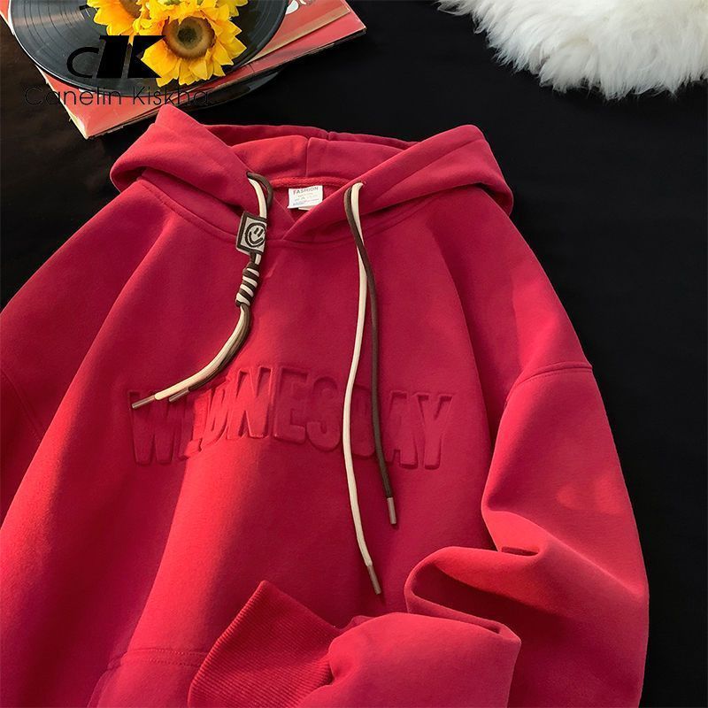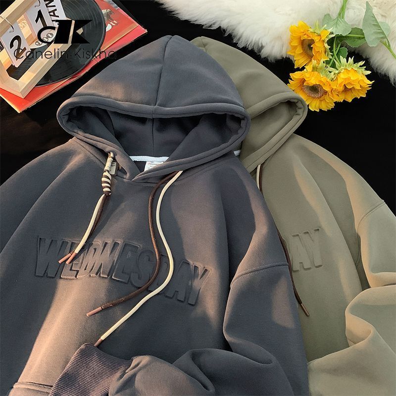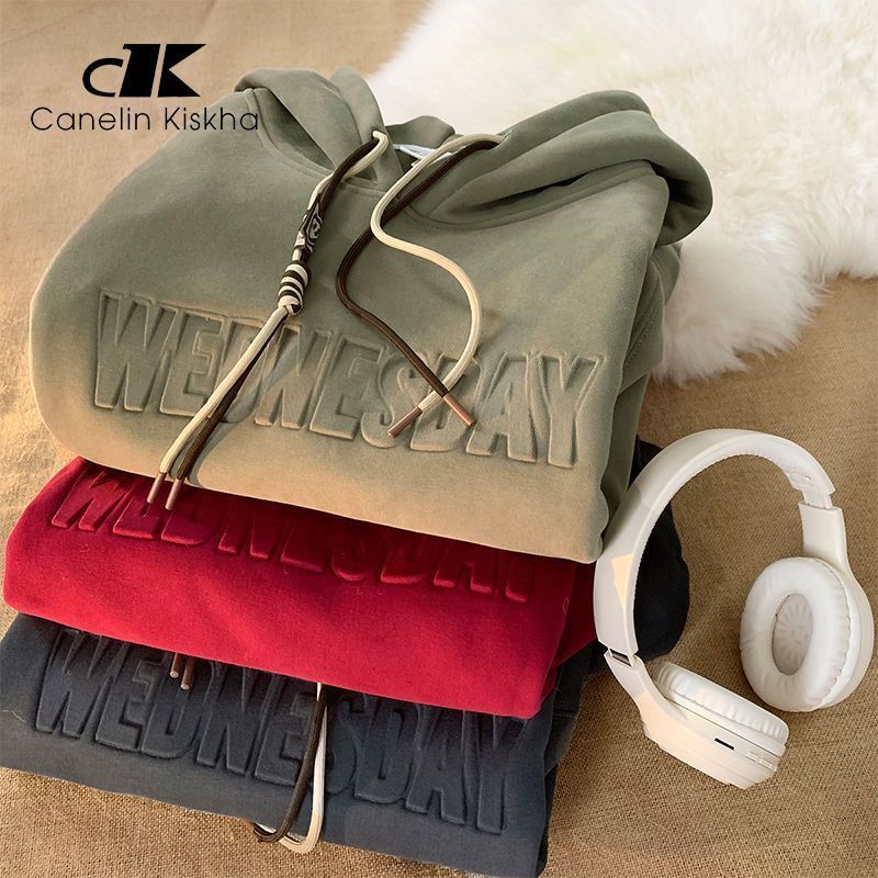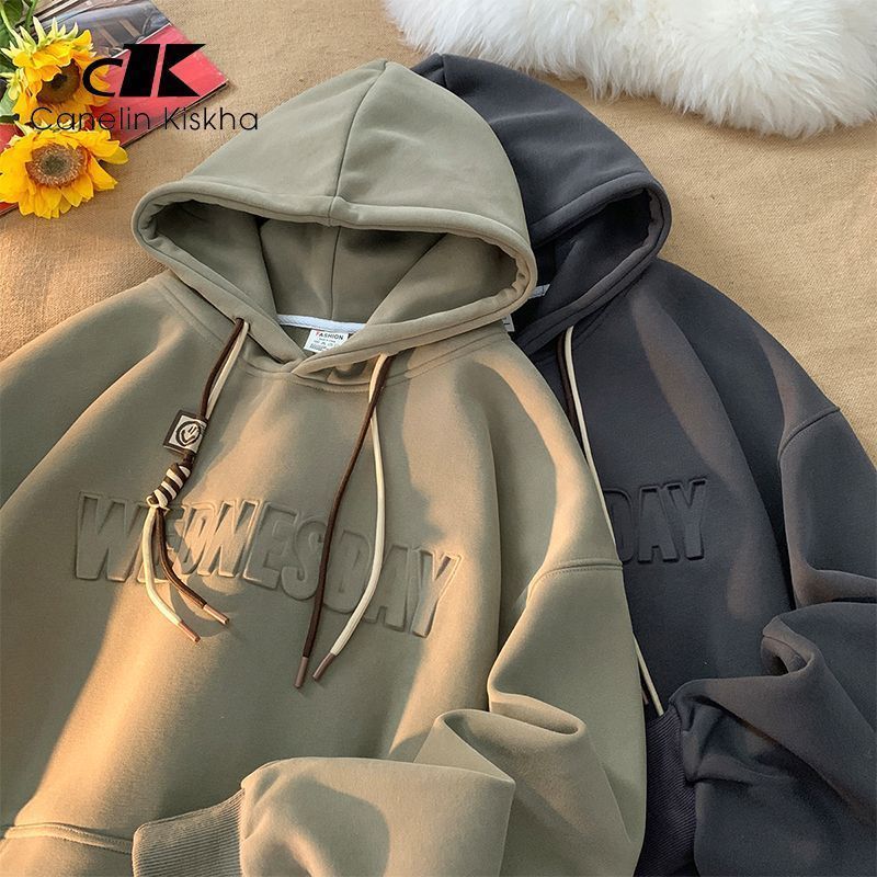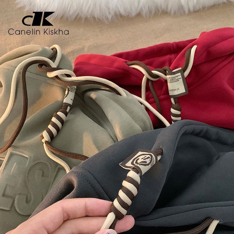CanelinKiskha美式重磅连帽卫衣男女春秋款潮牌字母钢印宽松上衣